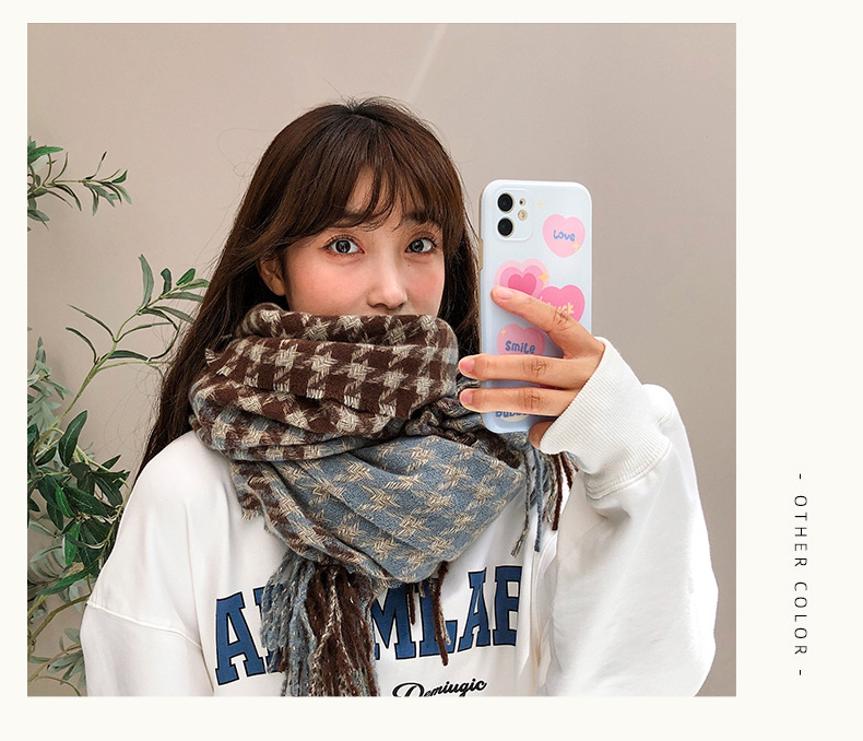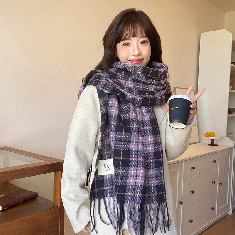 타로 퍼플 격자 무늬 스카프 캐시미어 스카프 여자 한국식 올매치 겨울 따뜻한 긴 목도리 스카프스토어 가기