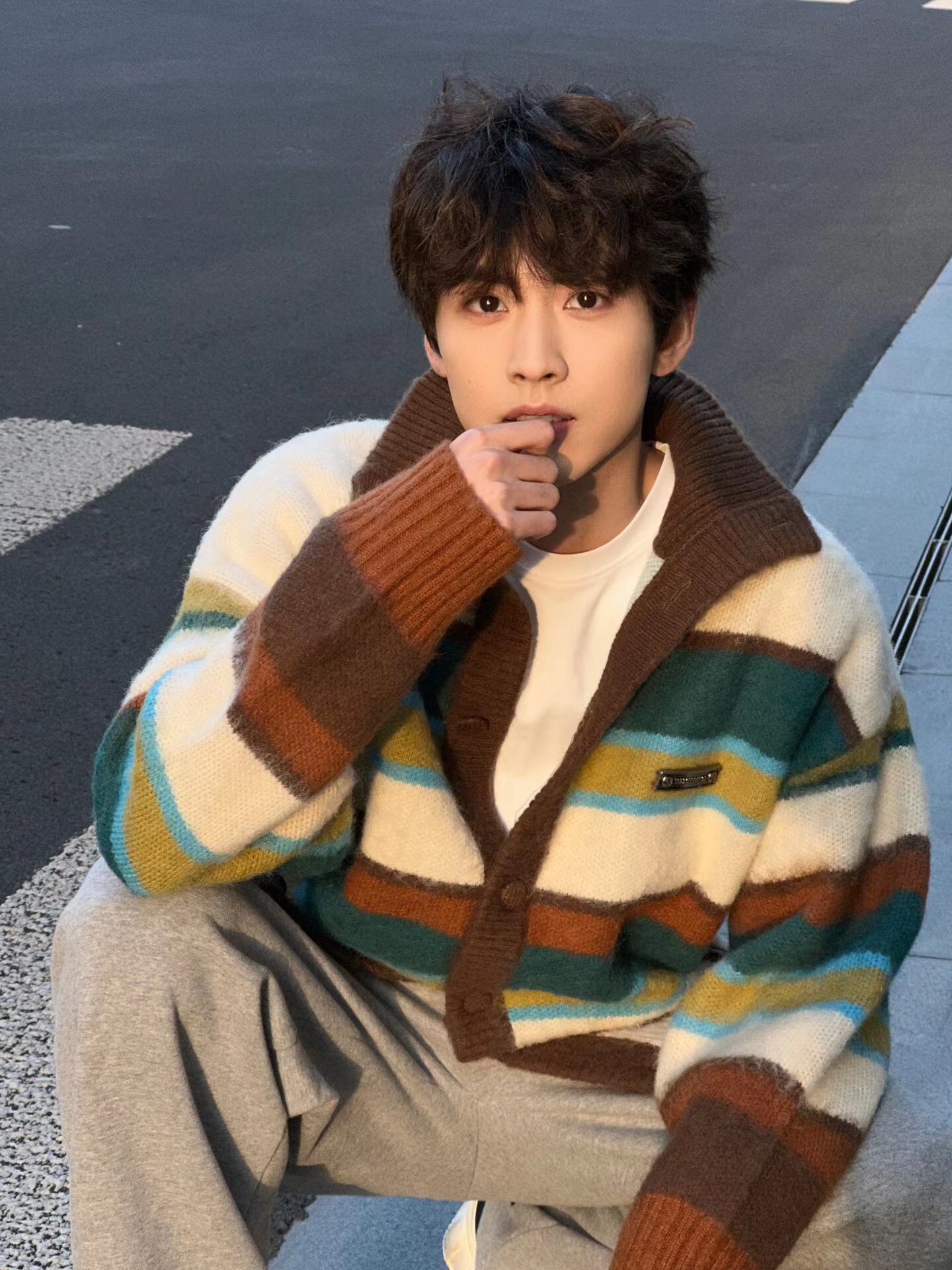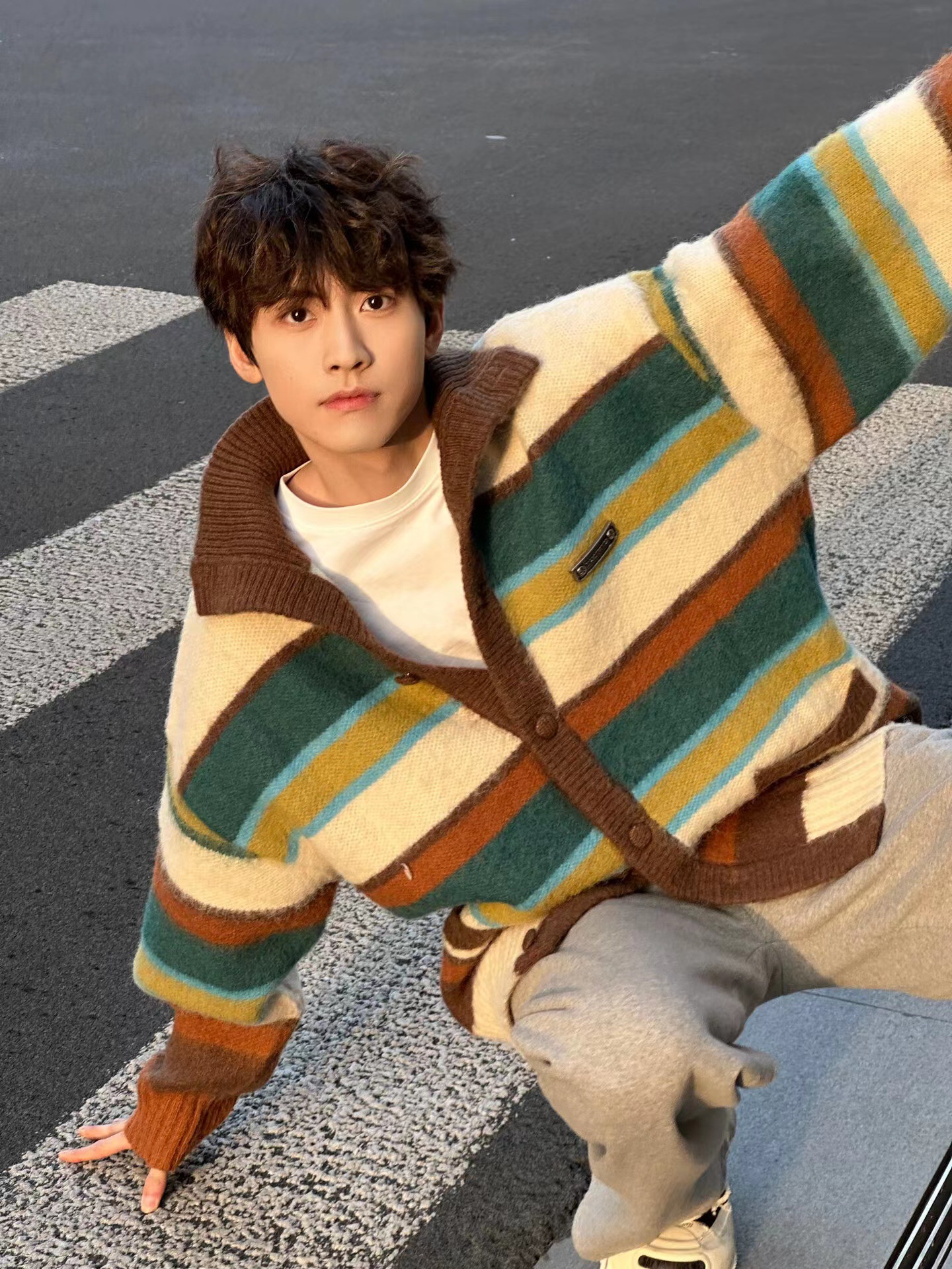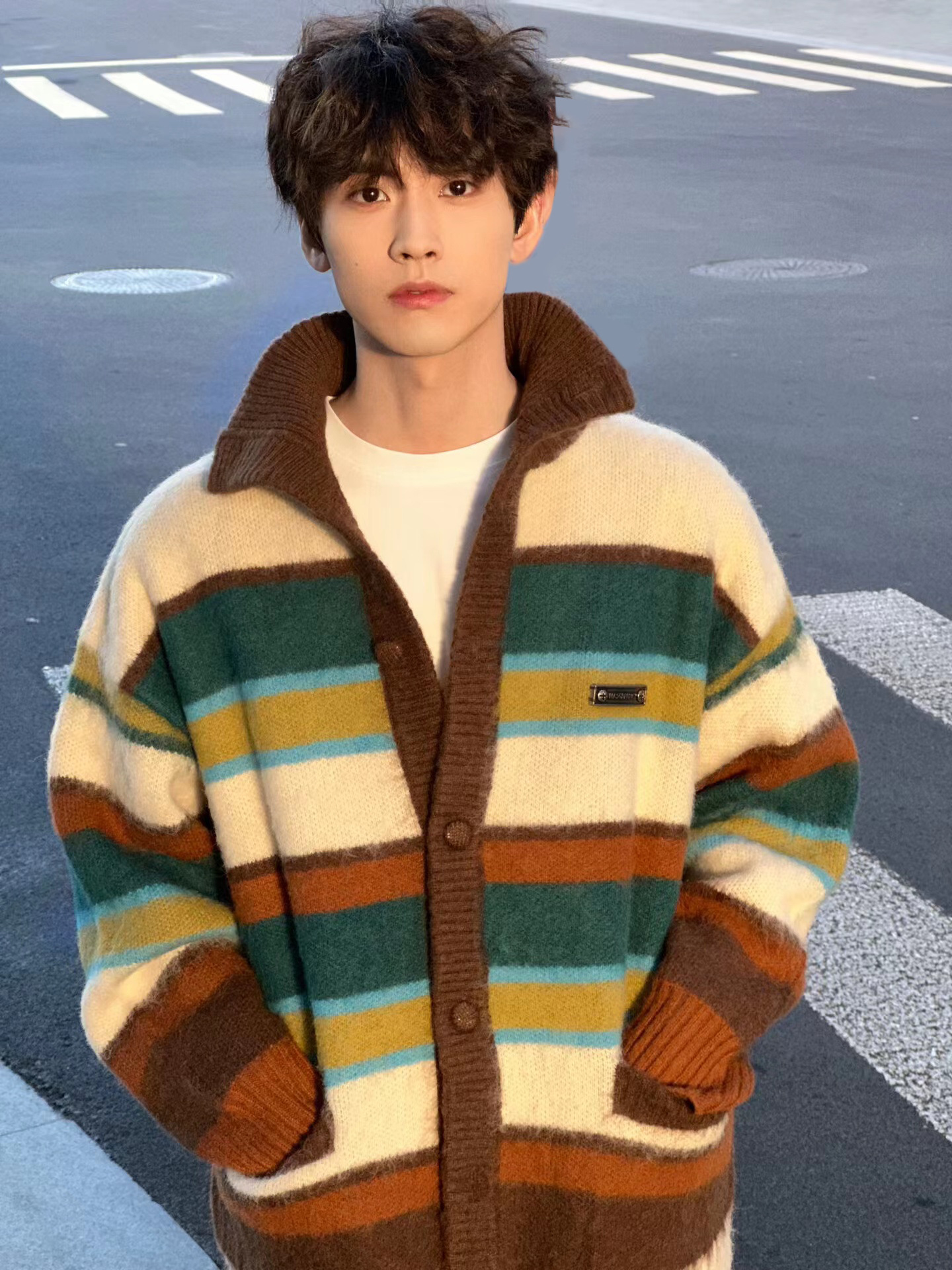Maillard Wear 남성용 가을 줄무늬 대비 컬러 스웨터 전국 패션 브랜드 느슨한 게으른 니트 카디건 재킷