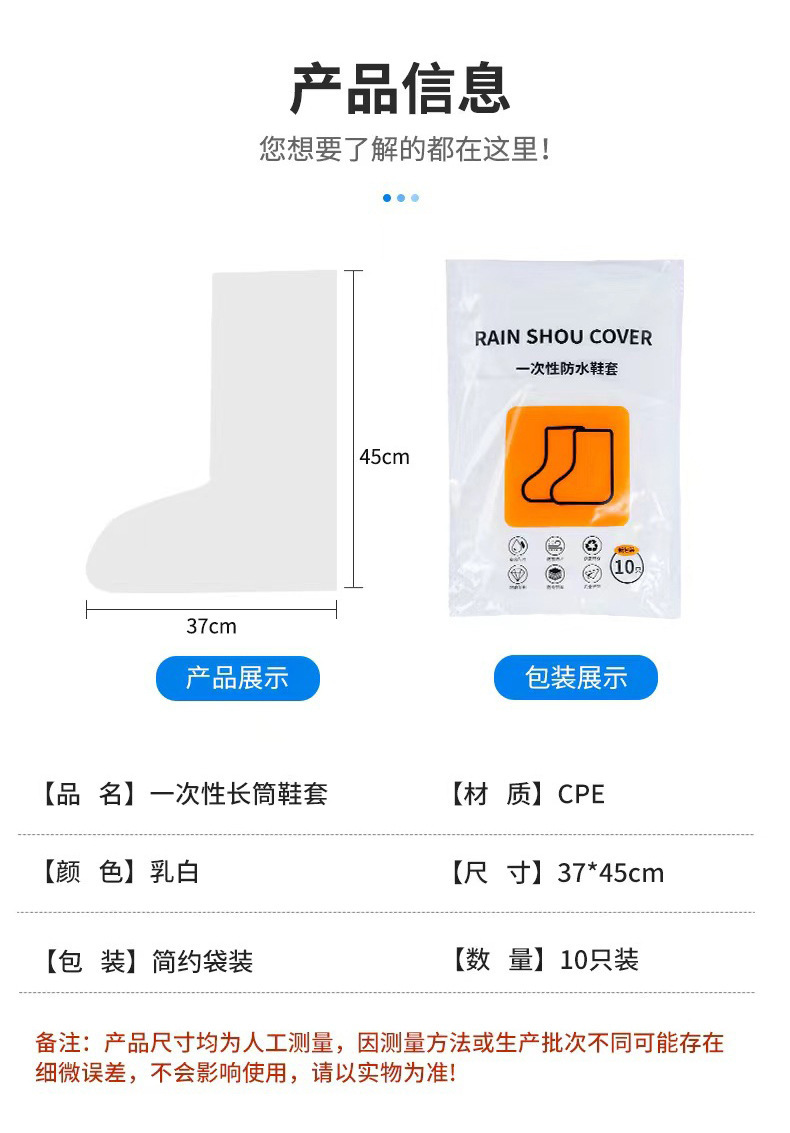 처분할 수 있는 장화 방수 방비 높은 튜브 신발 커버 비오는 날 어린이 성인 두꺼운 내마모성 PE 신발 커버 미끄럼 방지 부트 커버