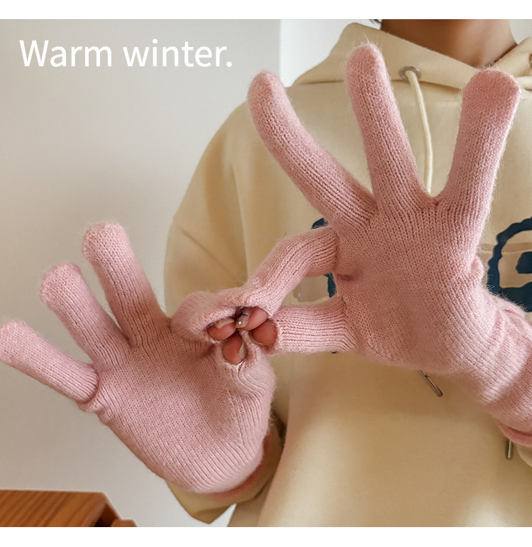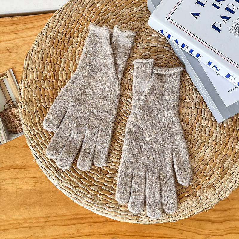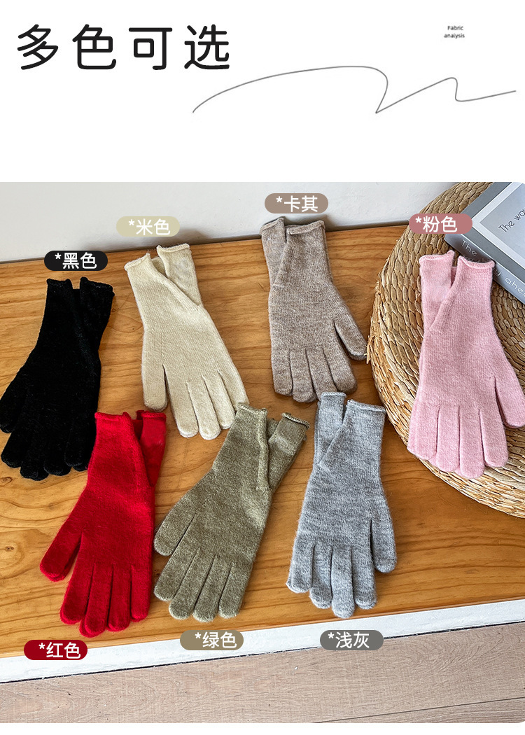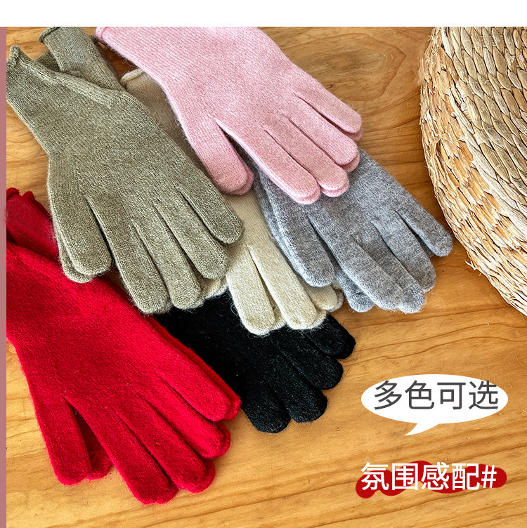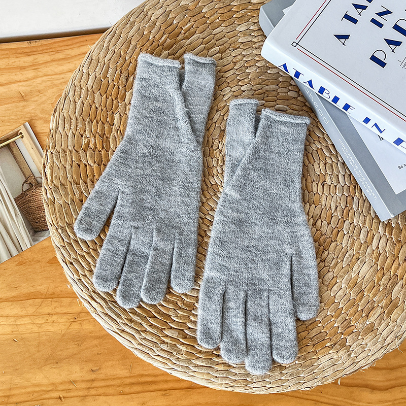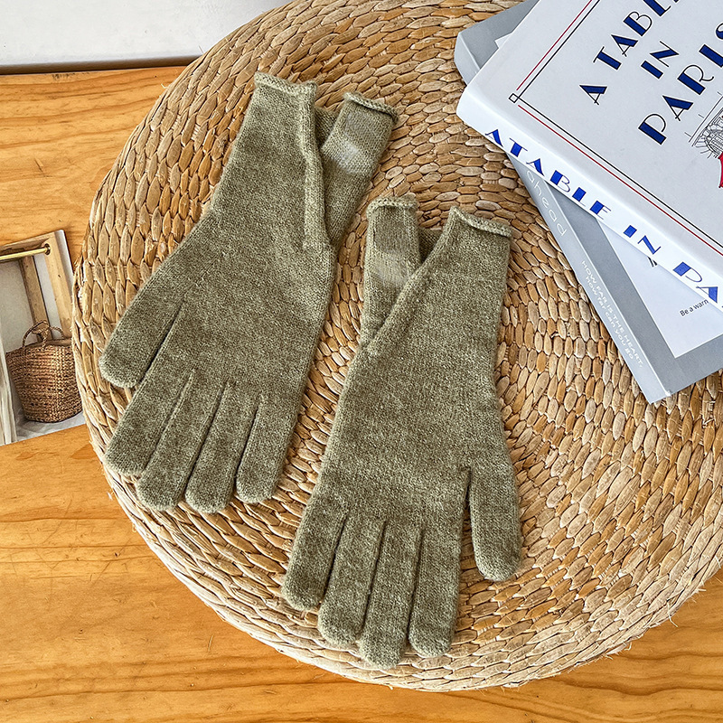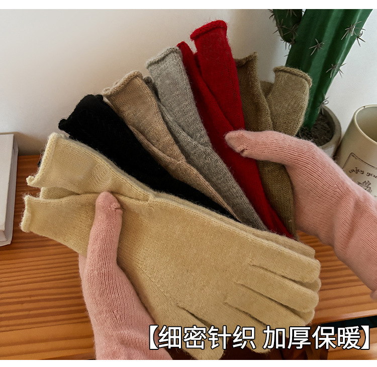 새로운 겨울 분할 다섯 손가락 장갑 한국 단색 터치 스크린 야외 승마 장갑 니트 따뜻한 장갑 여성용