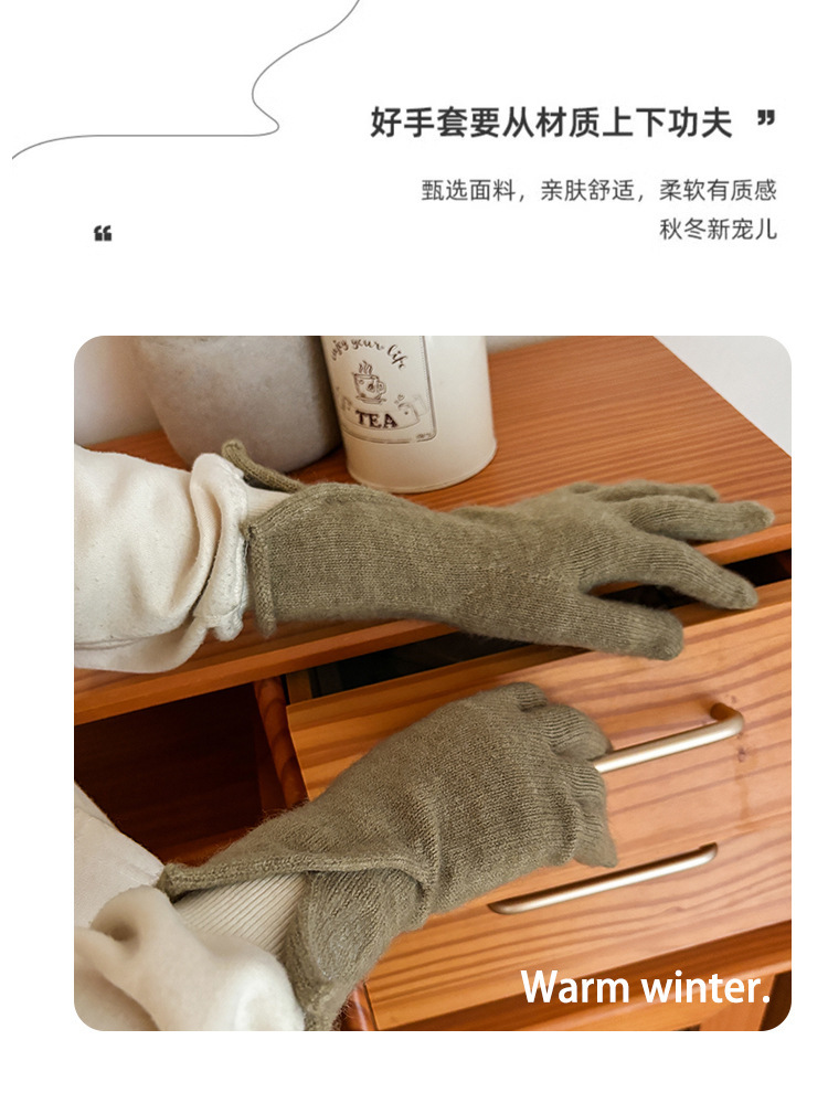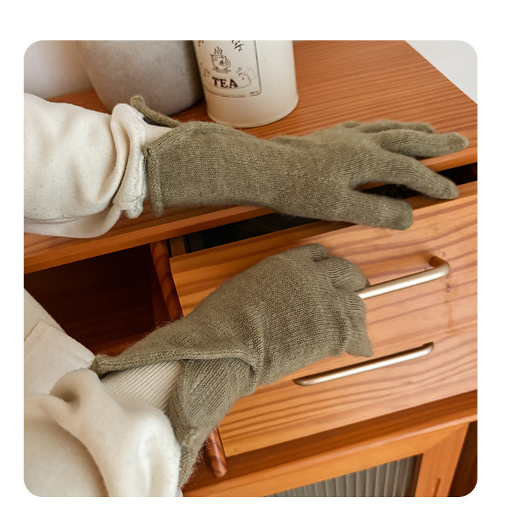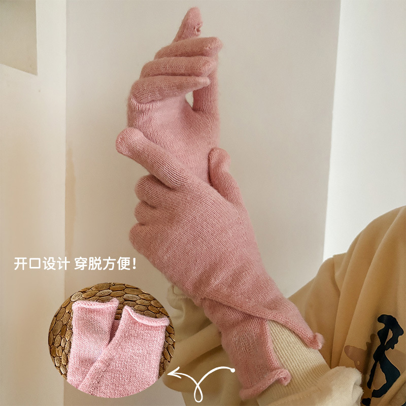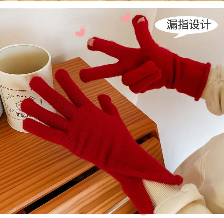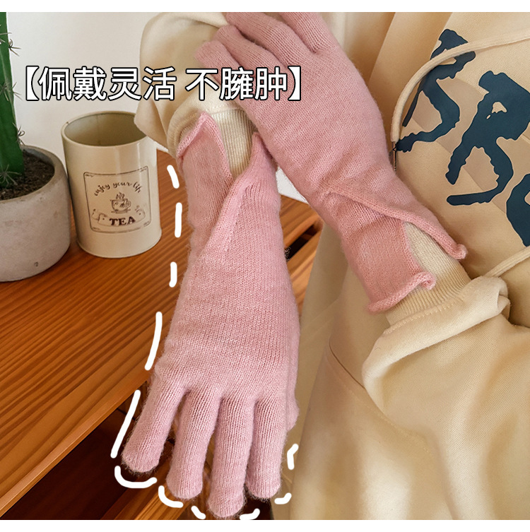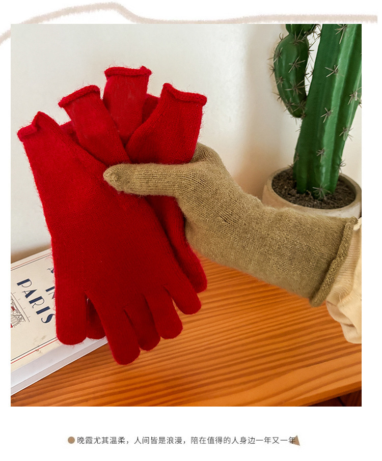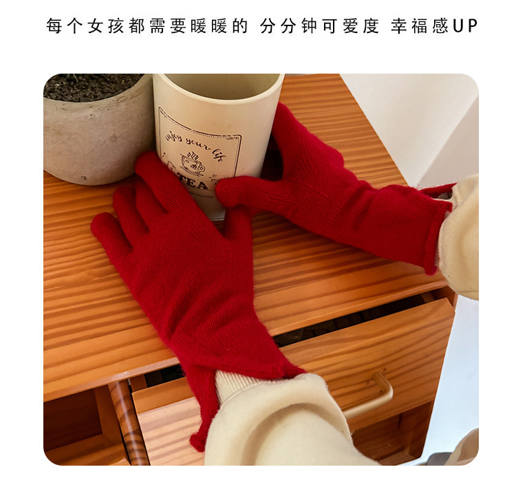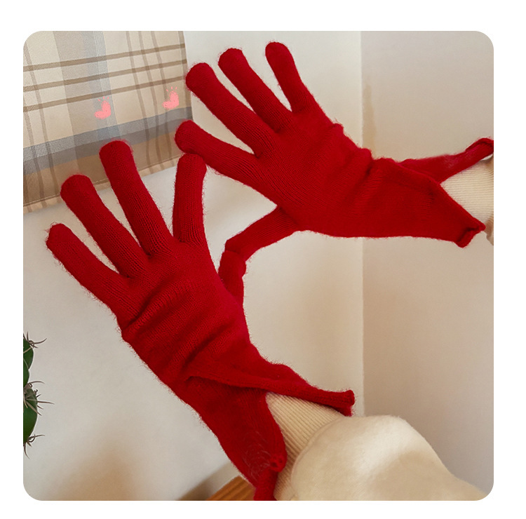 새로운 겨울 분할 다섯 손가락 장갑 한국 단색 터치 스크린 야외 승마 장갑 니트 따뜻한 장갑 여성용
