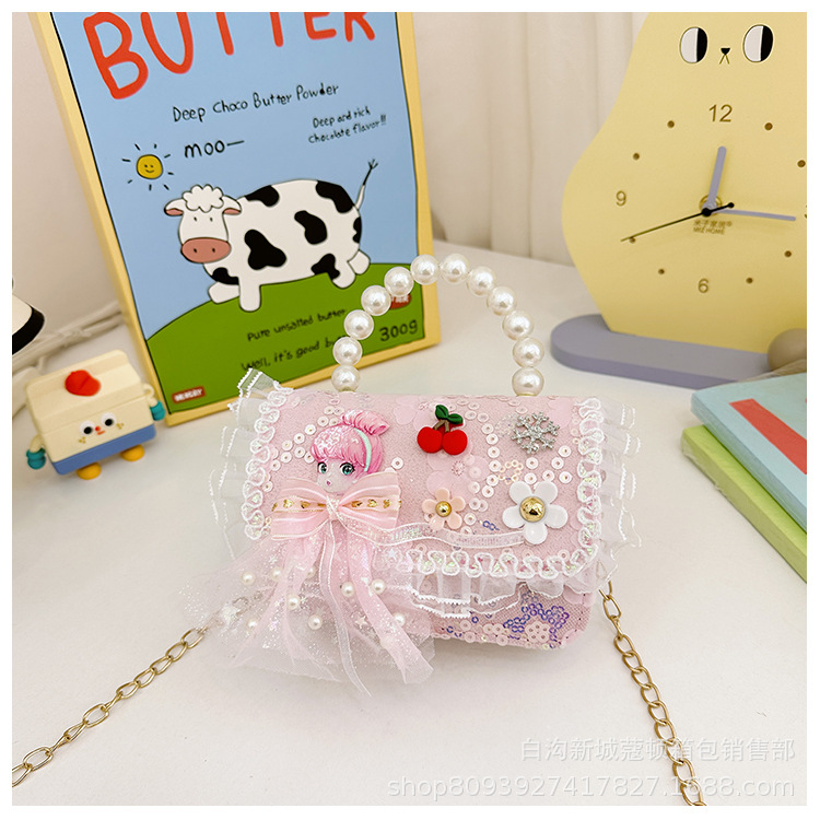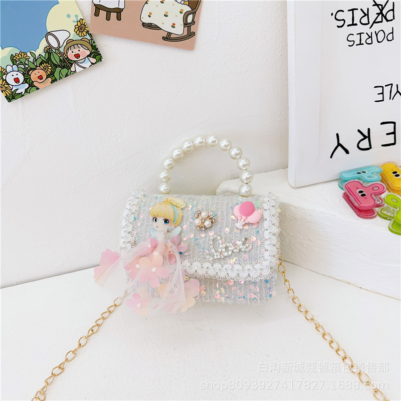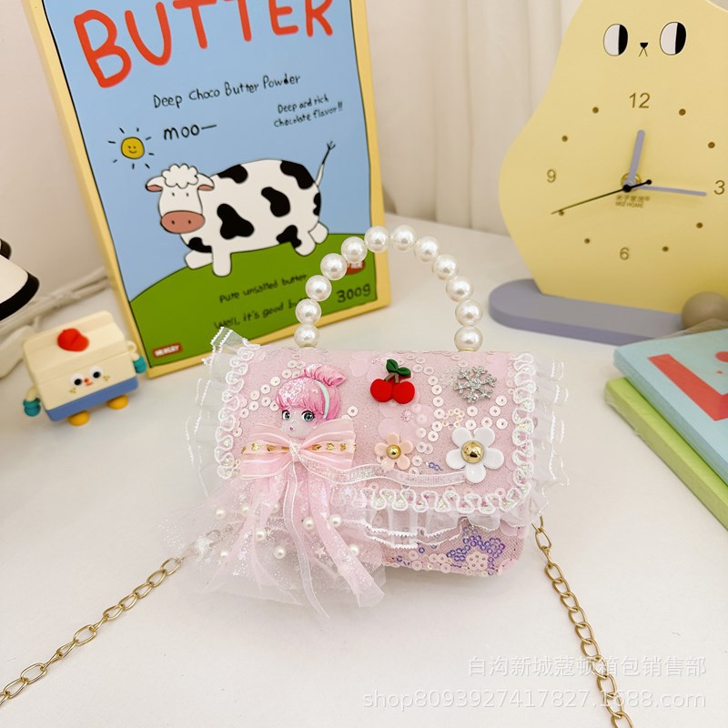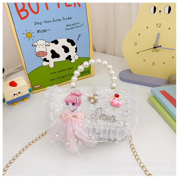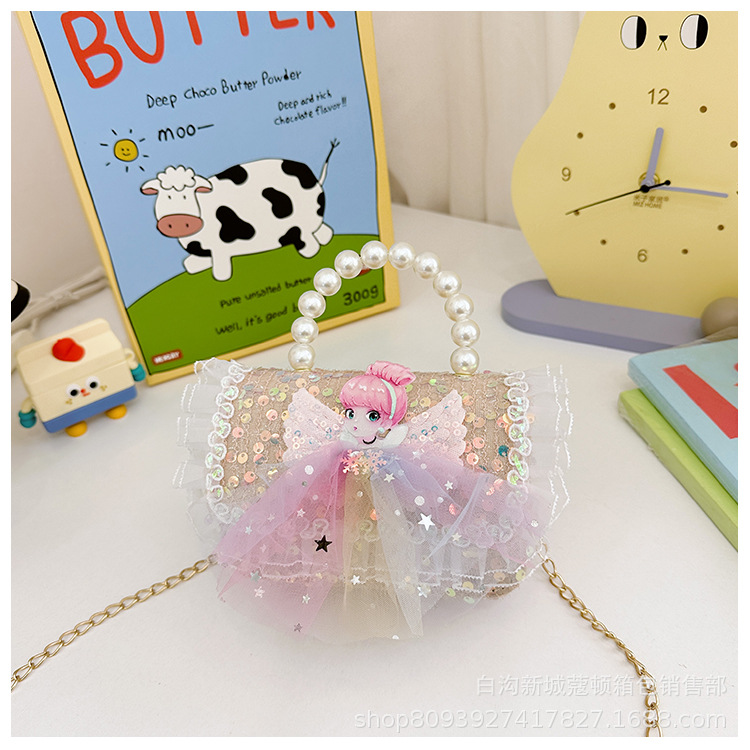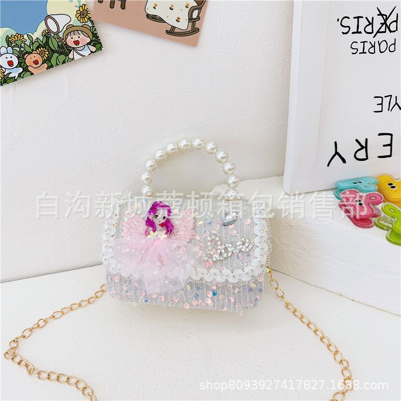 2024 새로운 공주 가방 소녀의 대각선 어깨 가방 미니 동전 지갑 작은 가방 선물 장난감 스팽글 공주 가방