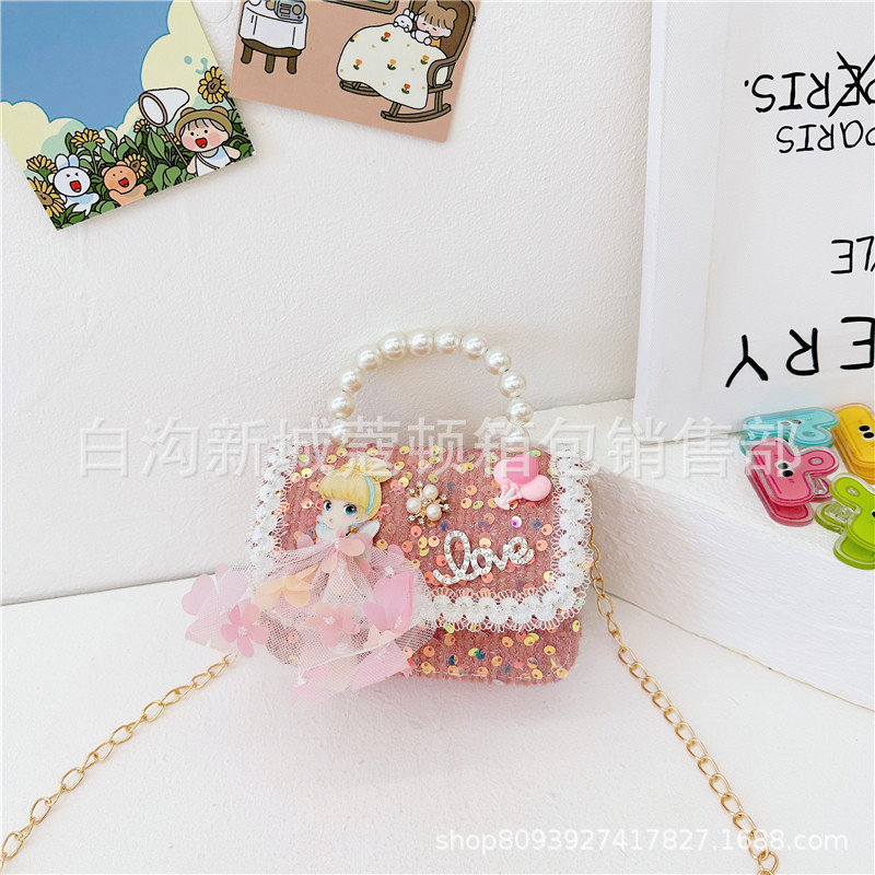 2024 새로운 공주 가방 소녀의 대각선 어깨 가방 미니 동전 지갑 작은 가방 선물 장난감 스팽글 공주 가방스토어 가기