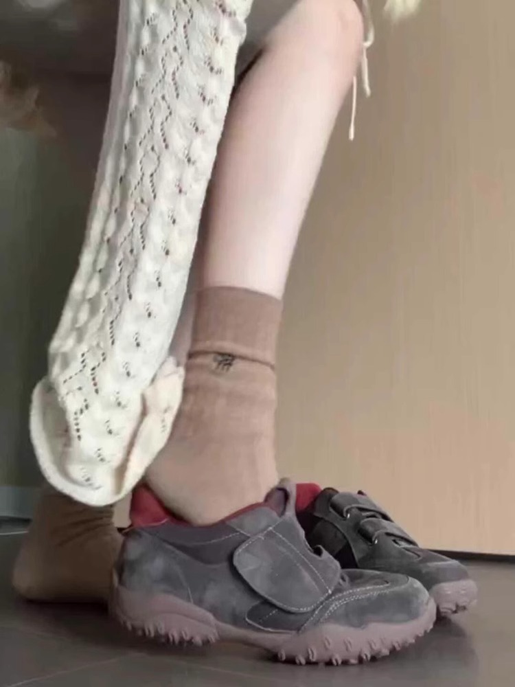 [이상한 아름다움] 두꺼운 밑창 가죽 여성 2024 가을과 겨울 새로운 포레스트 검프 스포츠 캐주얼 도덕 훈련 신발스토어 가기