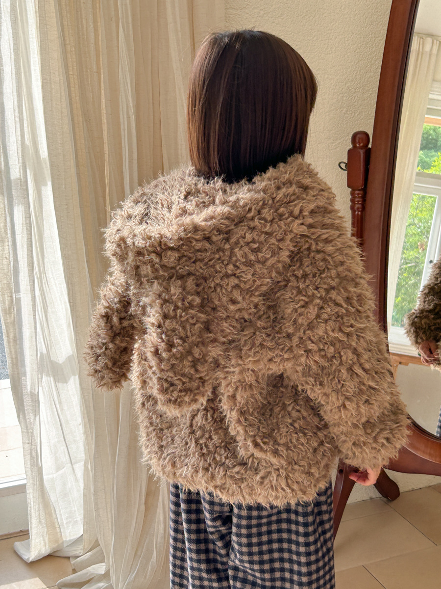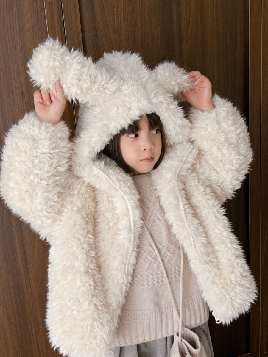 어린이 토끼 귀 귀여운 양고기 모피 코트 소녀 겨울 2024 새로운 느슨한 부드러운 왁스 모피 면화 패딩 재킷