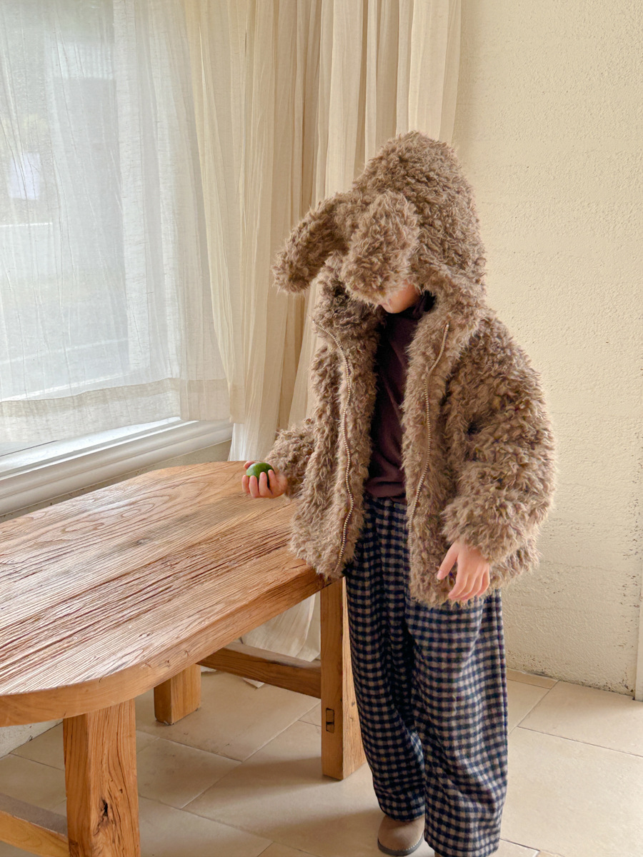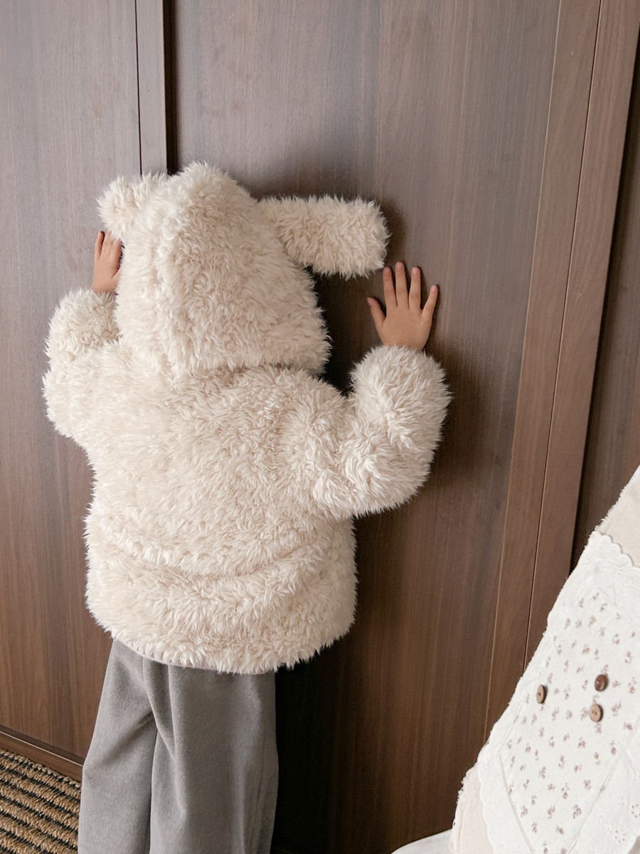 어린이 토끼 귀 귀여운 양고기 모피 코트 소녀 겨울 2024 새로운 느슨한 부드러운 왁스 모피 면화 패딩 재킷스토어 가기