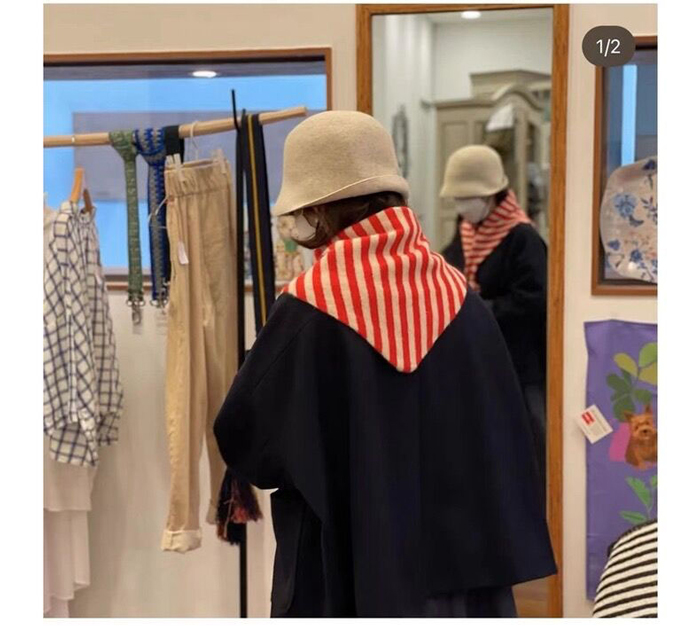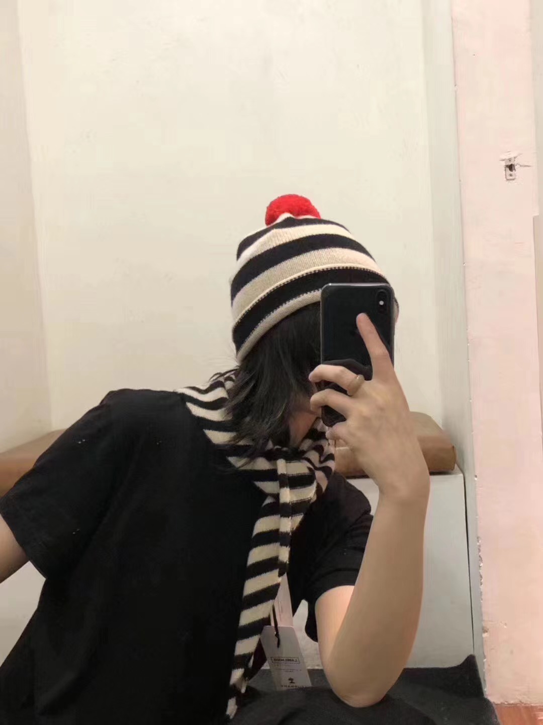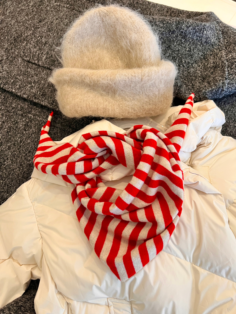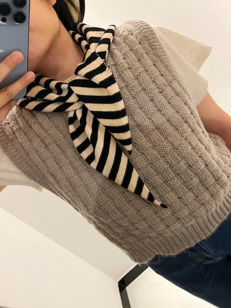 북유럽 스타일 스카프 작은 목도리 블랙 살구색 스트라이프 니트 올 매치 트라이앵글 일본 스타일 한국 스타일 틈새 디자인 스카프스토어 가기
