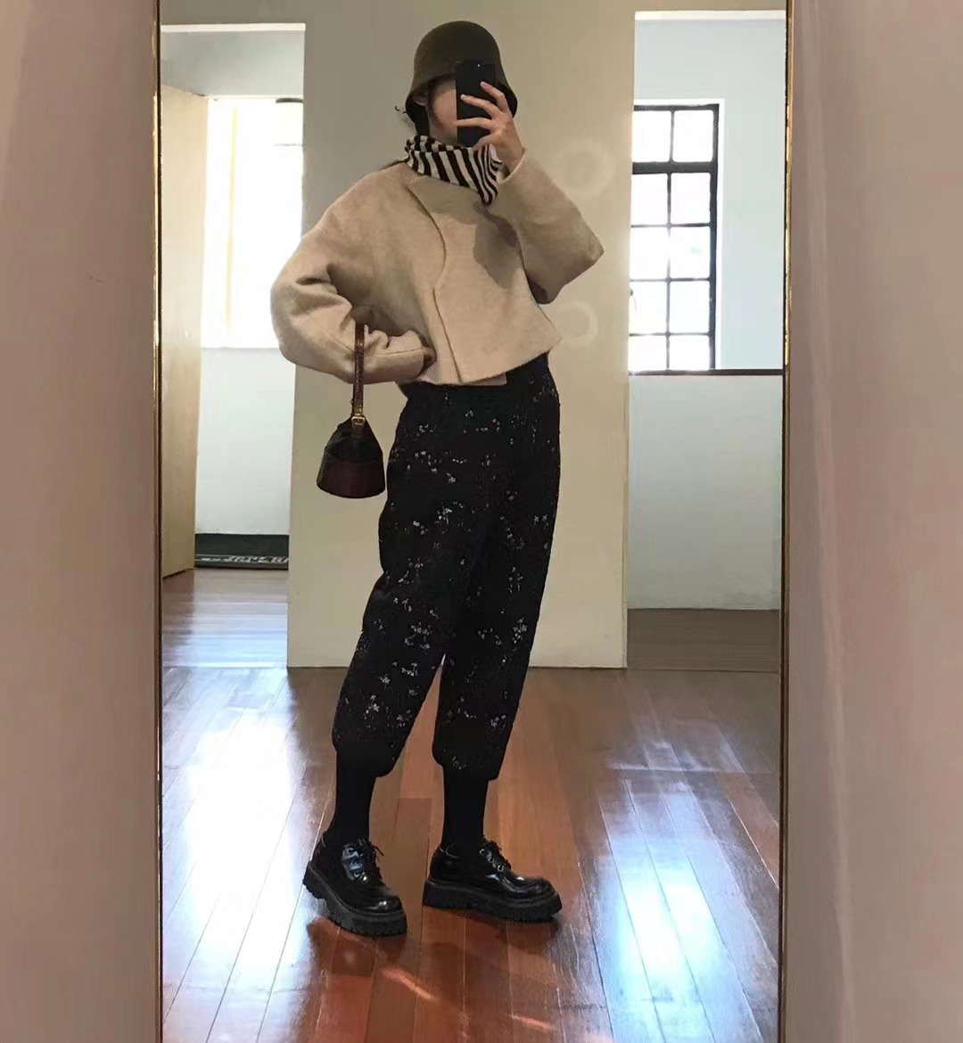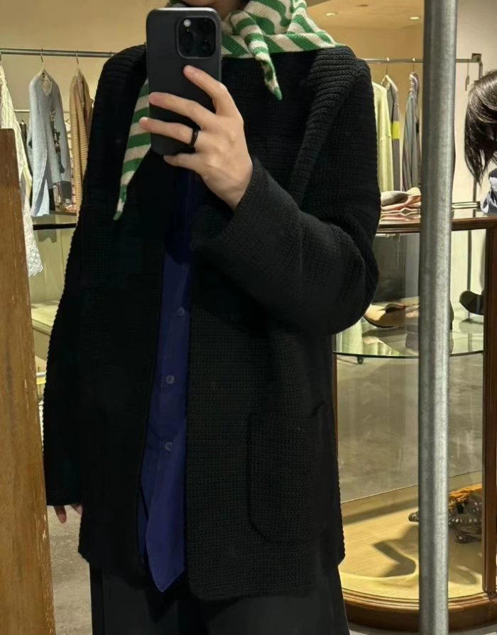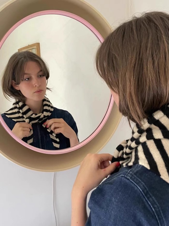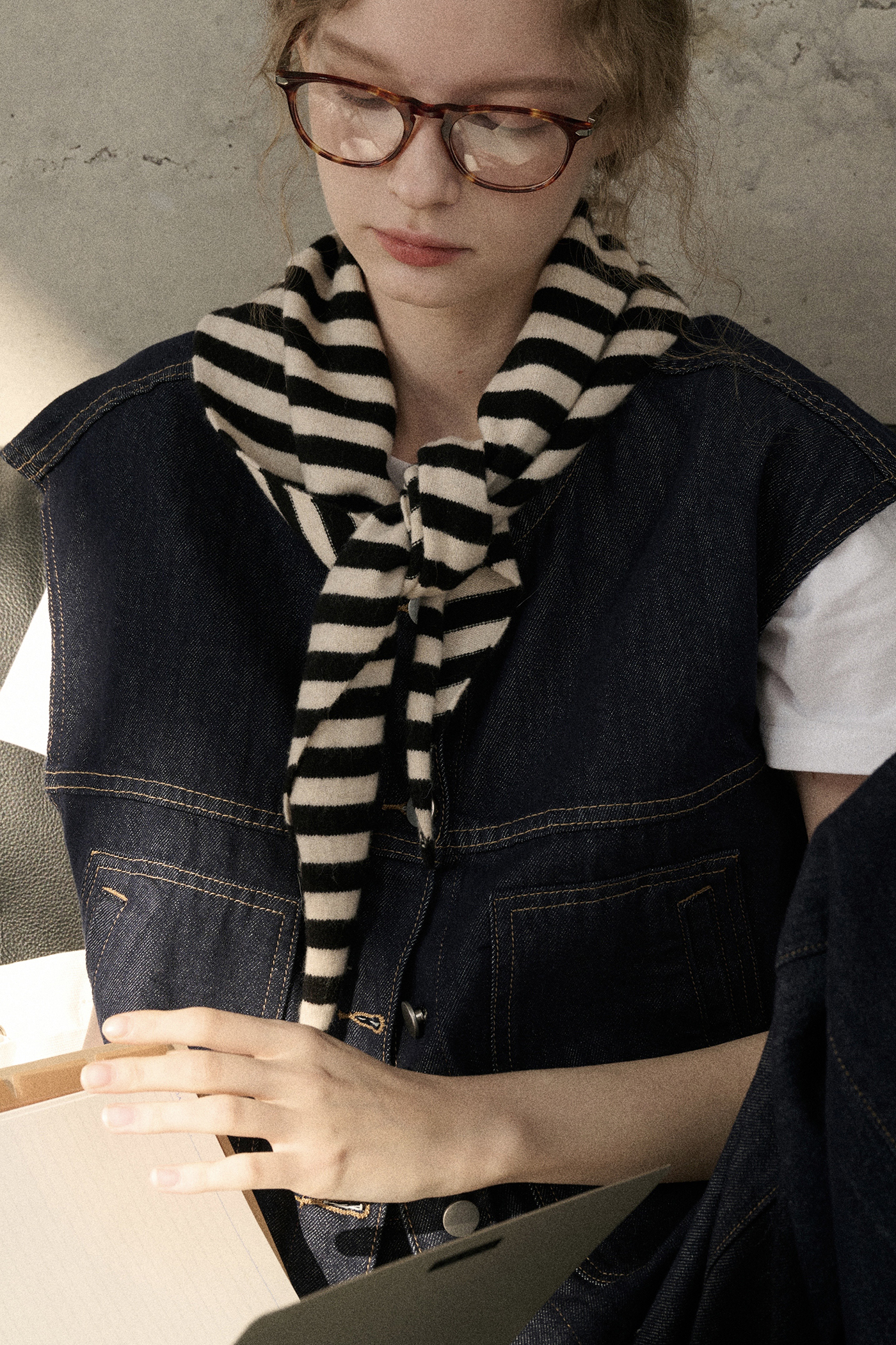 북유럽 스타일 스카프 작은 목도리 블랙 살구색 스트라이프 니트 올 매치 트라이앵글 일본 스타일 한국 스타일 틈새 디자인 스카프스토어 가기