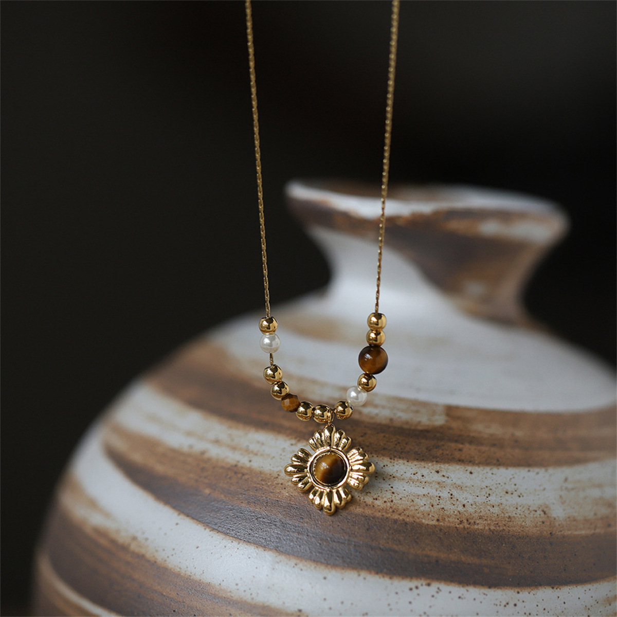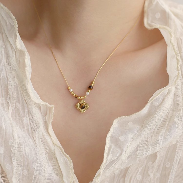 • 플라워 타이거 아이 스톤 목걸이