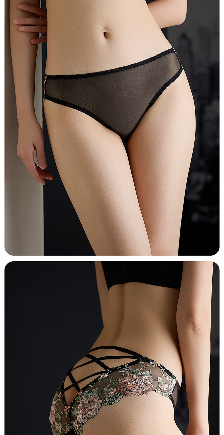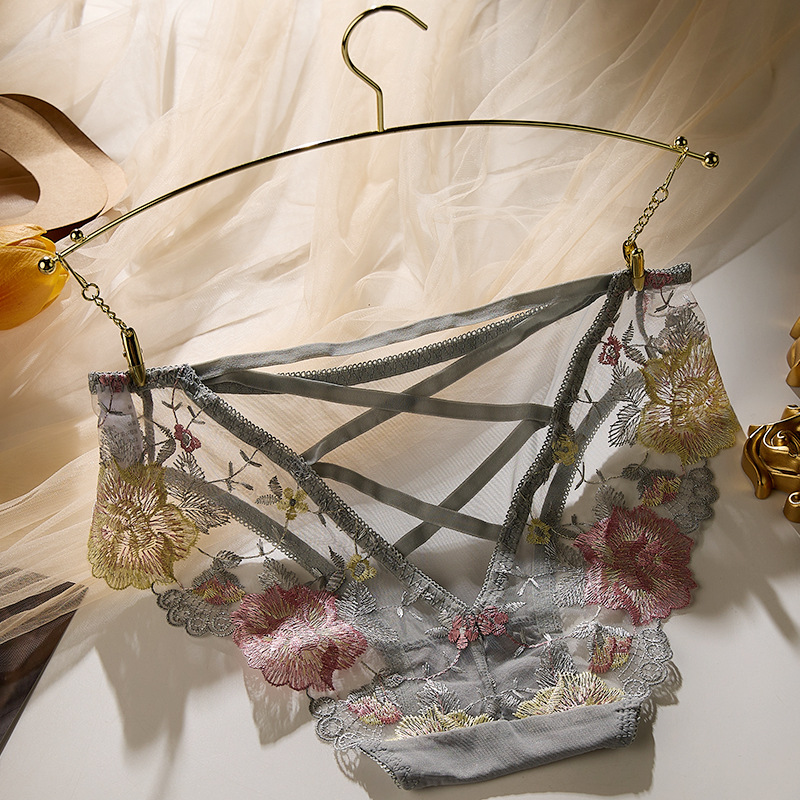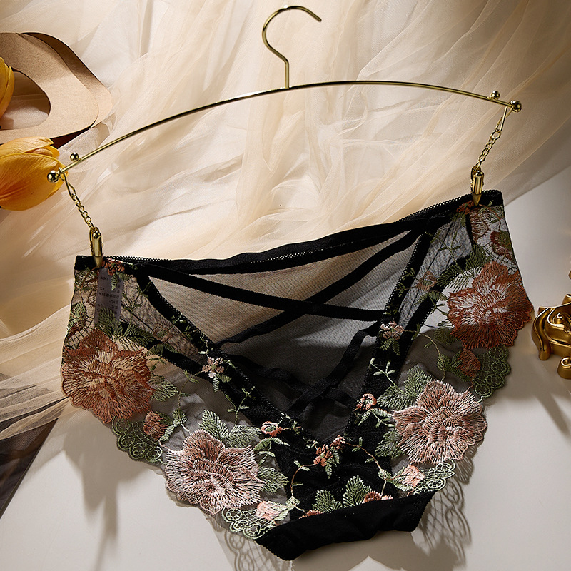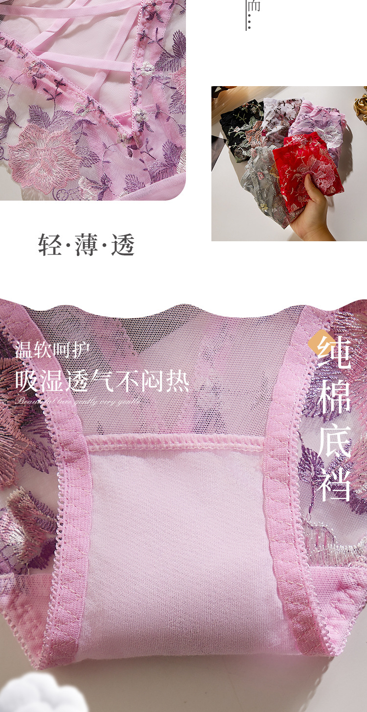 낮은 허리 자수 속옷 여성의 섹시한 투명 울트라 얇은 중공 메쉬 레이스 얇은 벨트 코튼 크로 치 소녀의 브리프