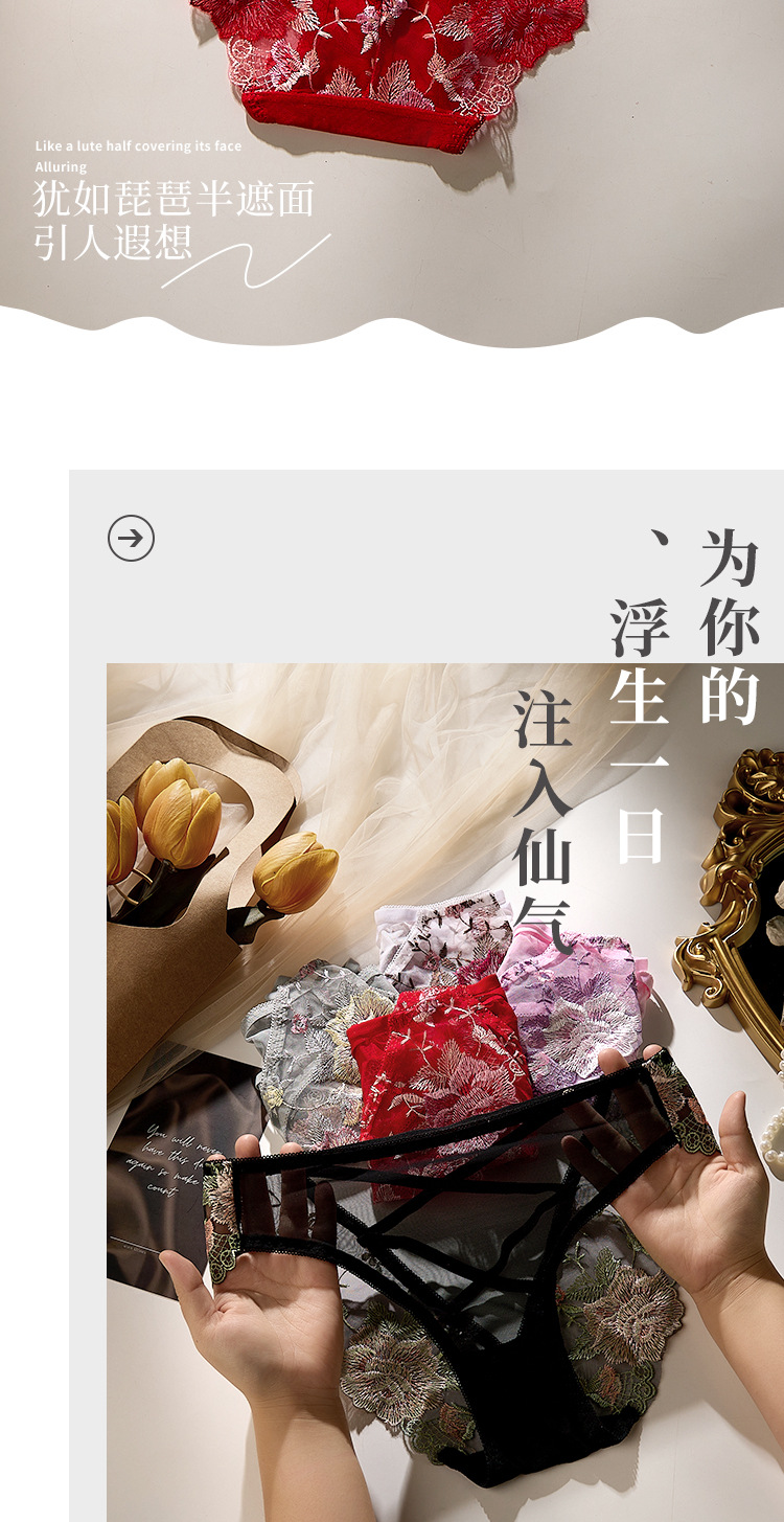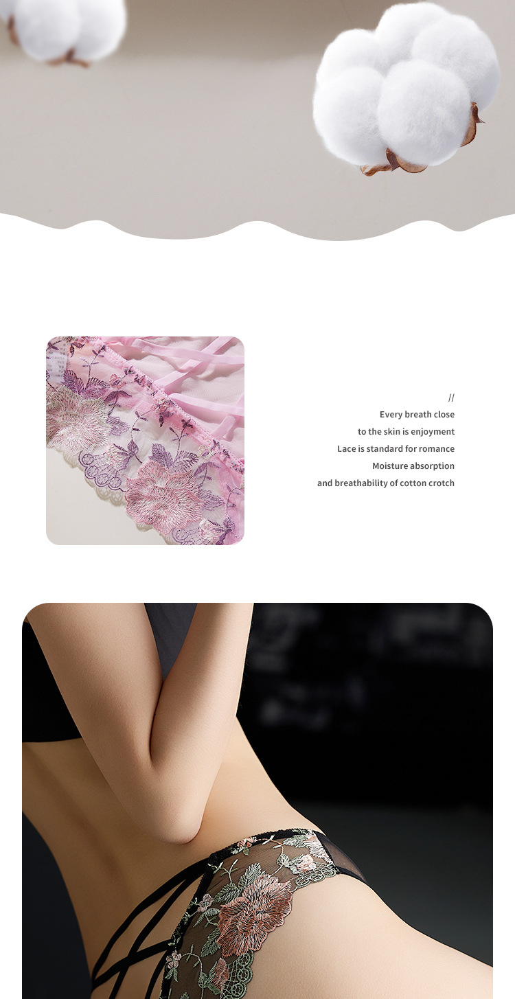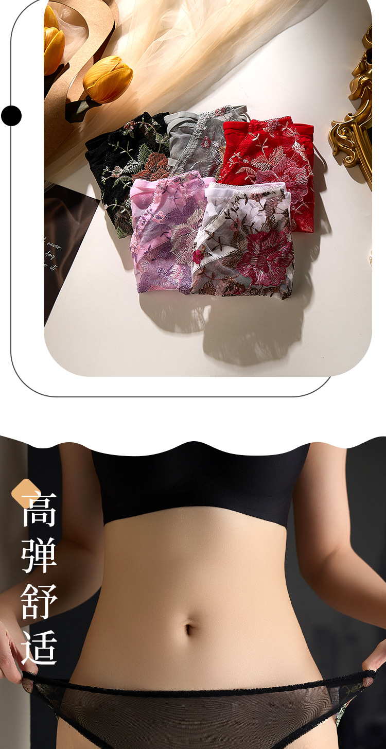 낮은 허리 자수 속옷 여성의 섹시한 투명 울트라 얇은 중공 메쉬 레이스 얇은 벨트 코튼 크로 치 소녀의 브리프