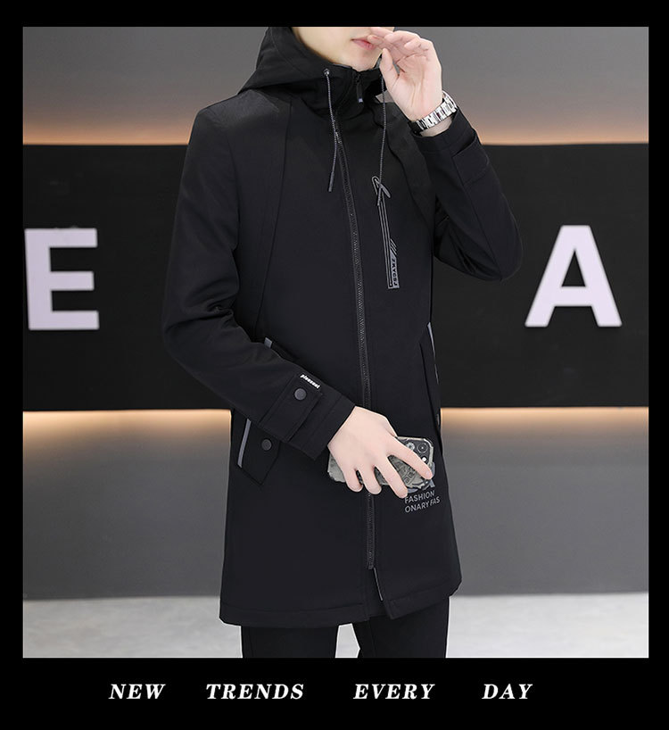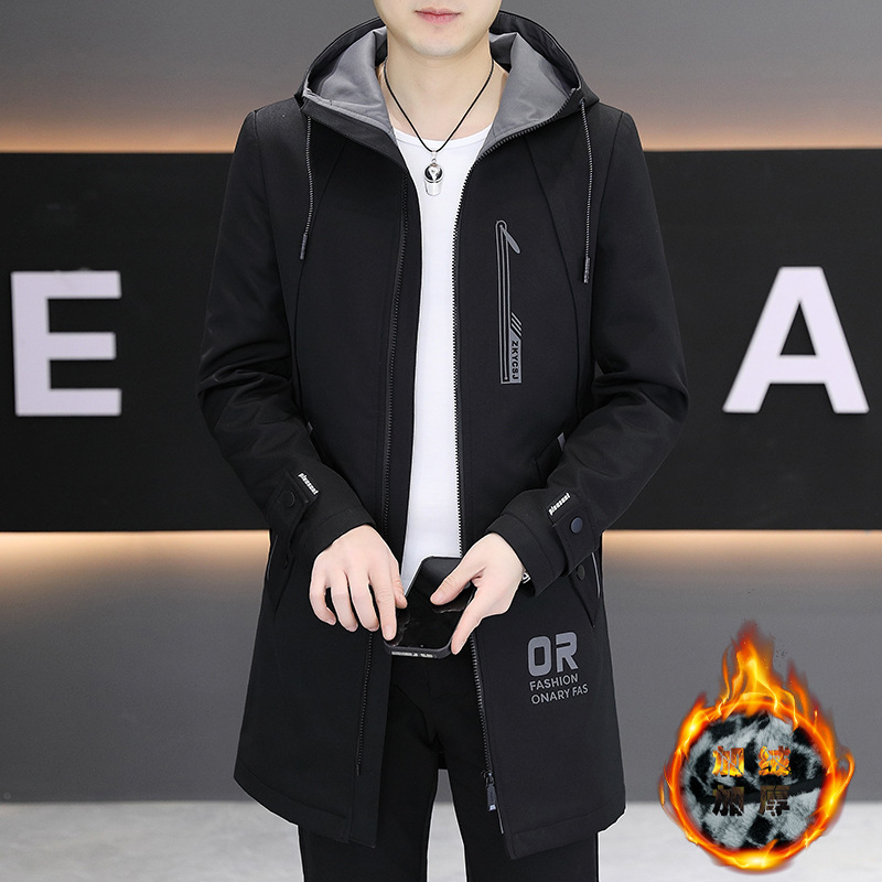 윈드브레이커 남성용 중간 길이 후드 두꺼운 캐주얼 대형 재킷 2025 겨울 신상 코트 면옷 남성복스토어 가기