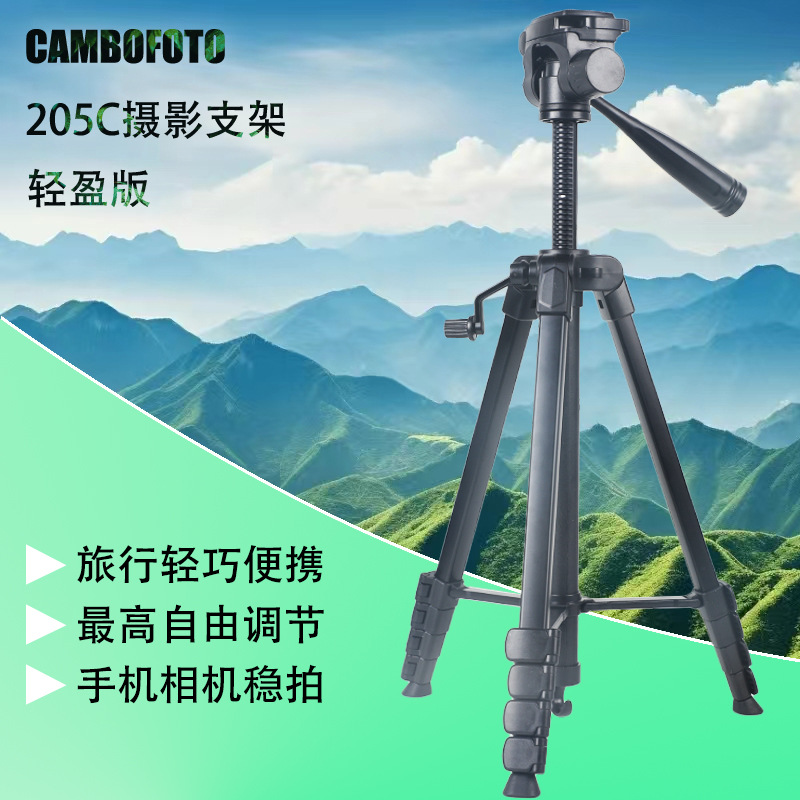 CAMBOFOTO 205C 경량 버전 삼각대 SLR 카메라 삼각대 낚시 라이트 스탠드 휴대 전화 셀카 스탠드