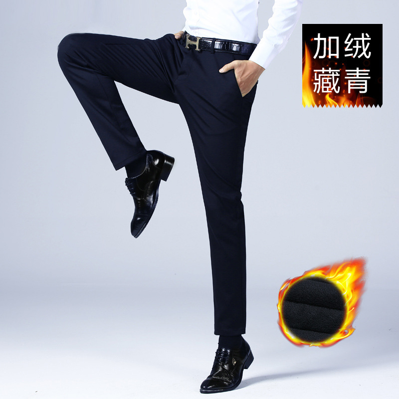 새로운 남성 비즈니스 캐주얼 바지 슬림 핏 웨스턴 바지 남자 봄, 가을, 겨울 올 매치 스트레이트 스트레치 바지 기모 두껍게스토어 가기