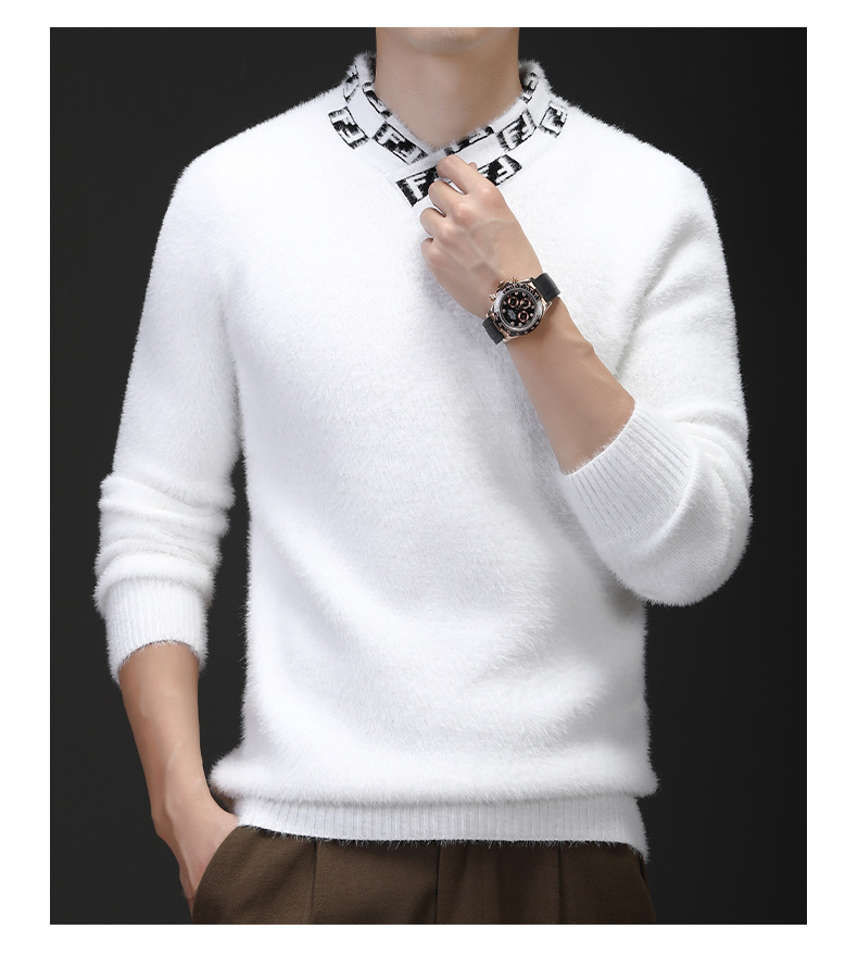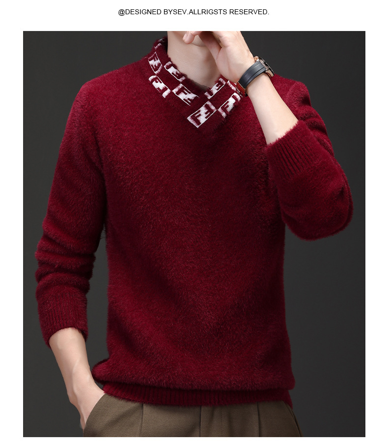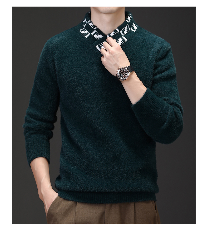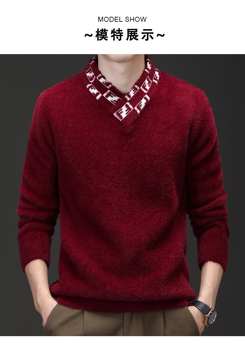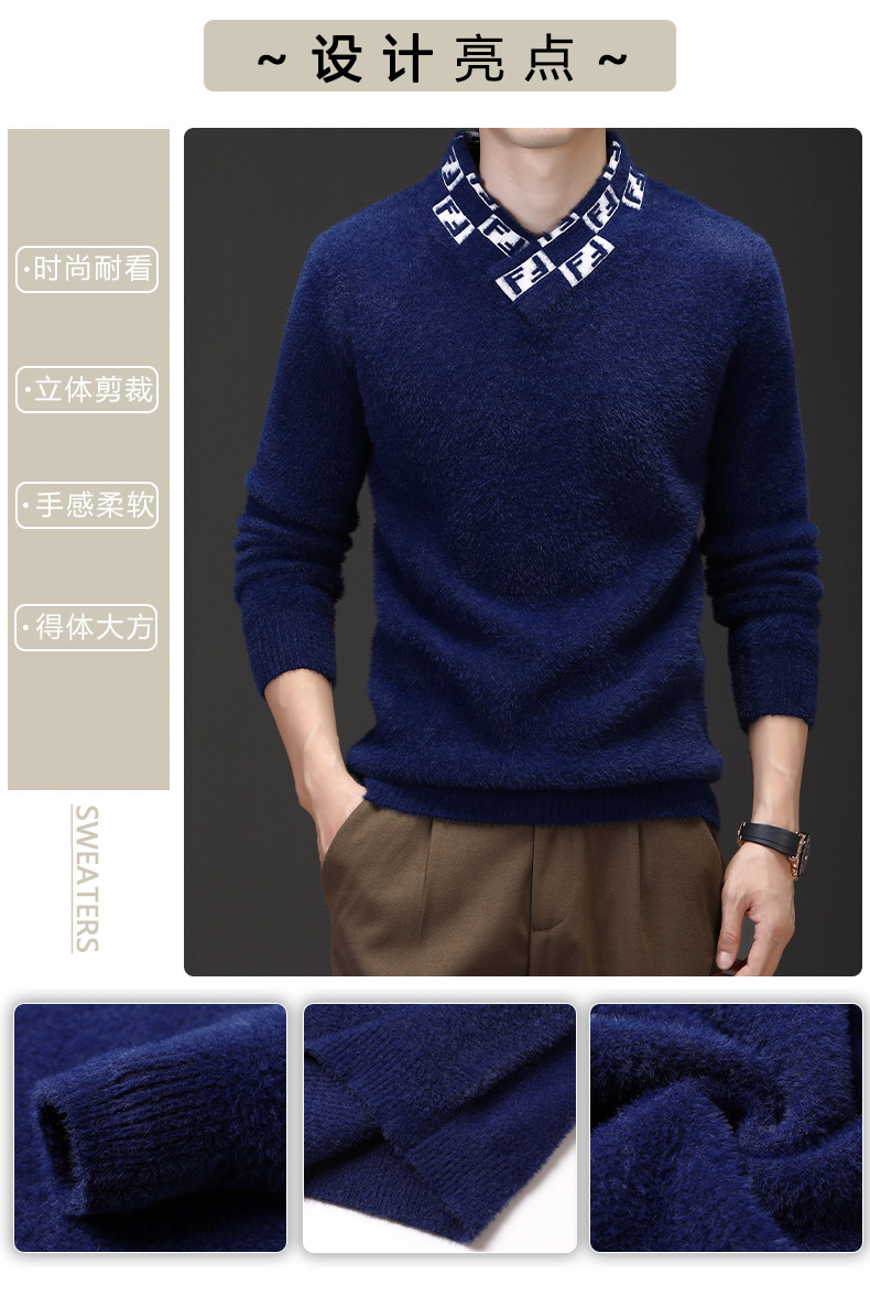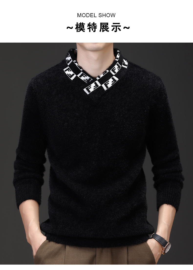 자카드 편지 V 넥 밍크 벨벳 따뜻한 니트 스웨터 청소년 편지 고급 가을 겨울 두꺼운 패션 올 매치 의류