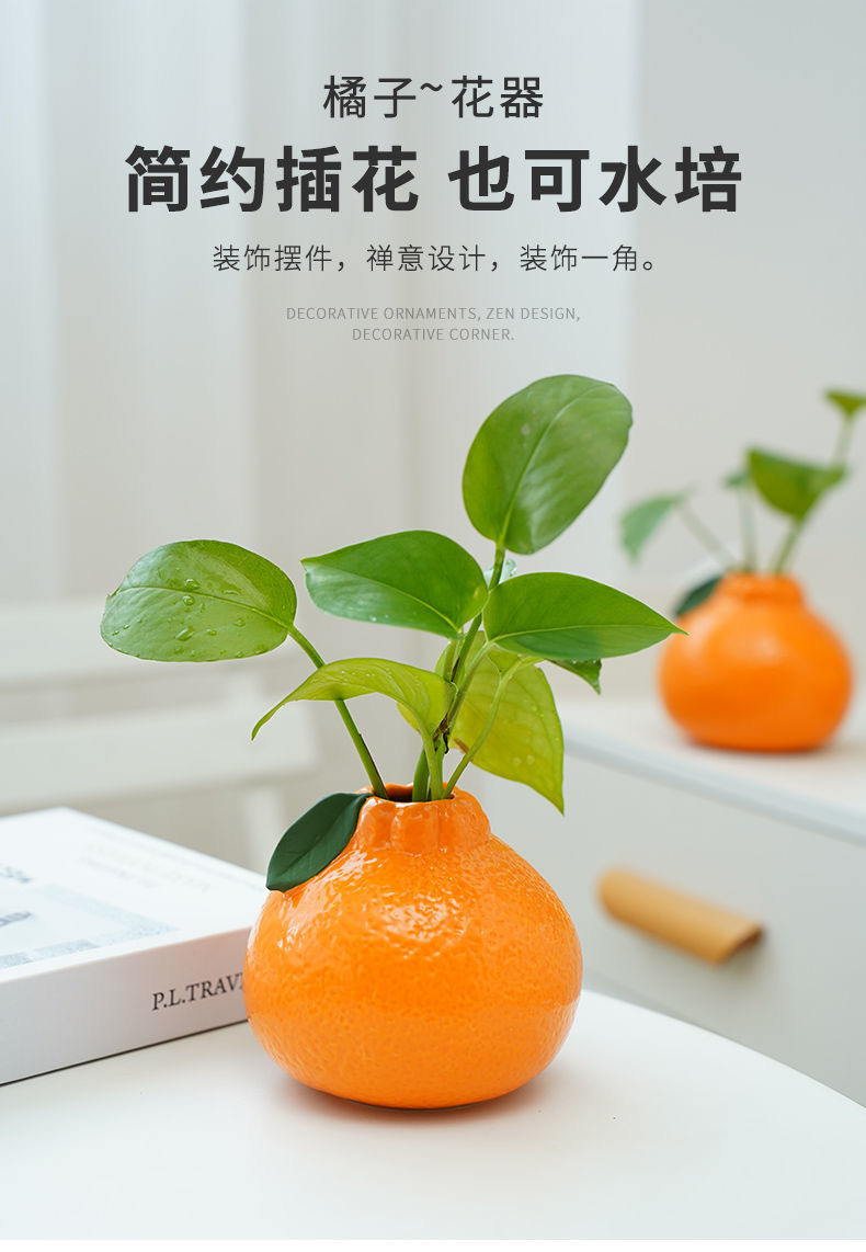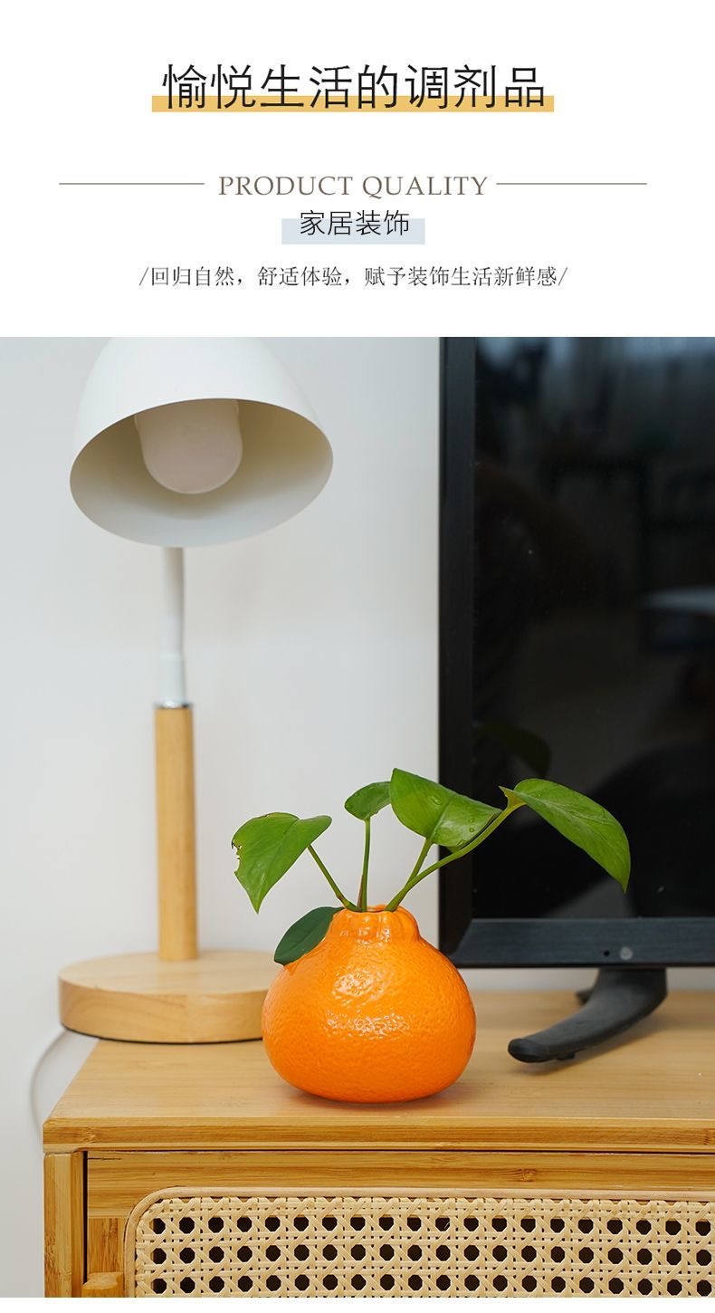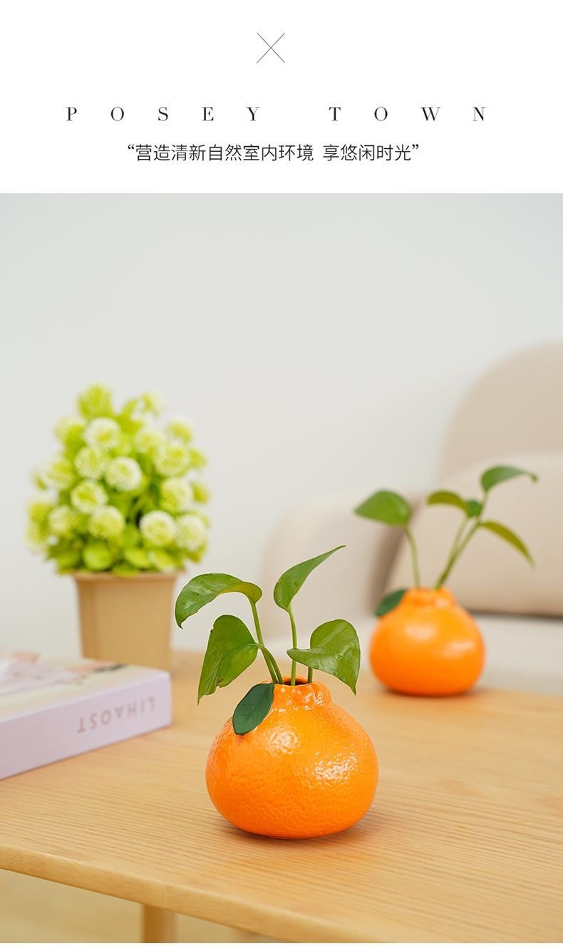 국경을 넘는 창조적 인 오렌지 세라믹 수경 녹색 식물 귀여운 구리 돈 잔디 녹색 꽃 꽃병 거실 데스크탑 장식품스토어 가기