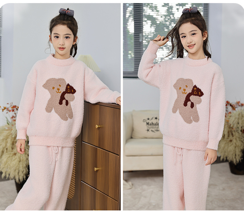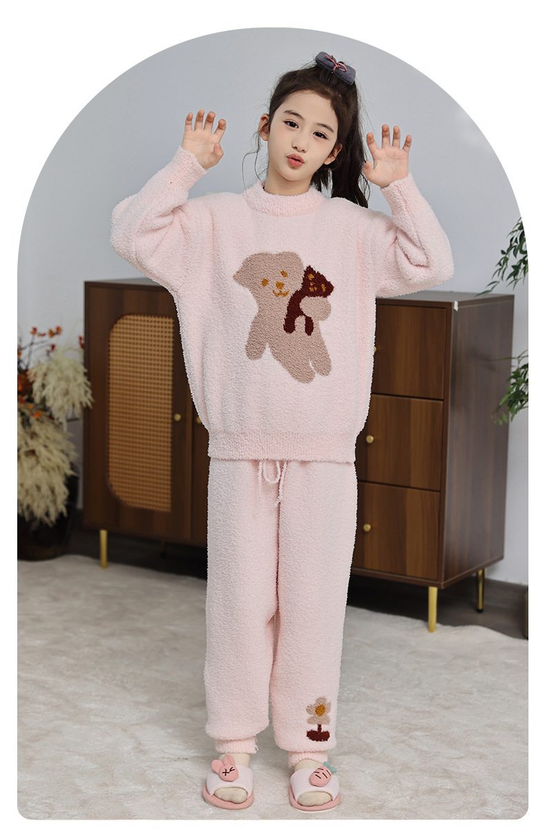 가을과 겨울 세트 일본식 부드러운 반쪽 벨벳 만화 곰 두꺼운 따뜻한 소녀 잠옷 잠옷 홈 옷