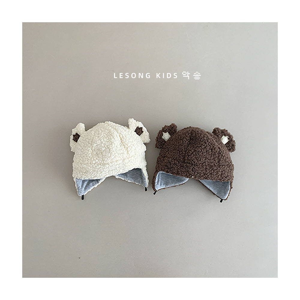 한국 스타일 귀여운 곰 비행 모자 어린이 패션 가을과 겨울 기모 레이 펑 모자 아기 양고기 벨벳 귀 보호 모자