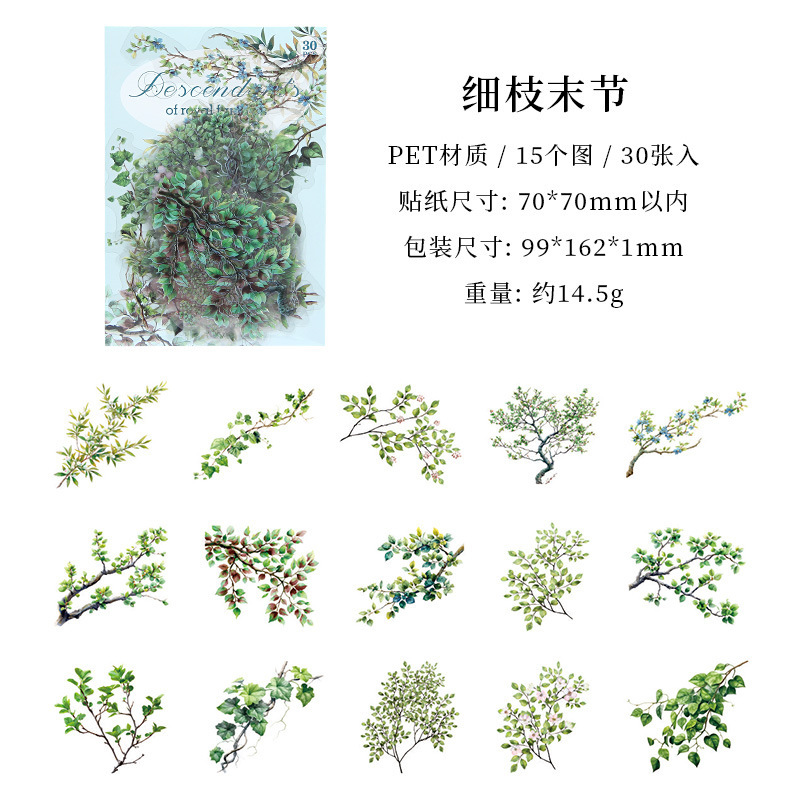 드림 댄스 골든 브랜치와 옥 잎 시리즈 30 포스팅 종이 가방 식물 꽃 손 계정 DIY 소재 장식 스티커 6