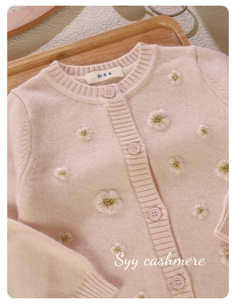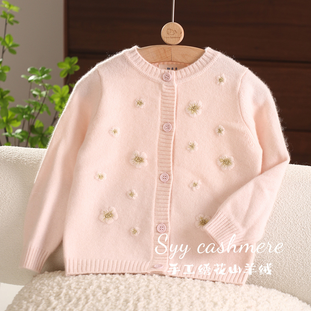 양과 양의 수 가을과 겨울 소녀 벚꽃 자수 달콤한 캐시미어 스웨터 코트 아기 외국 카디건