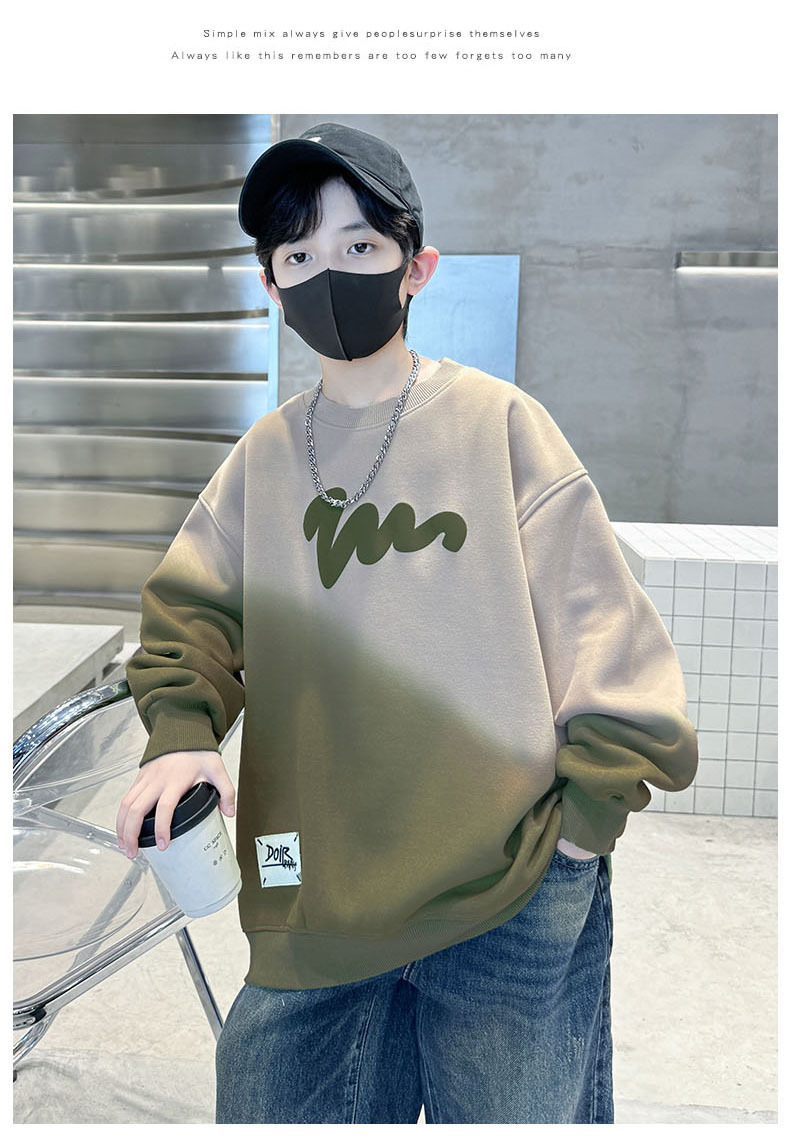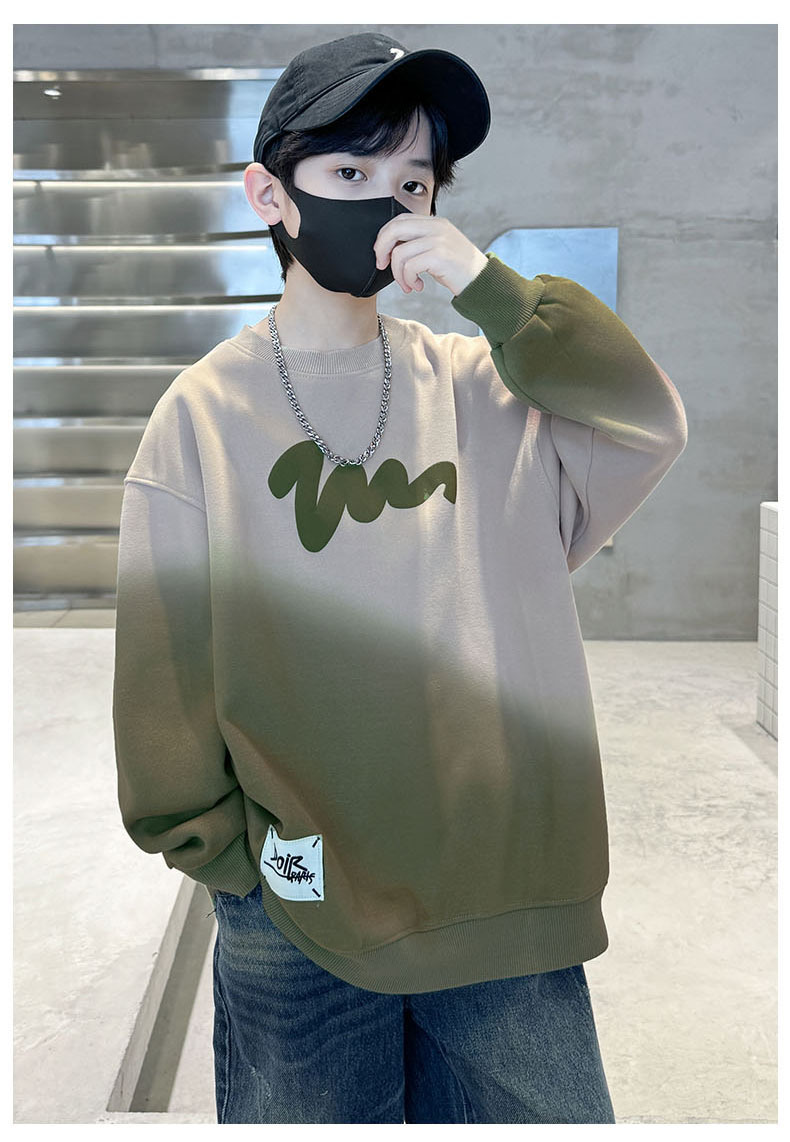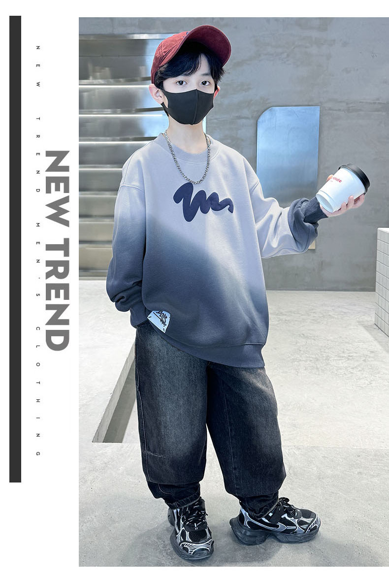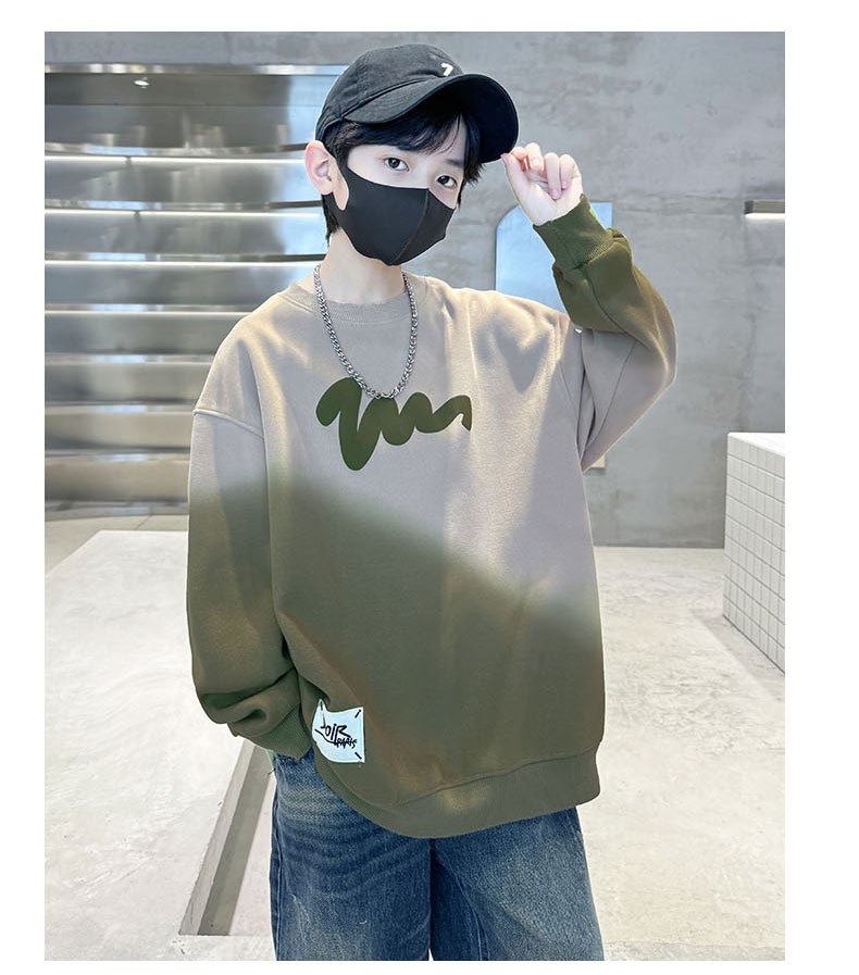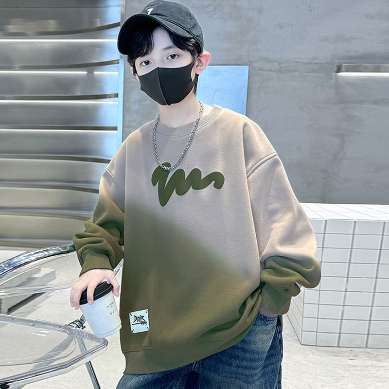 남학생의 긴팔 가을 넥타이 염색 새 편지 인쇄 학생 남자를위한 잘 생긴 중대형 어린이 봄과 가을 코트스토어 가기