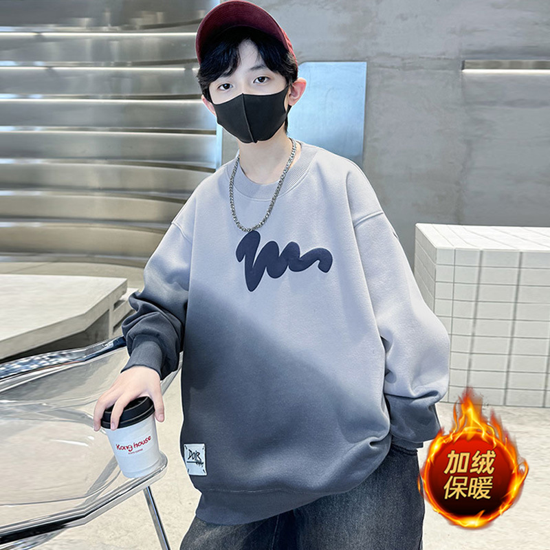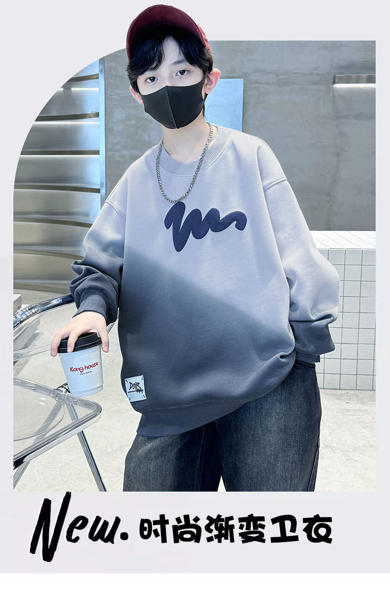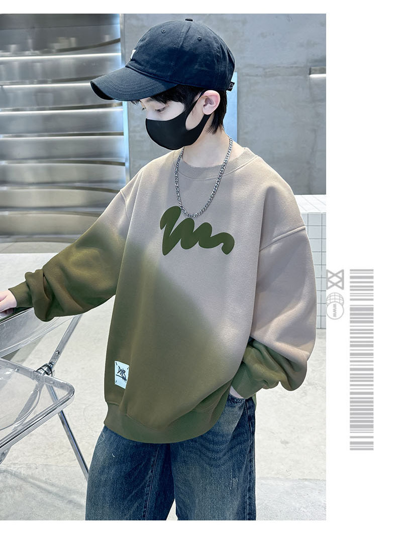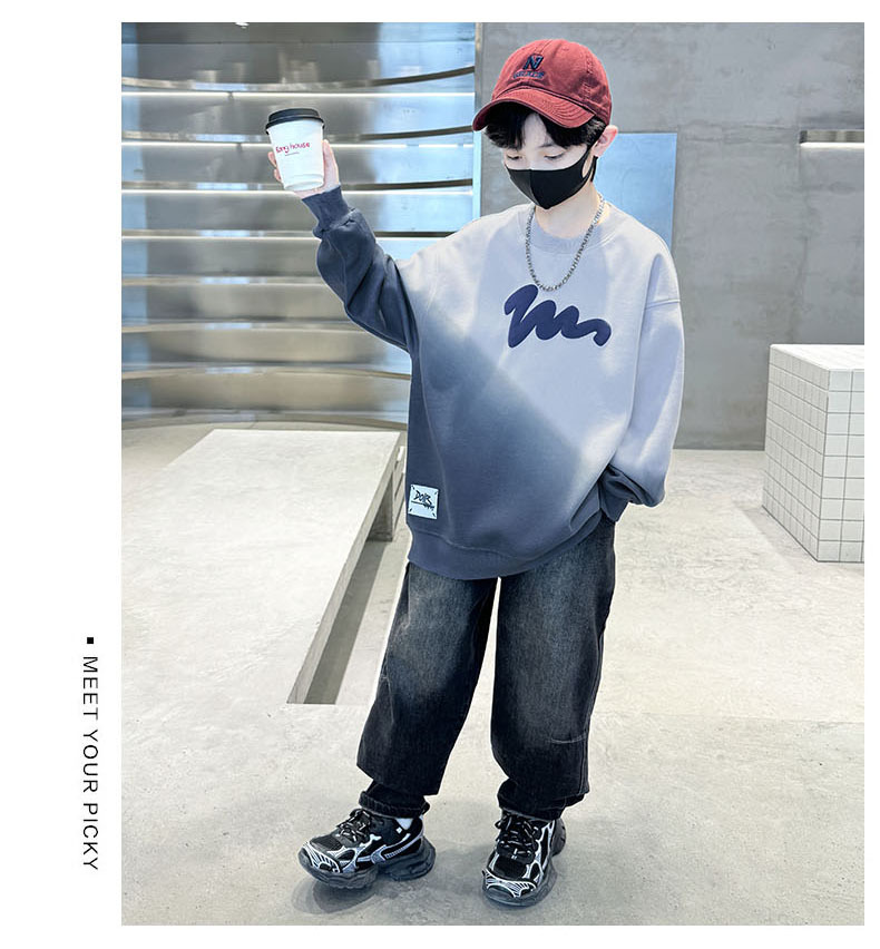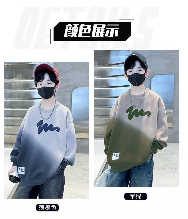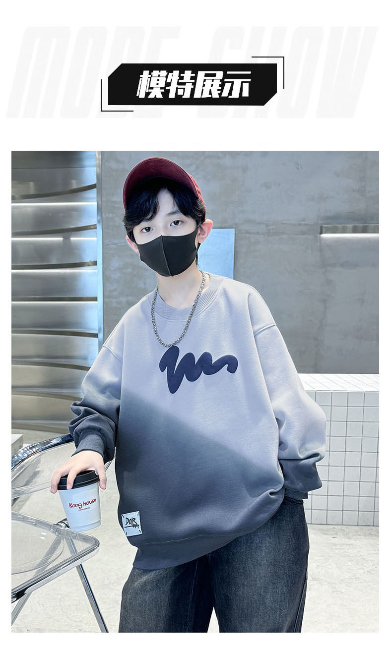 남학생의 긴팔 가을 넥타이 염색 새 편지 인쇄 학생 남자를위한 잘 생긴 중대형 어린이 봄과 가을 코트스토어 가기