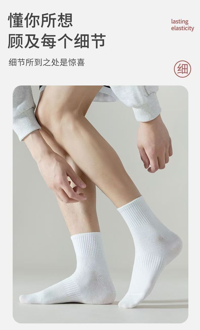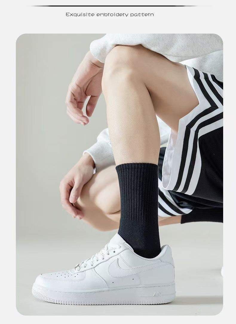 【100% 신장산 면】남녀공용 사계절용 중단목 양말, 단색, 스포츠용, 통기성, 땀 흡수, 탈취 기능