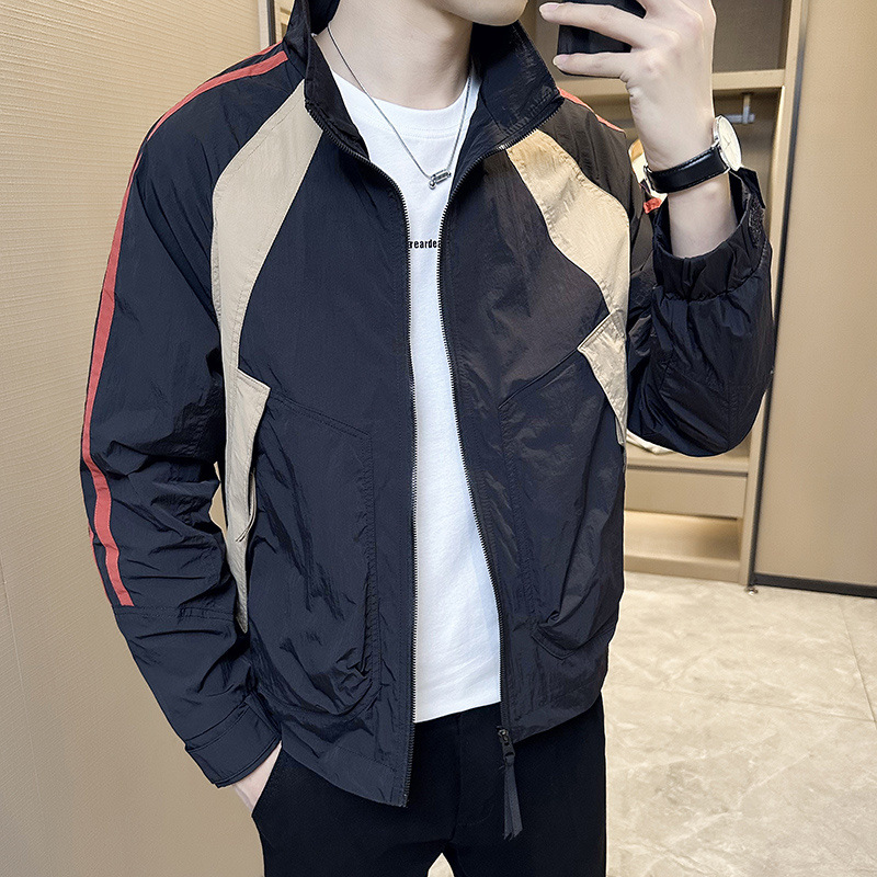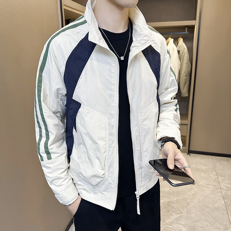 재킷 남자의 봄과 가을 2023 새로운 도착 가을 유행 브랜드 남자의 유행과 잘 생긴 컬러 매칭 칼라 재킷 가을 탑스토어 가기