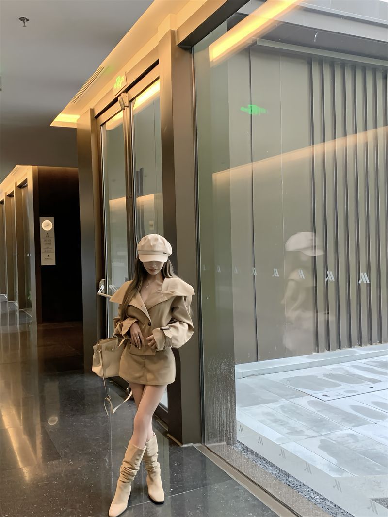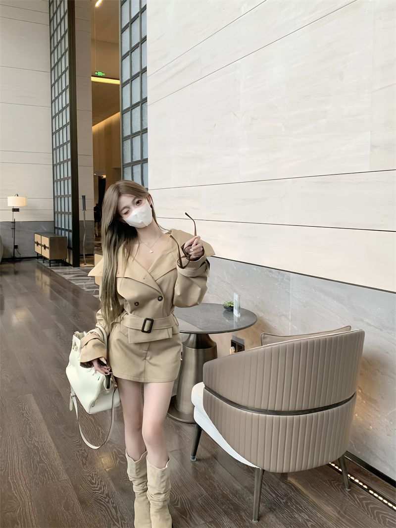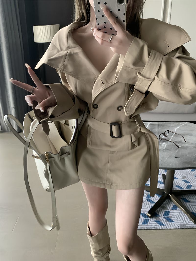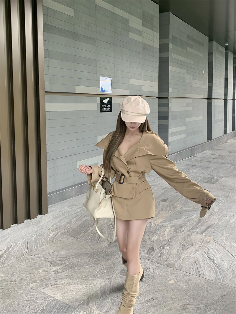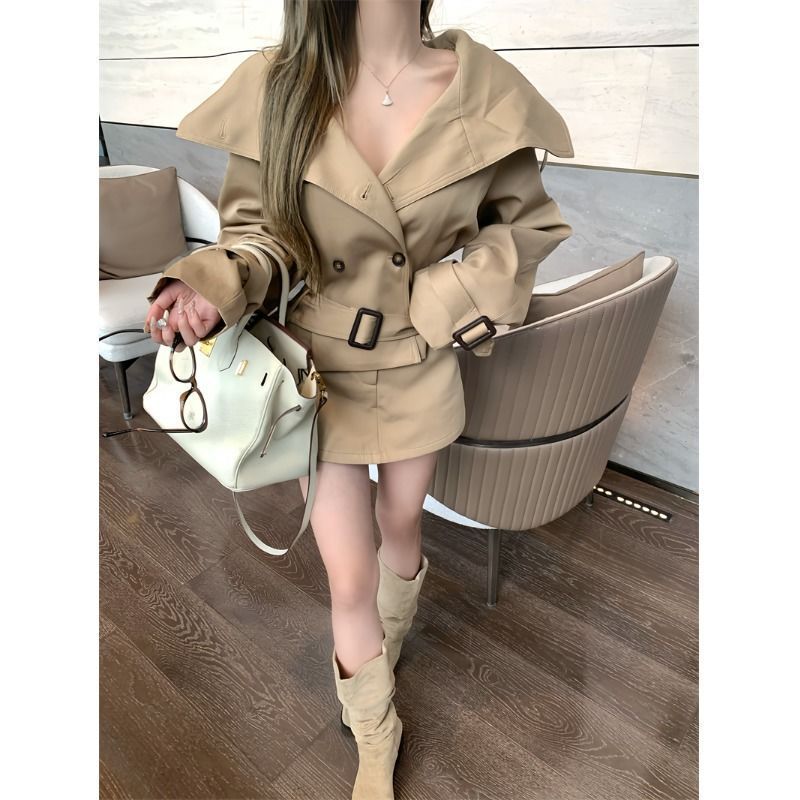 여성을위한 레트로 영국 스타일 대형 옷깃 허리 짧은 드레스 2025 가을 캐주얼 힙 스커트 패션 슈트