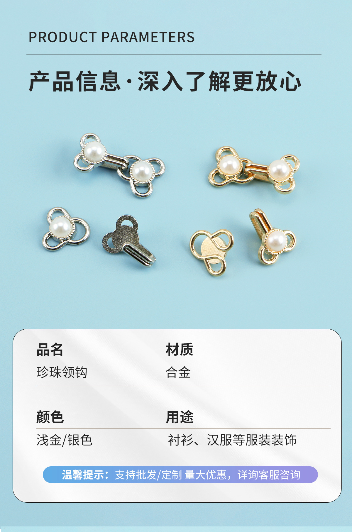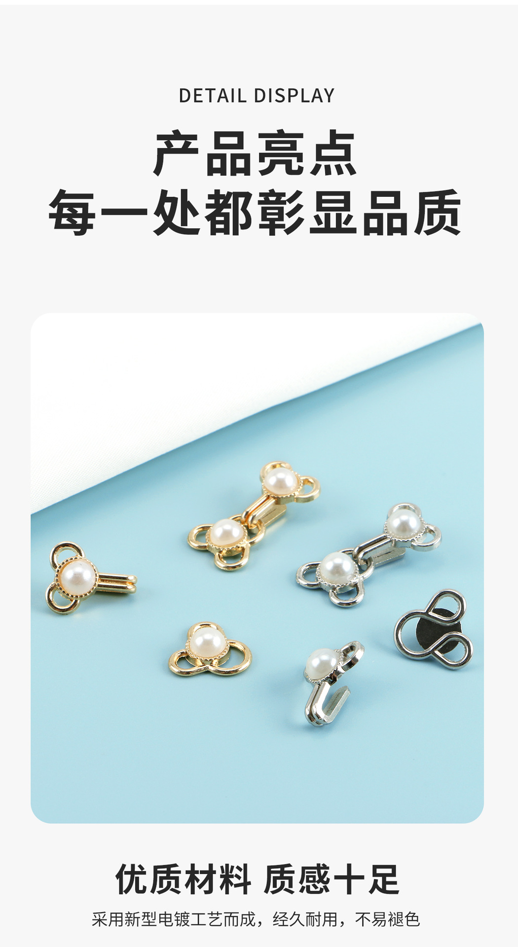 재고 도매 칼라 후크 바지 후크 버튼 바람 버클 장식 버클 합금 진주 후크 버튼 스웨터 모피 버튼스토어 가기