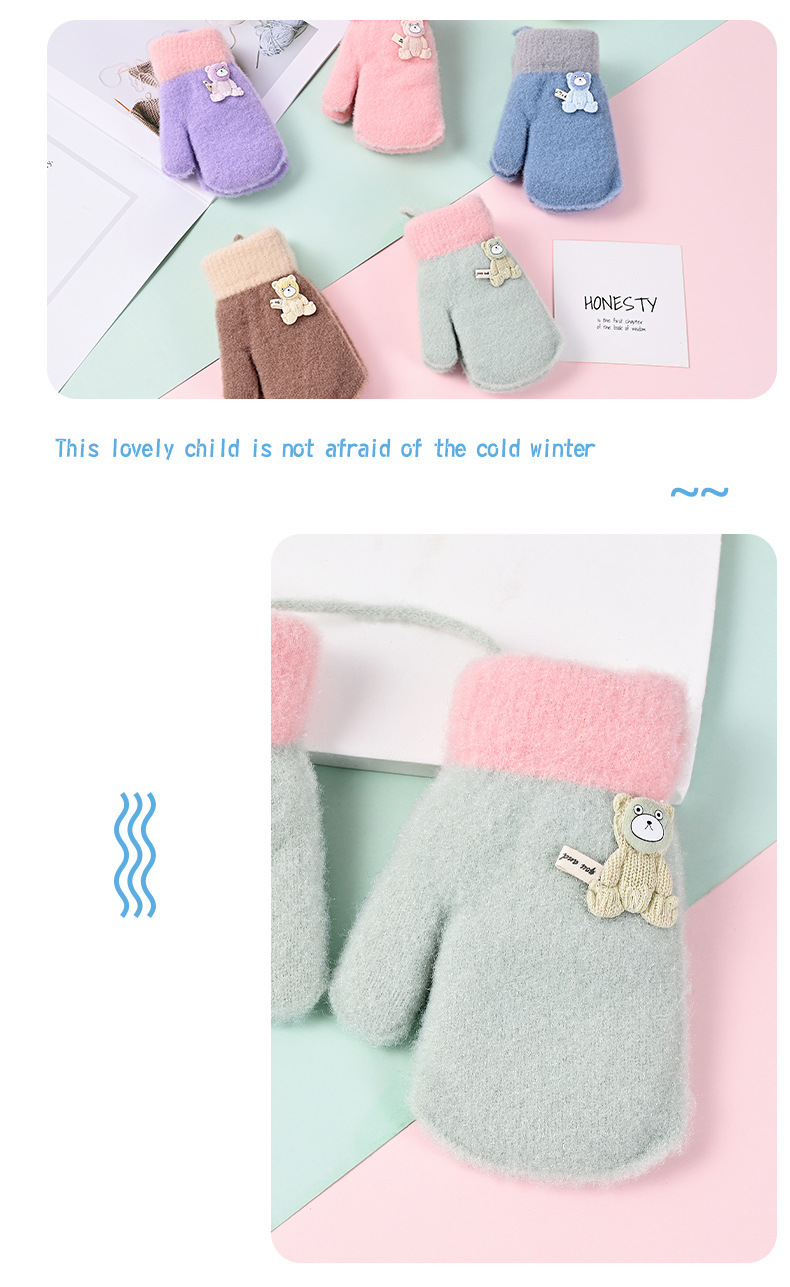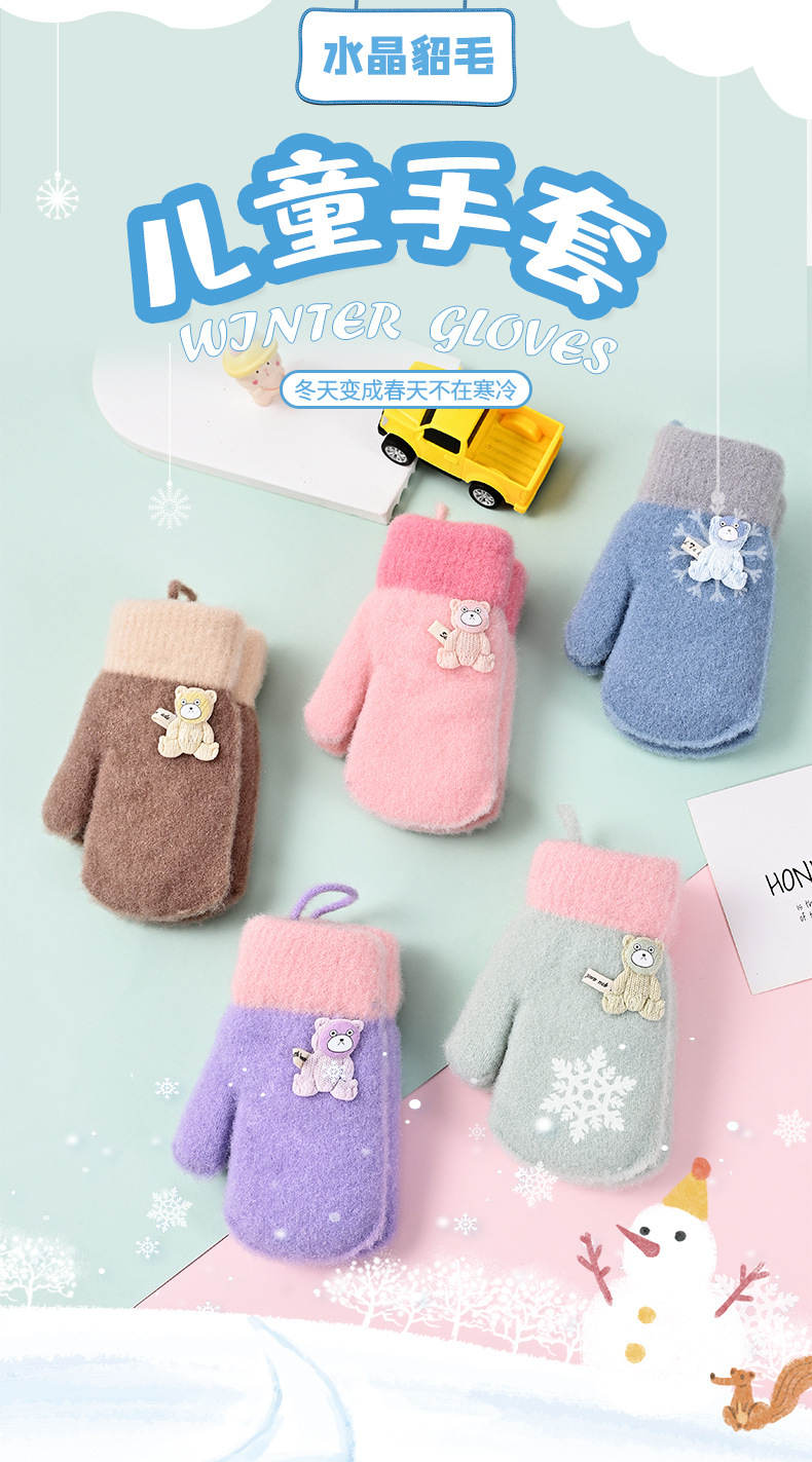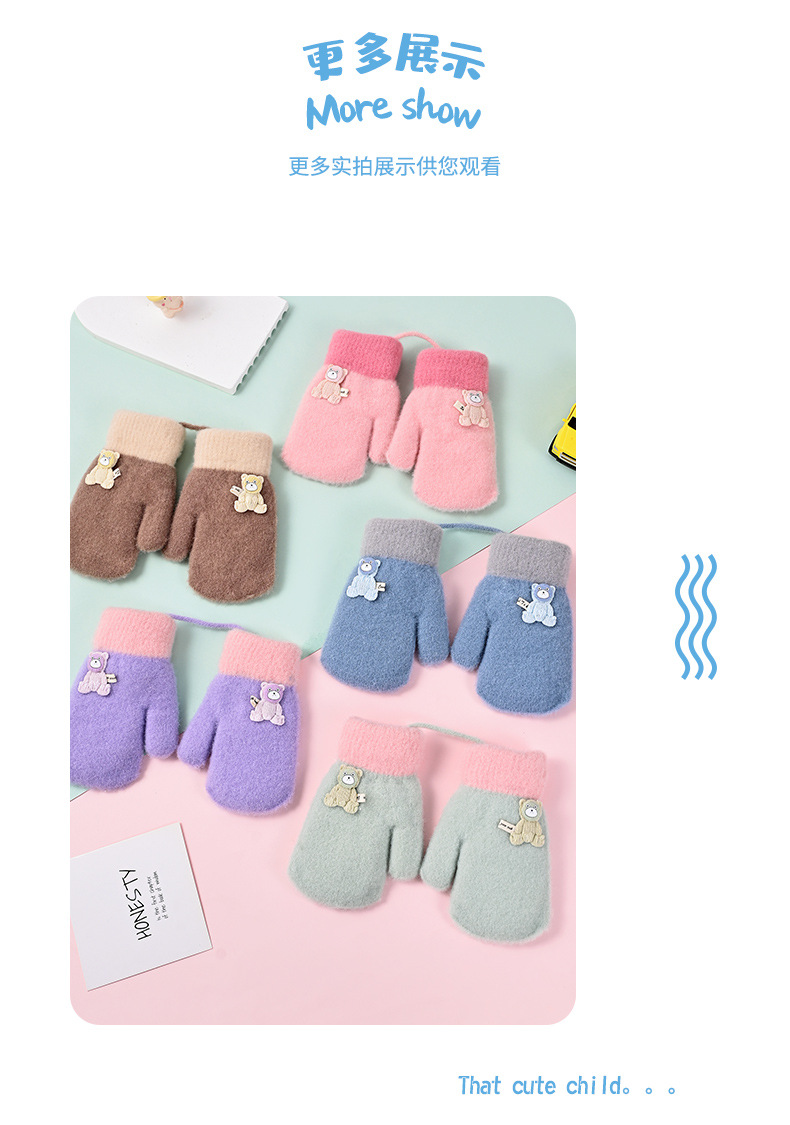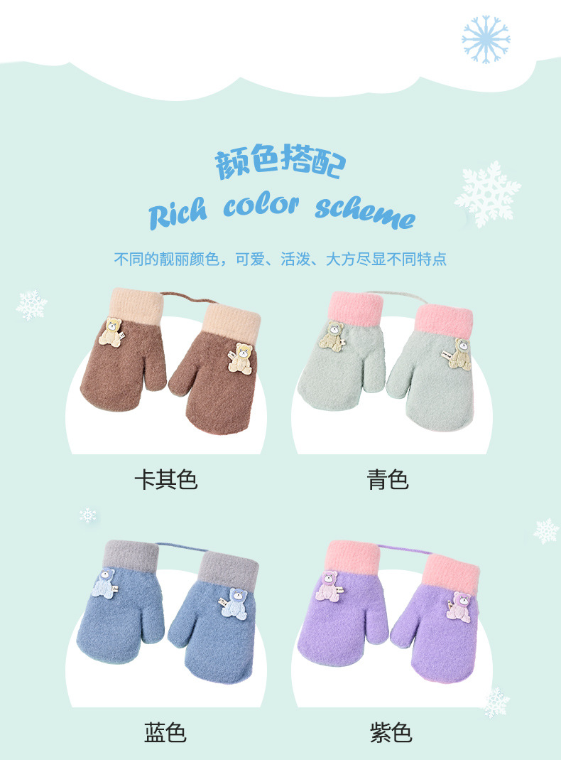 2026년 신상 아동용 장갑, 귀엽고, 벨벳 안감이 두껍게, 방한 및 보온 기능이 있으며, 만화 캐릭터 끈이 달려있어, 아이들을 위한 따뜻한 일체형 장갑