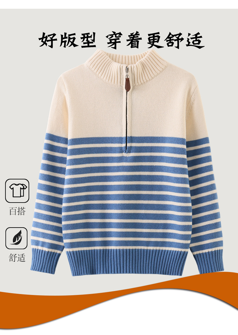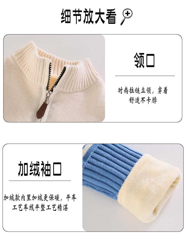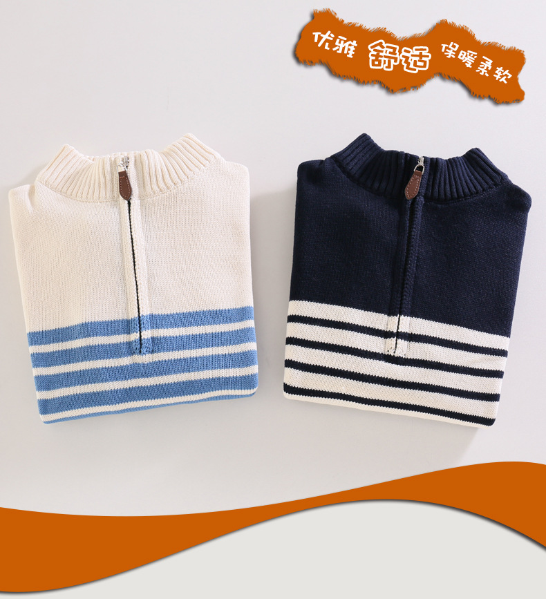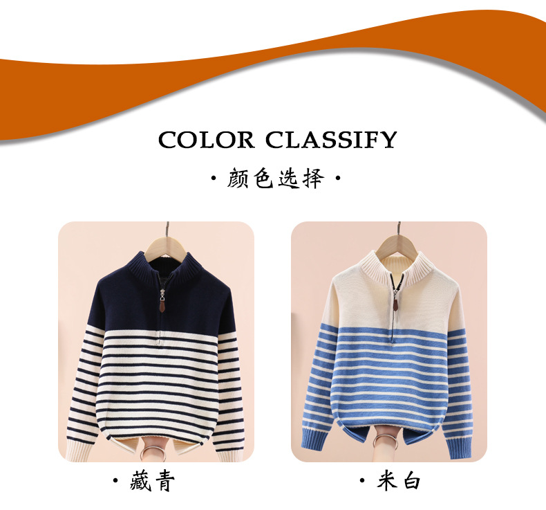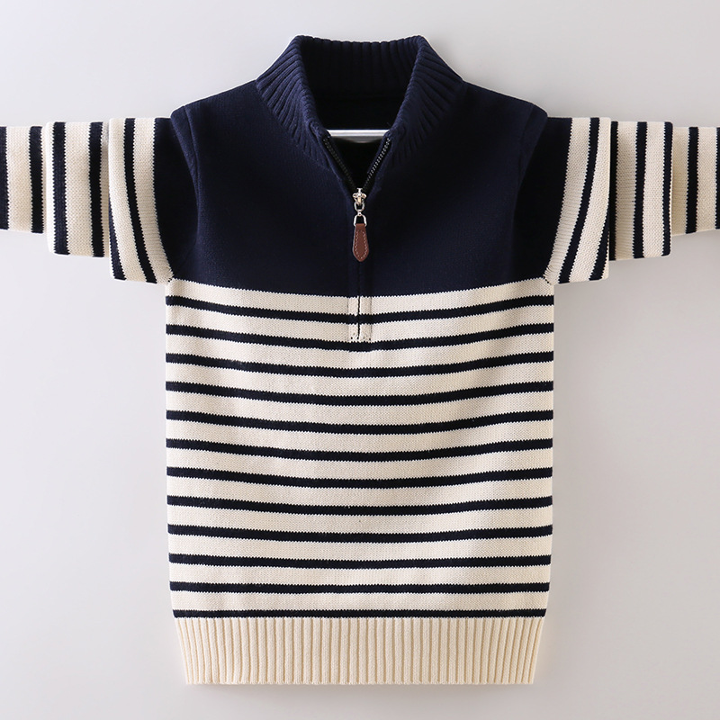 가을과 겨울 새 소년 기모 두꺼운 아동복 니트 셔츠 큰 어린이 만화 소년 줄무늬 면 지퍼 셔츠