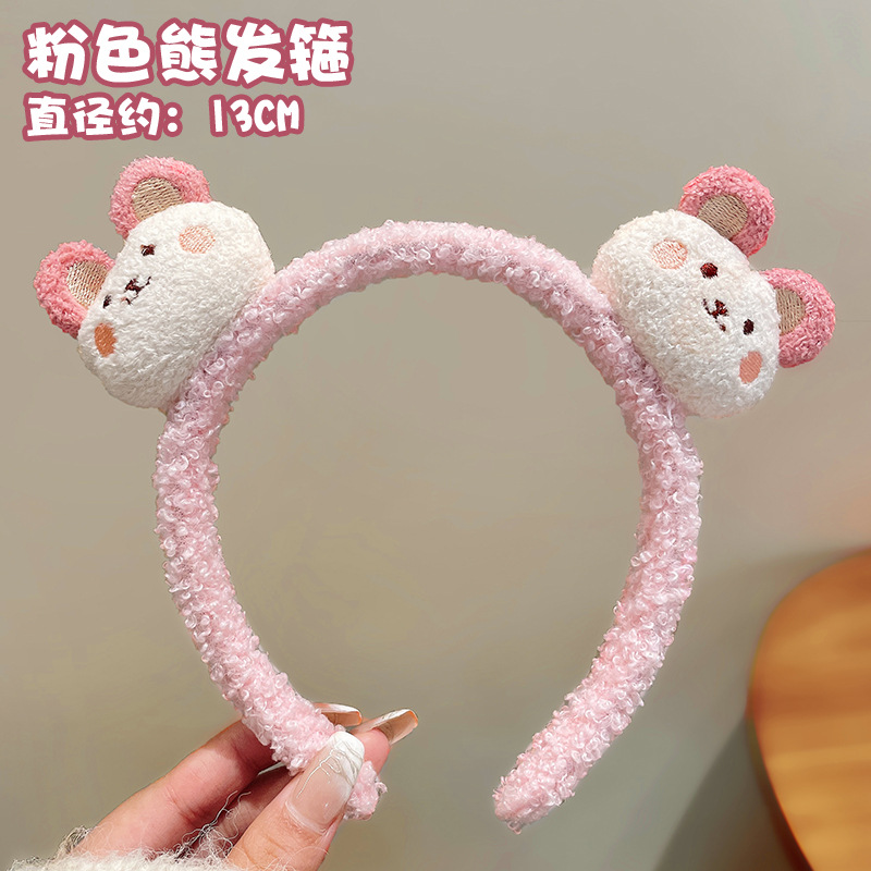 가을과 겨울 한국 귀여운 곰 머리 후프 여성 양고기 머리 세척 얼굴 머리띠 소녀 만화 미끄럼 방지 압력 머리 머리 머리 클립