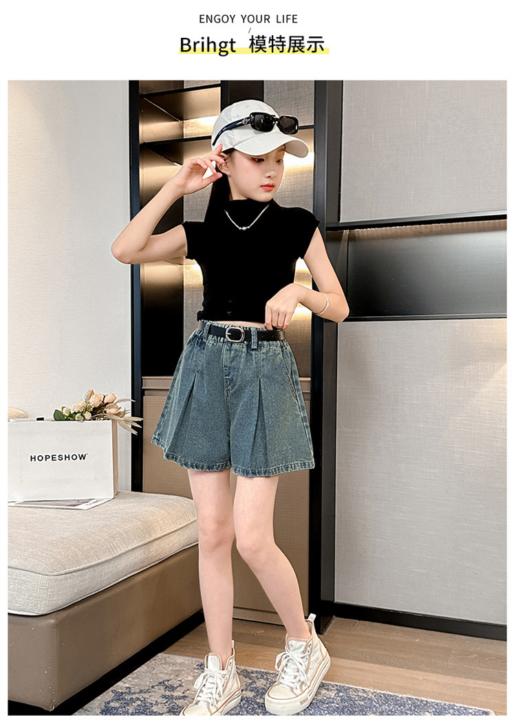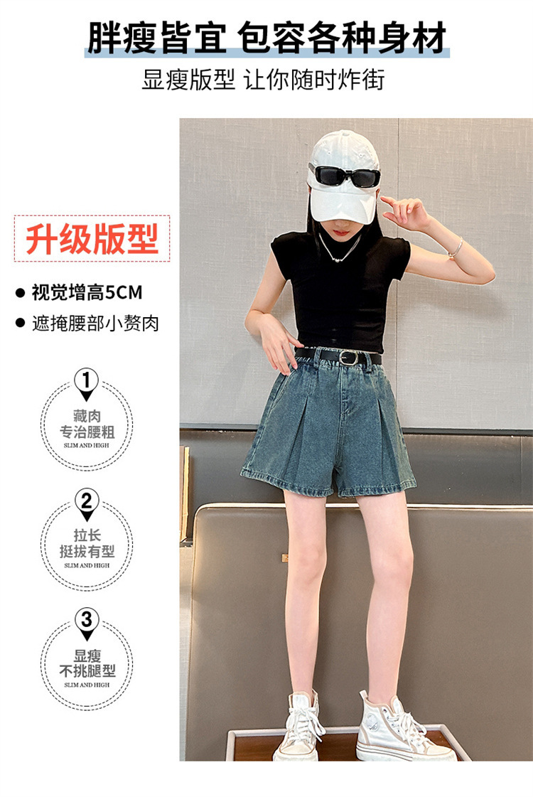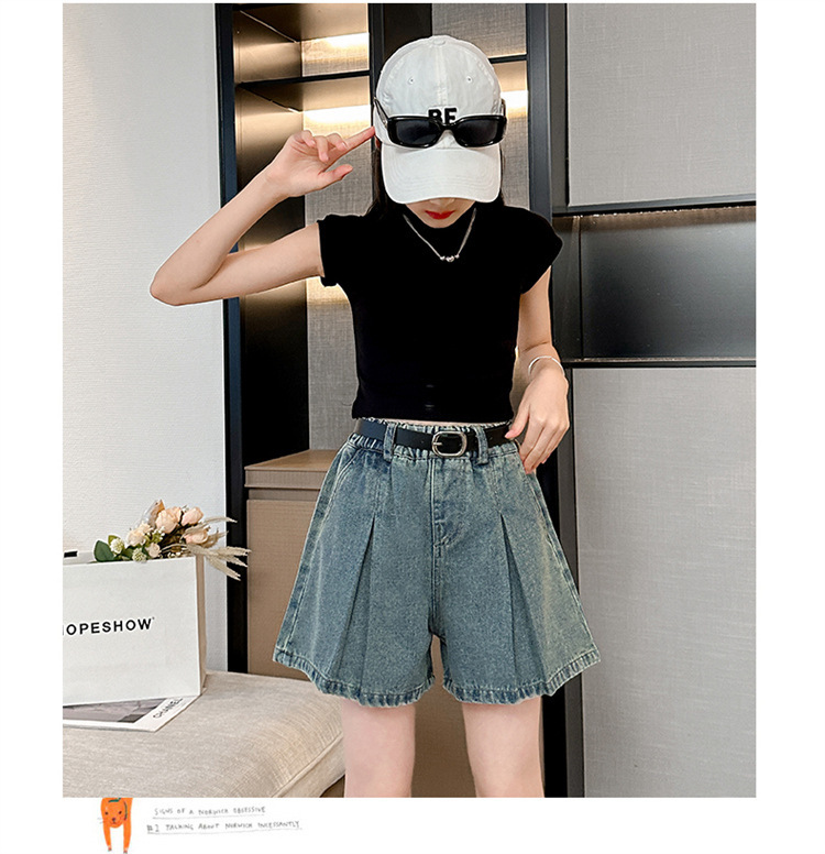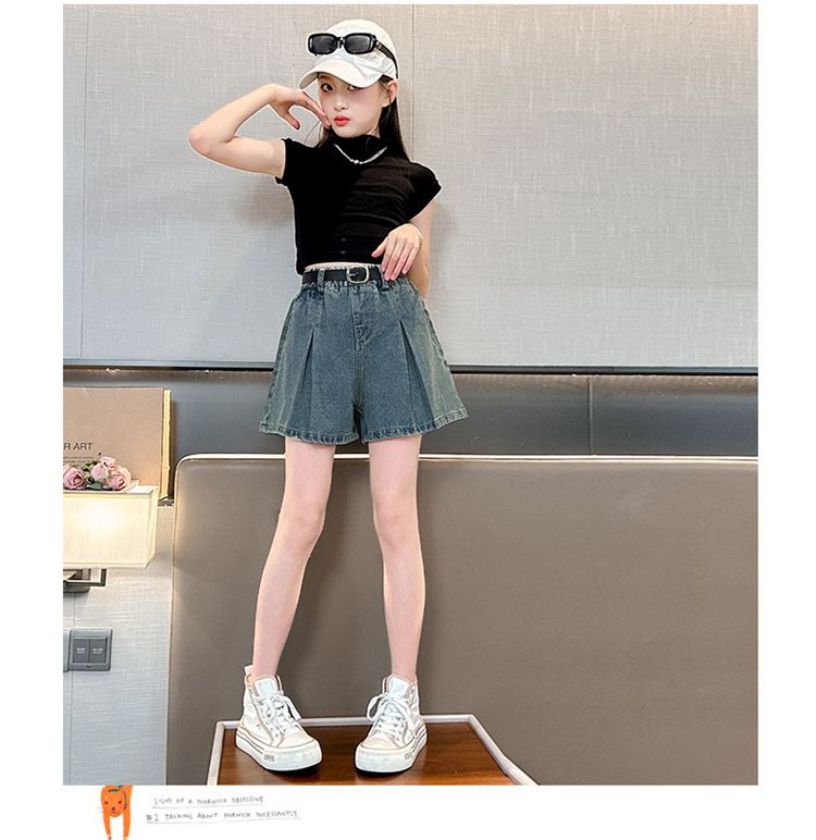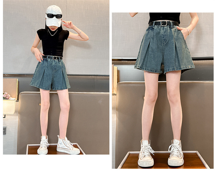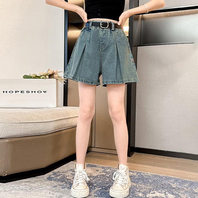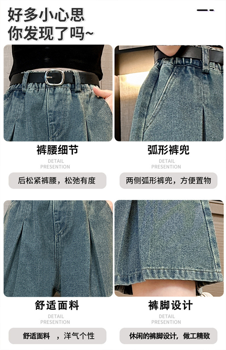 소녀 데님 Culottes 여름 2024 새로운 어린이 서양식 미드 빅 어린이 여름 얇은 반바지 트렌디 팬츠스토어 가기