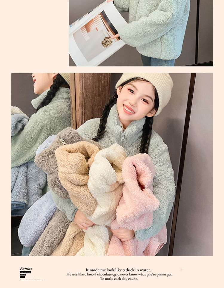 U 어린이 가을과 겨울 벨벳 코트 롱 벨벳 코랄 벨벳 소년 소녀를위한 탑스토어 가기