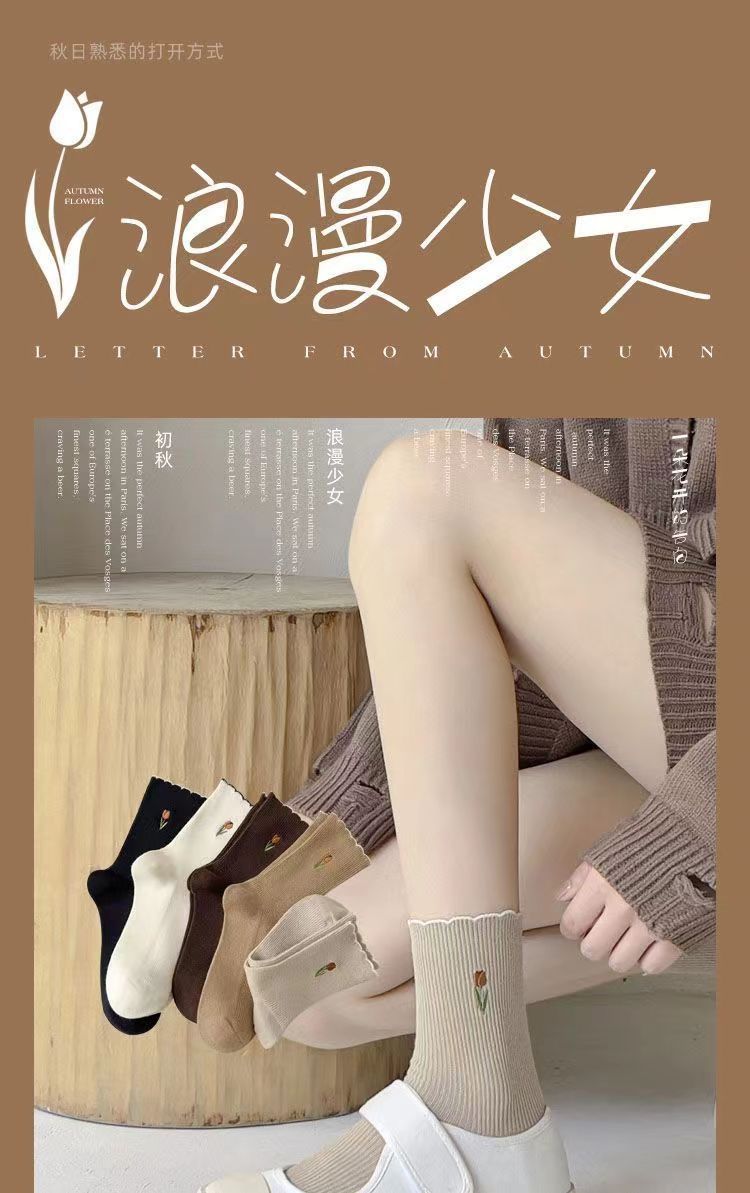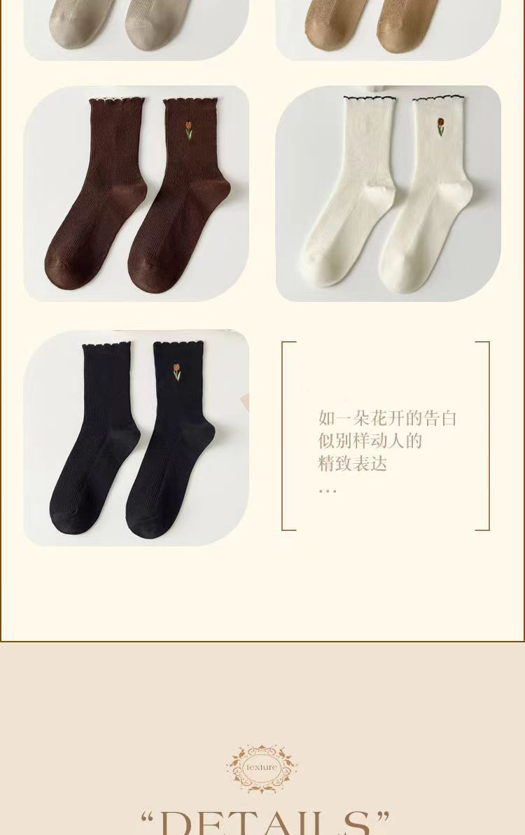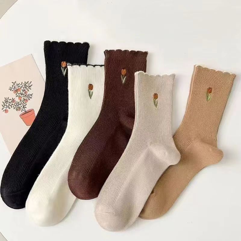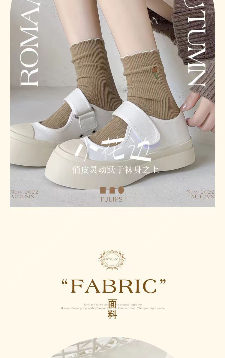 양말 여성용 양말 레이스 봄과 가을 튜브 양말, 트렌디 한 튤립 단색 귀여운 양말 가을과 겨울 모리 나무 귀스토어 가기