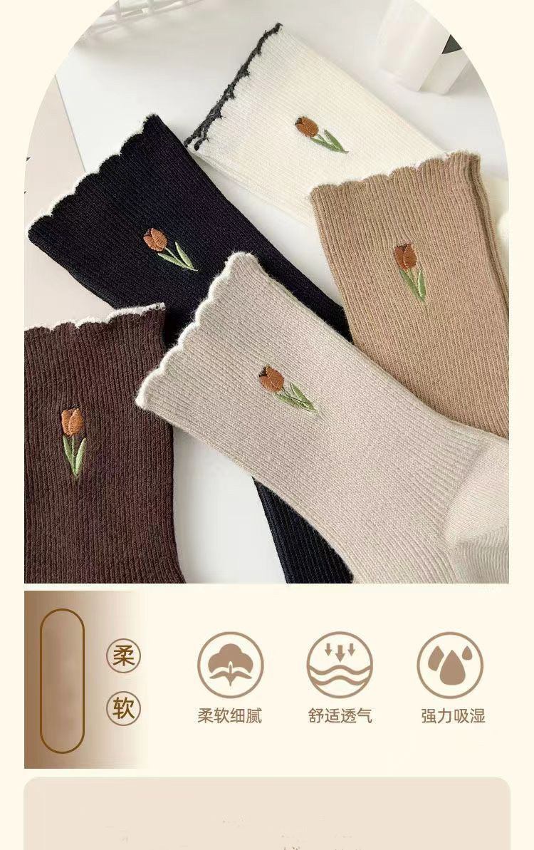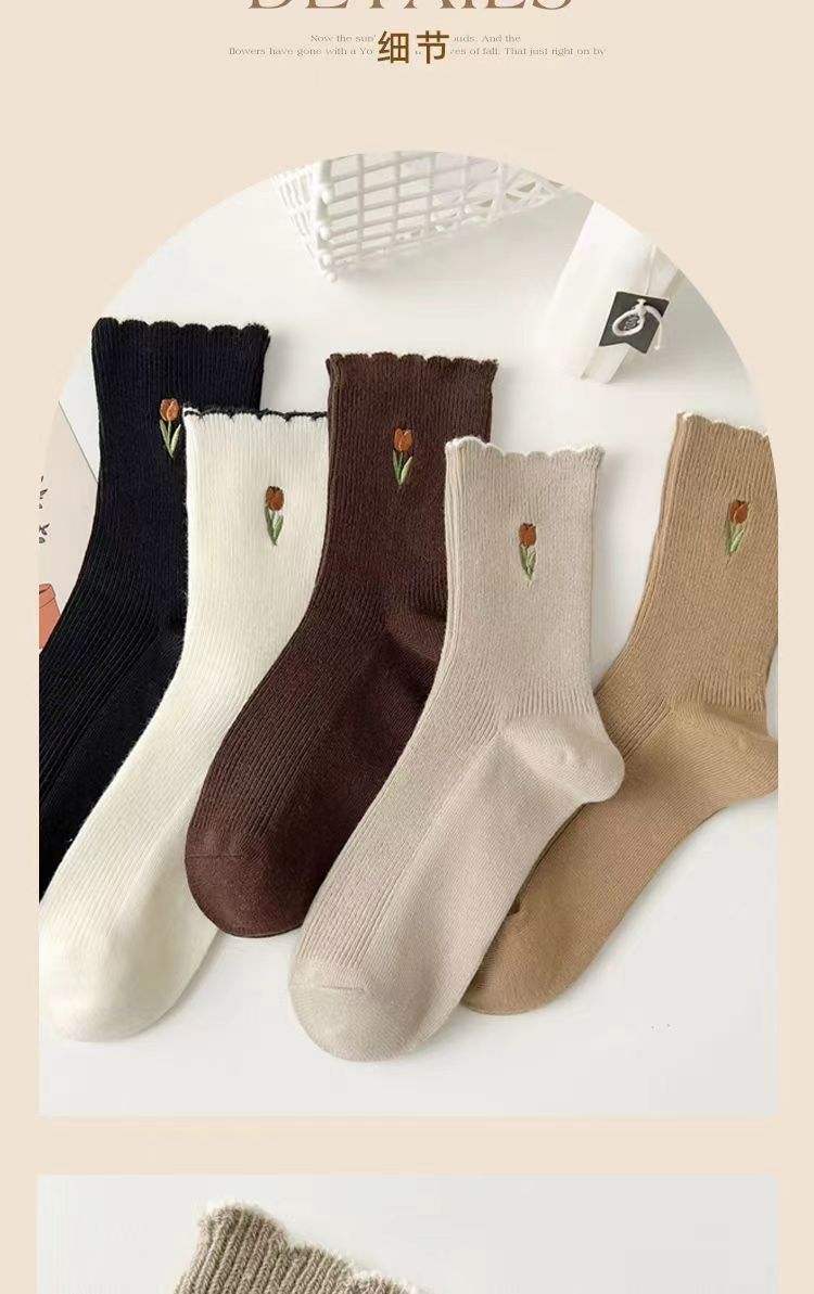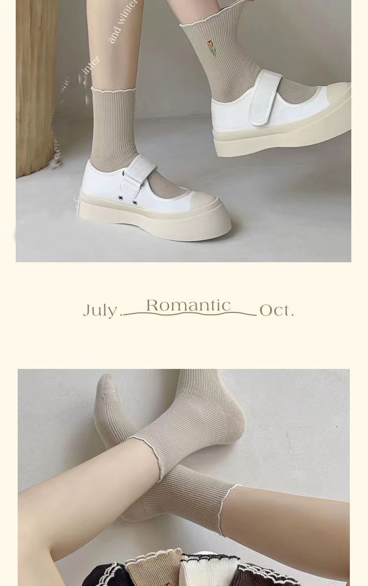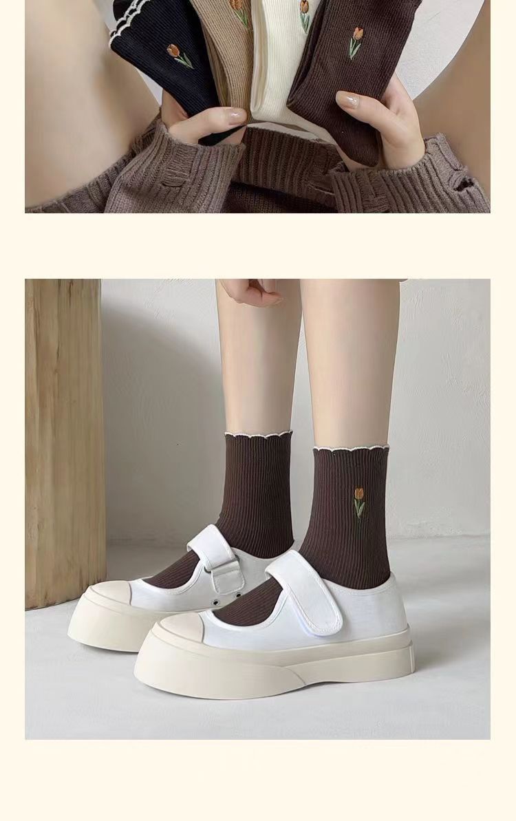 양말 여성용 양말 레이스 봄과 가을 튜브 양말, 트렌디 한 튤립 단색 귀여운 양말 가을과 겨울 모리 나무 귀스토어 가기