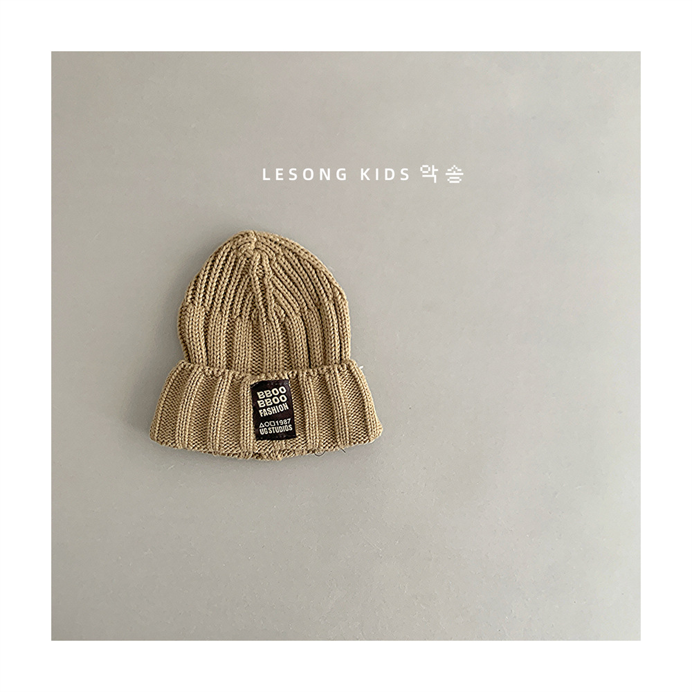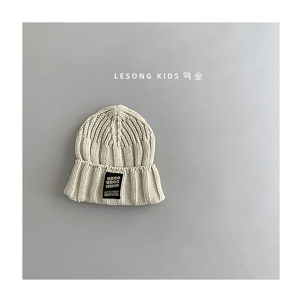 어린이 양모 모자 가을과 겨울 서양식 천 라벨 단색 풀오버 모자 트렌디 한 어린이 아기 겨울 여행 니트 모자스토어 가기