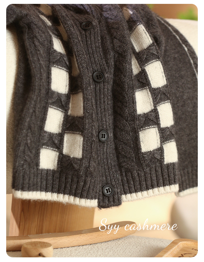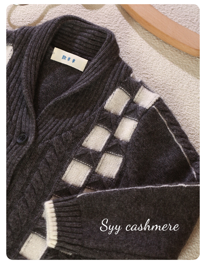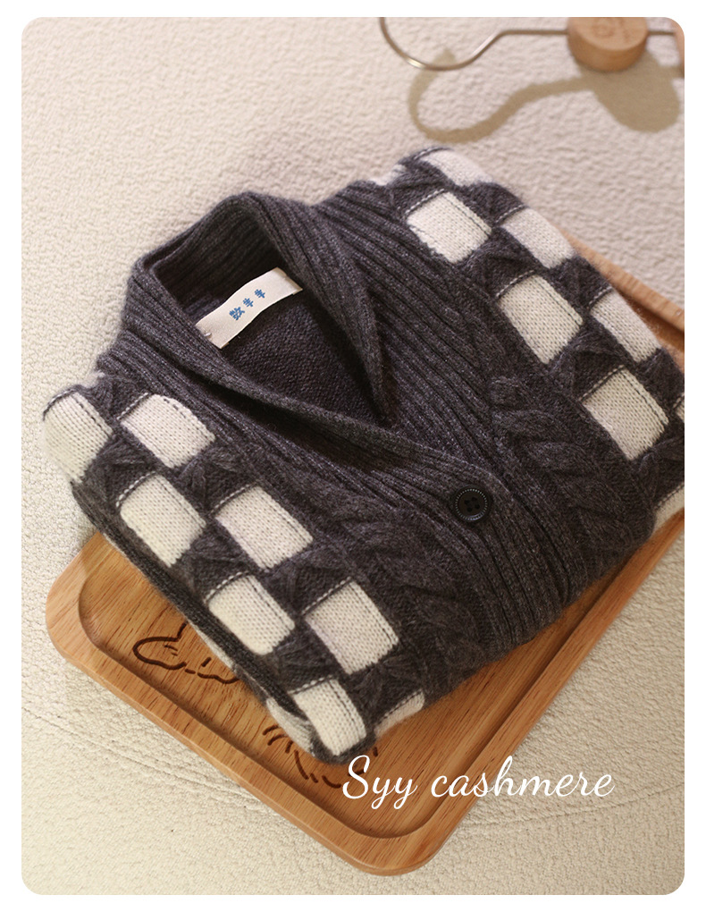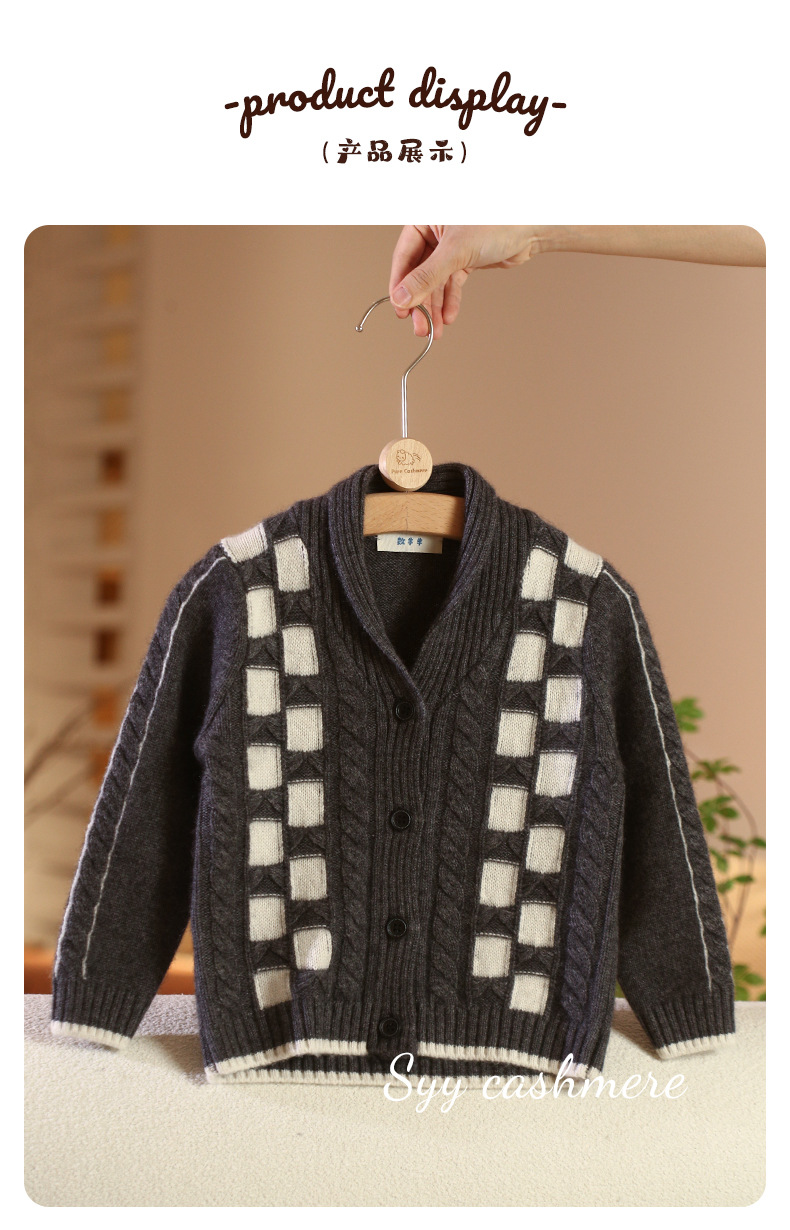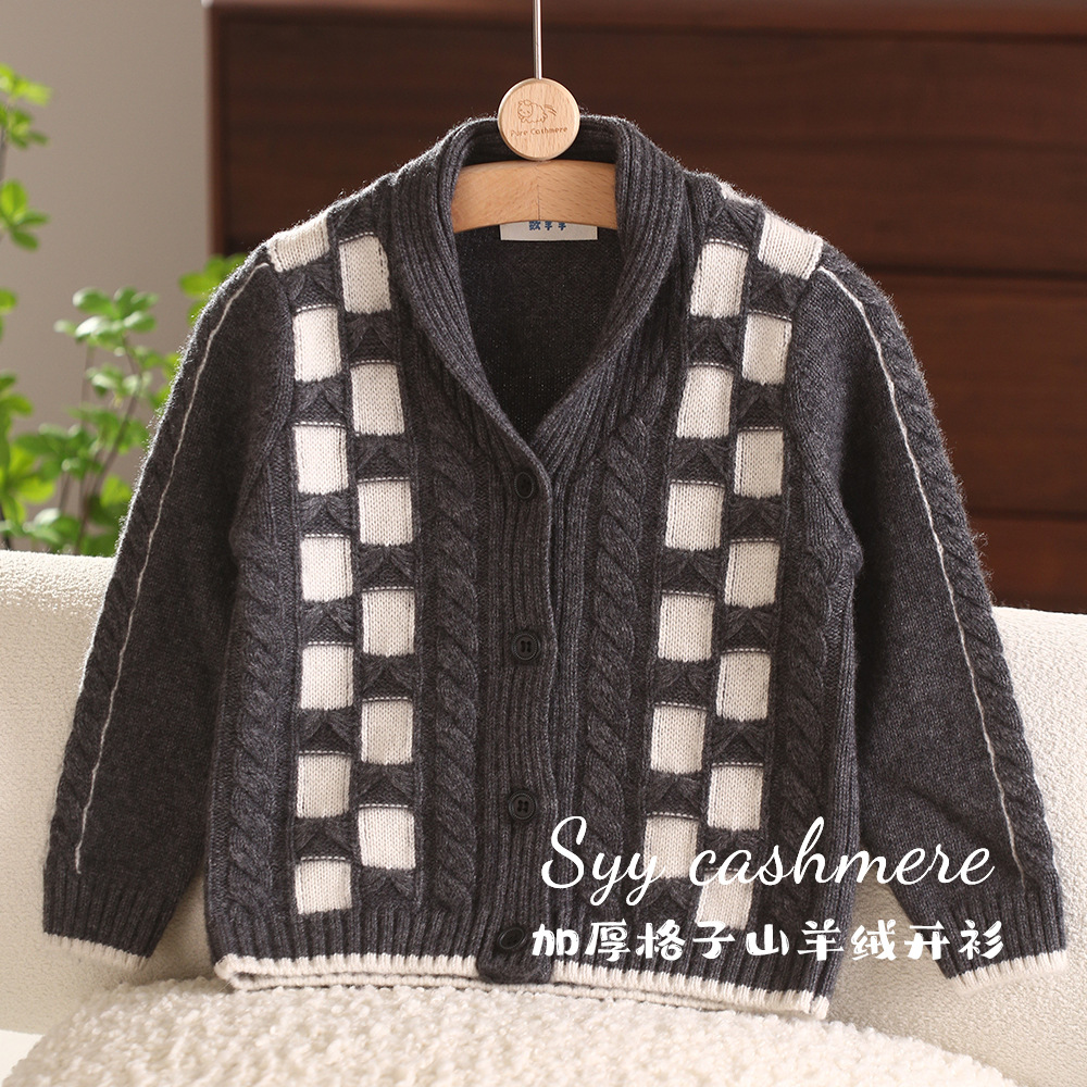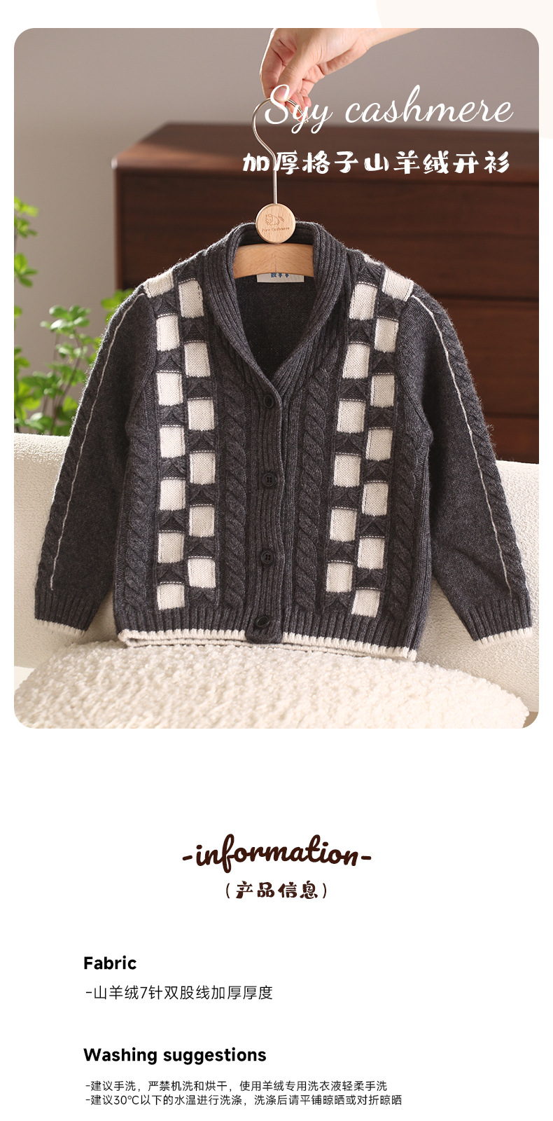 여러 양과 양, 소년 캐시미어 V 넥 패딩 체크 무늬 코트 캐주얼 캐시미어 카디건스토어 가기
