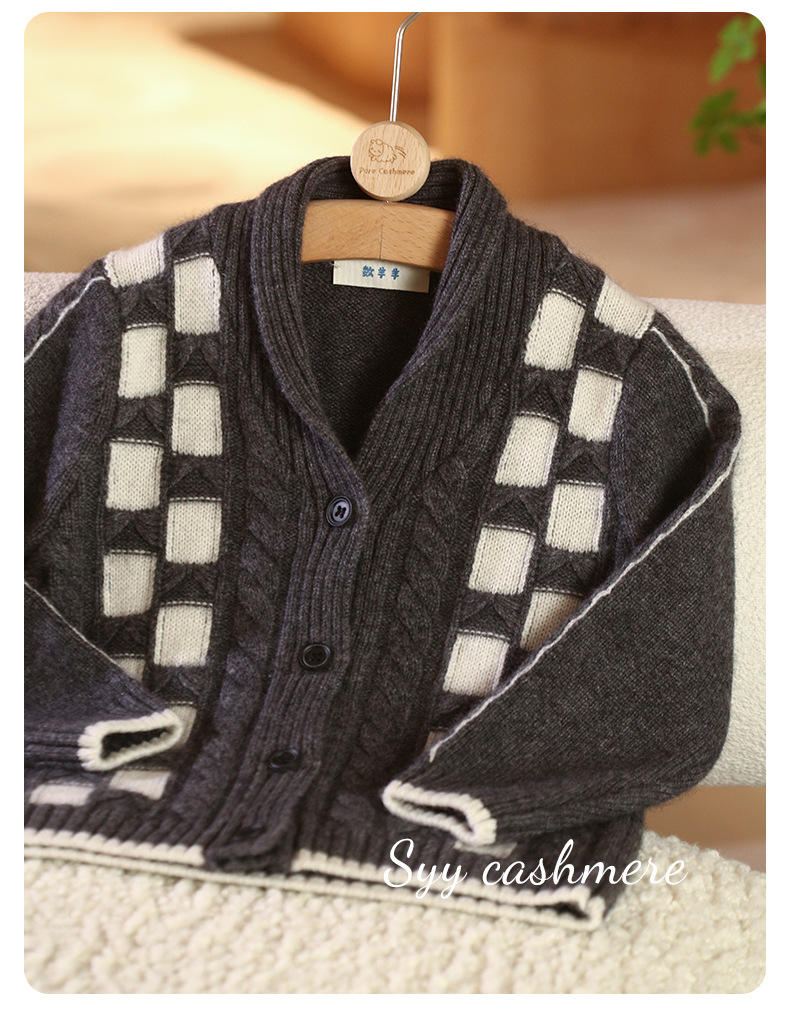 여러 양과 양, 소년 캐시미어 V 넥 패딩 체크 무늬 코트 캐주얼 캐시미어 카디건