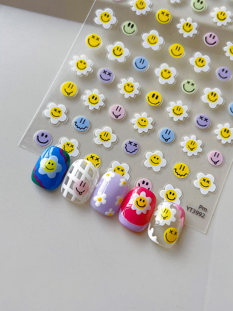 YITU 개미 그림 해바라기 만화 재미 웃는 손톱 스티커 종이 접착제 플랫 네일 장식 스티커 YT3992스토어 가기