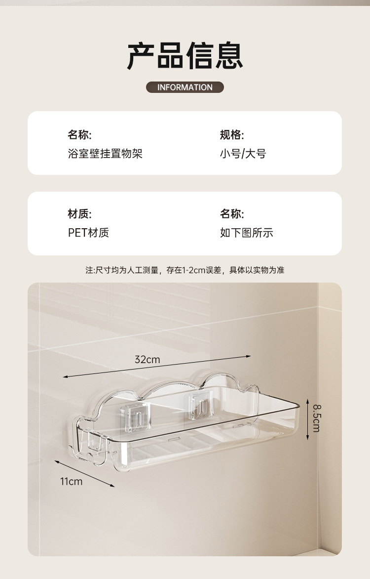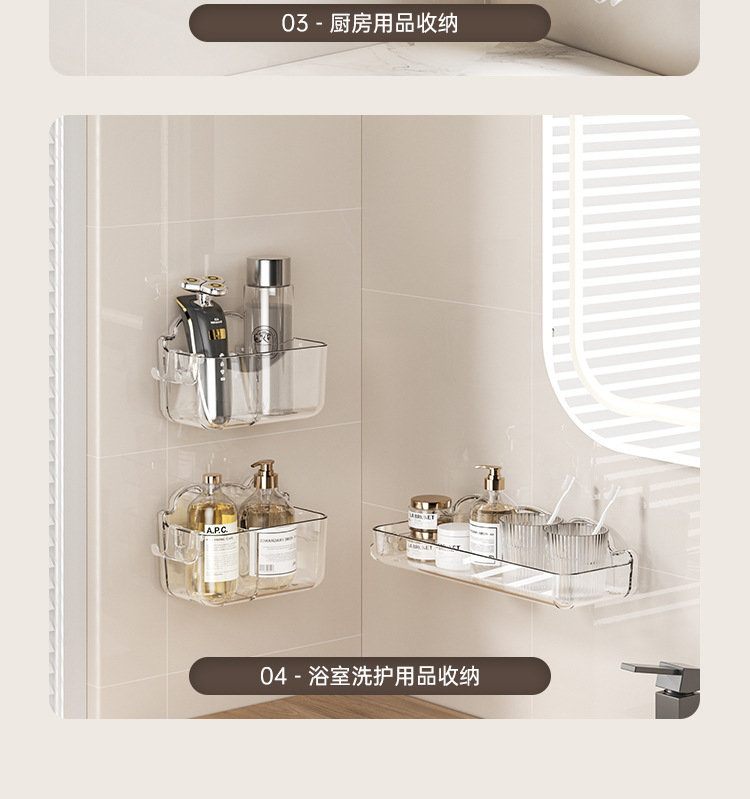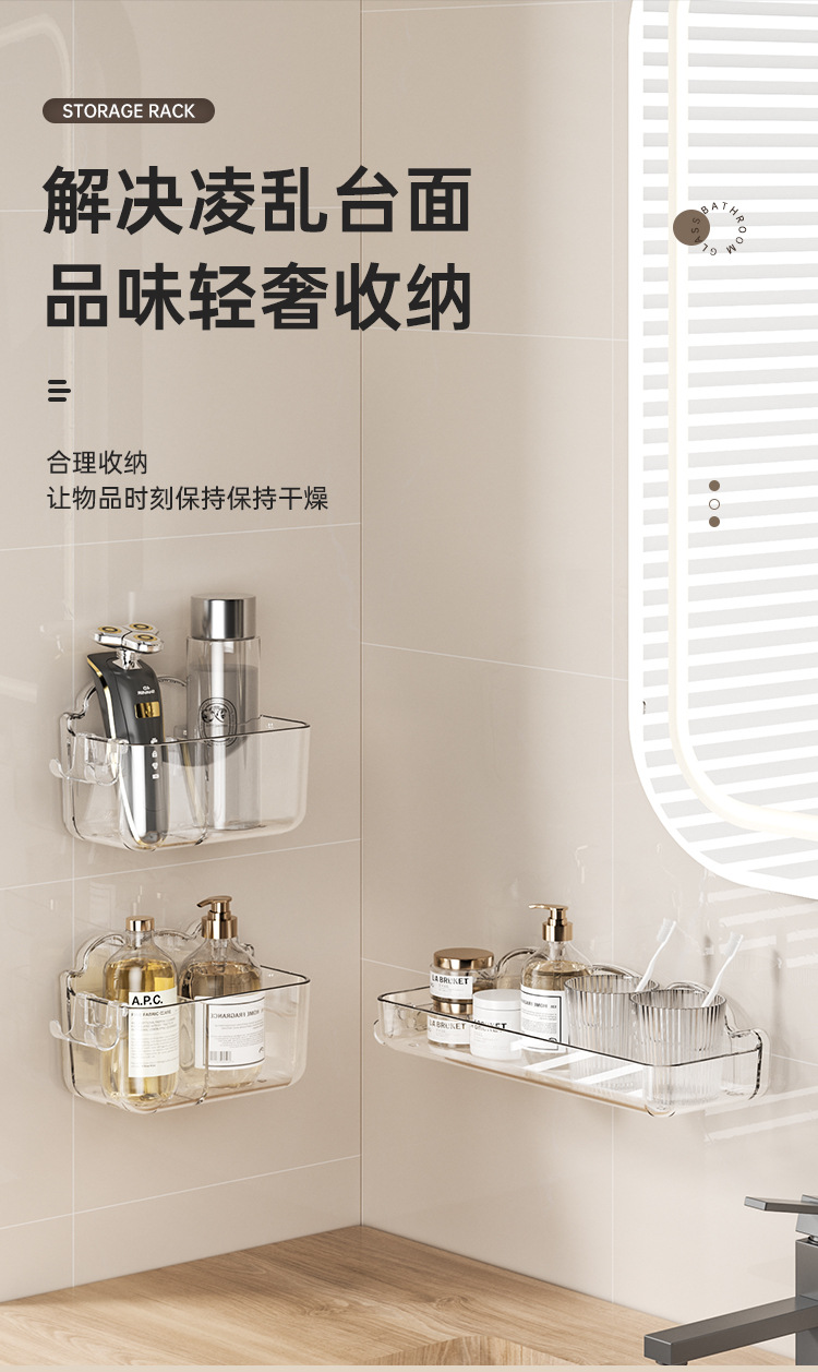 화장실 보관 랙 욕실 세면기 벽 보관 랙 화장실 구멍이없는 벽걸이 형 화장품 보관 랙
