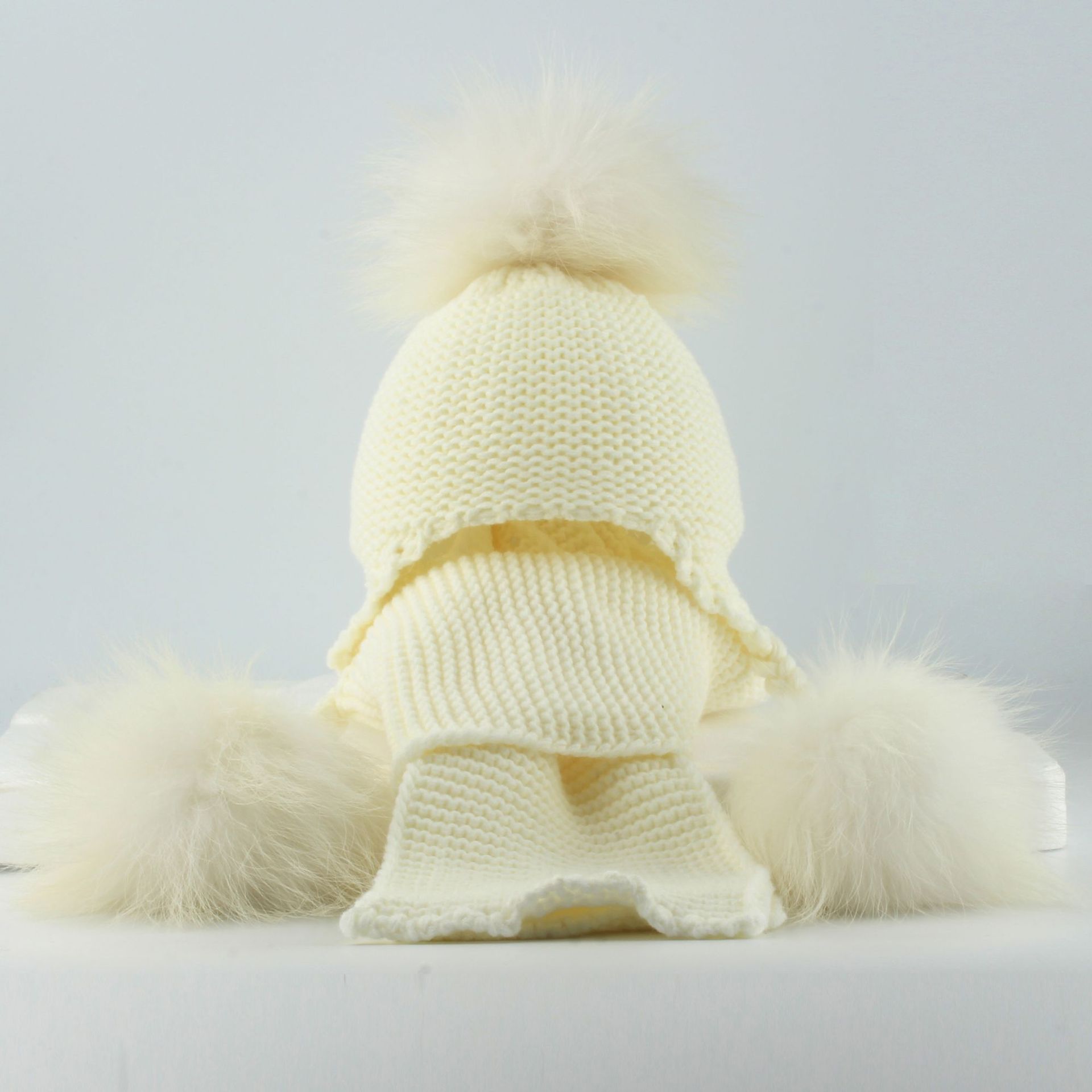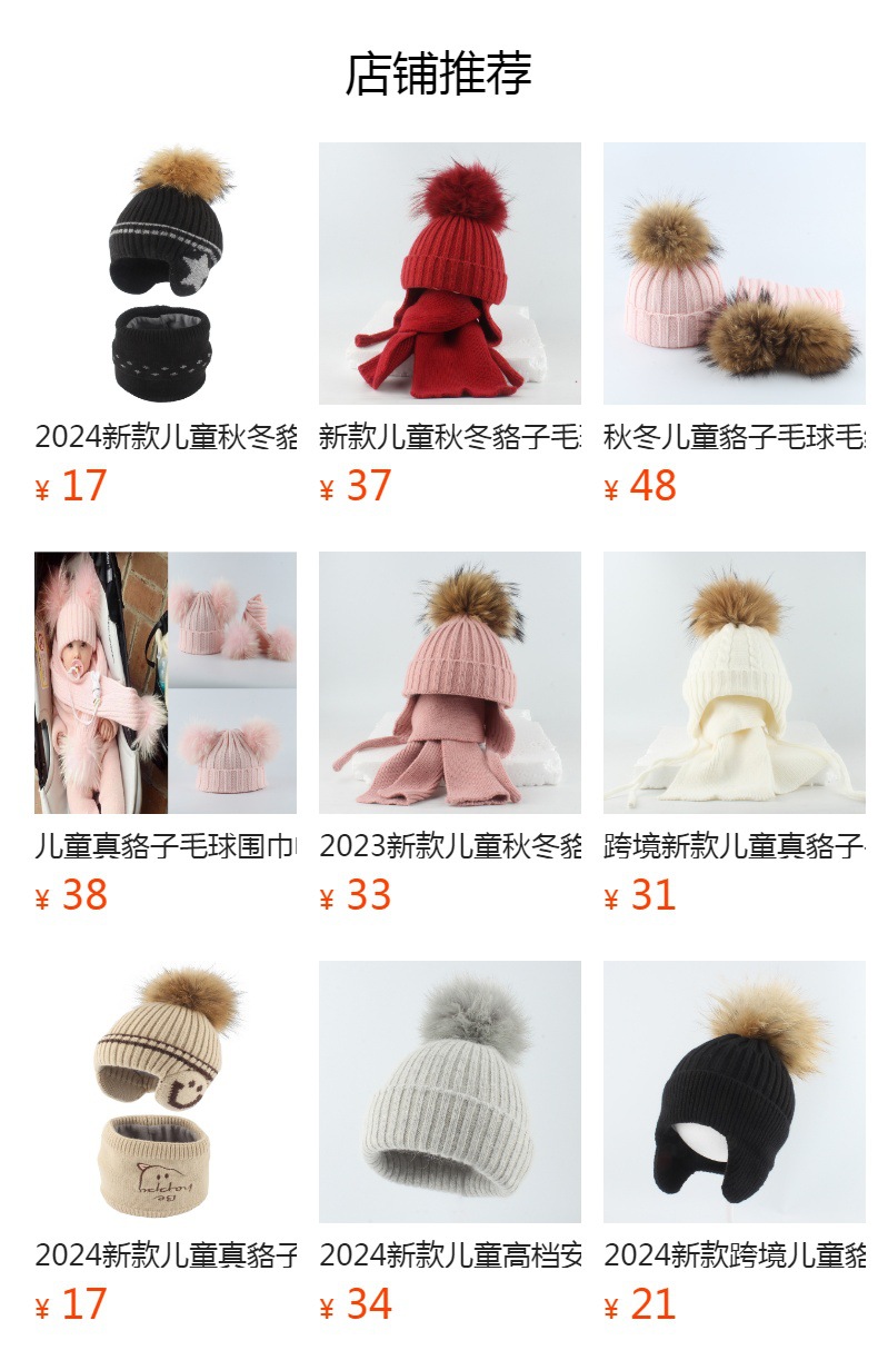 2024 새로운 어린이 너구리 모피 모자 스카프 세트 3 공 색상 꼰 귀 보호 캡 따뜻한 국경스토어 가기