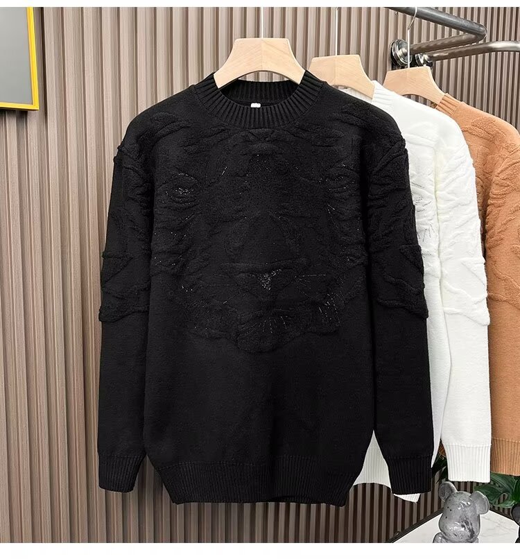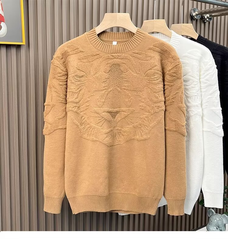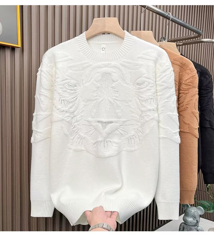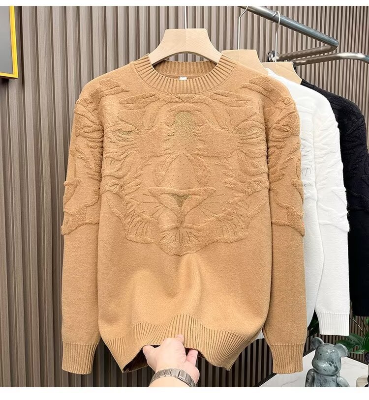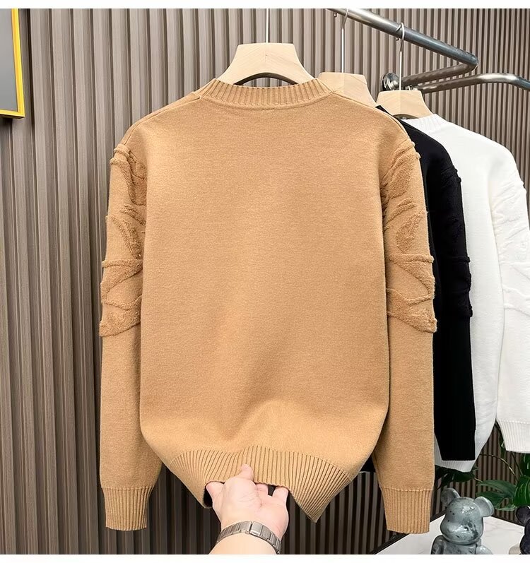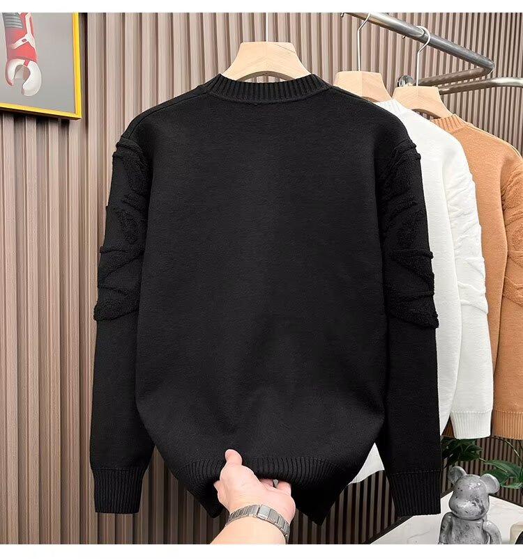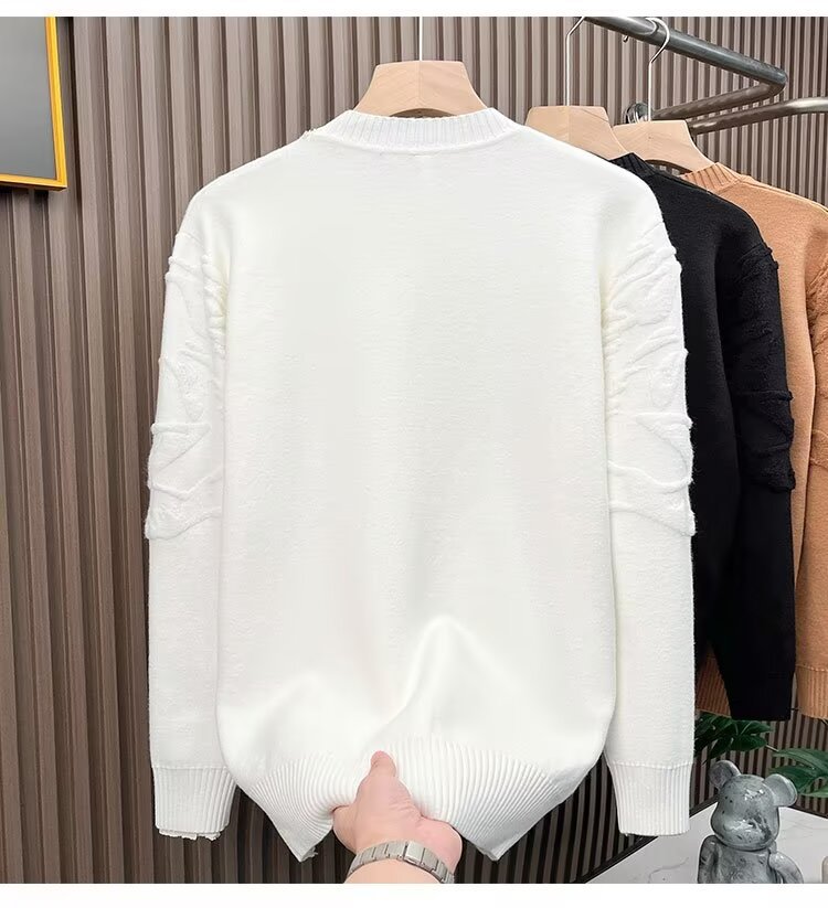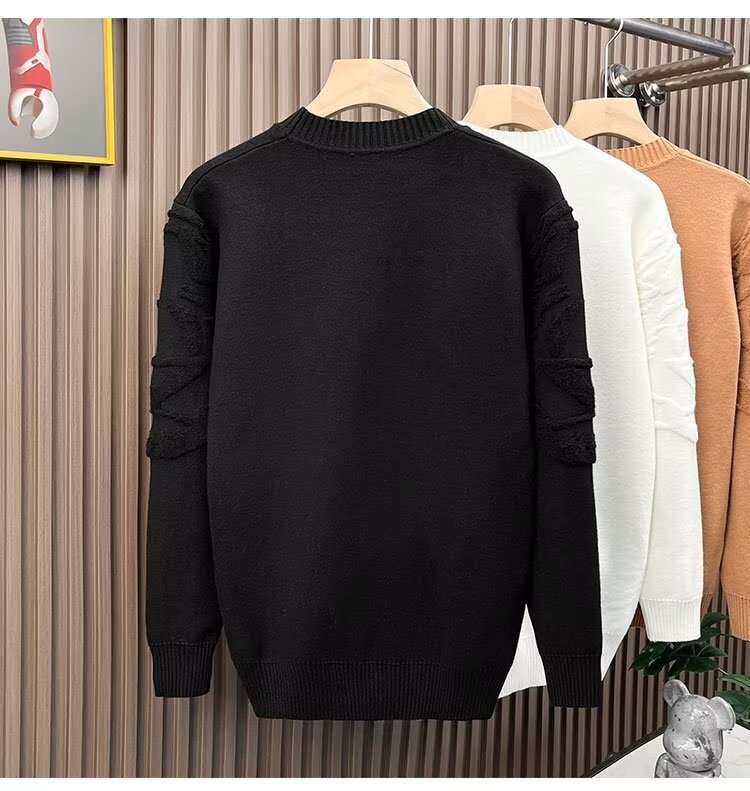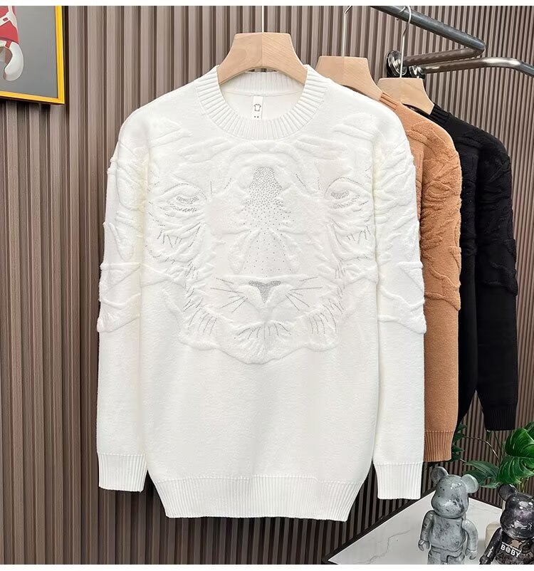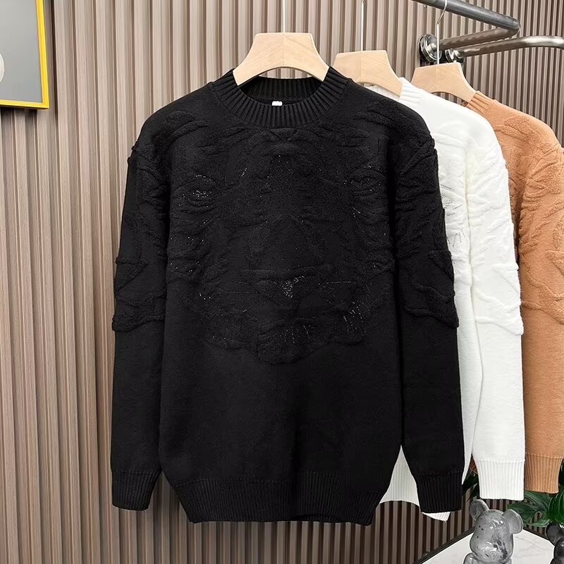 니트 스웨터 남자 가을과 겨울 라운드 넥 셔츠 탑 개성 올 매치 스웨터 남자 2024 새로운 자카드 라인 석