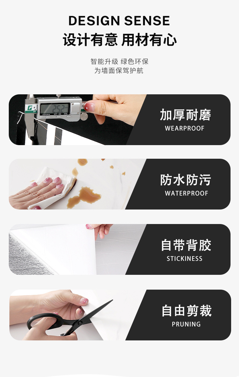 벽지 자체 접착식 타일 모양 보호벽판 방수 방습 거실 침실 벽 장식 리노베이션 미관보강 벽지스토어 가기
