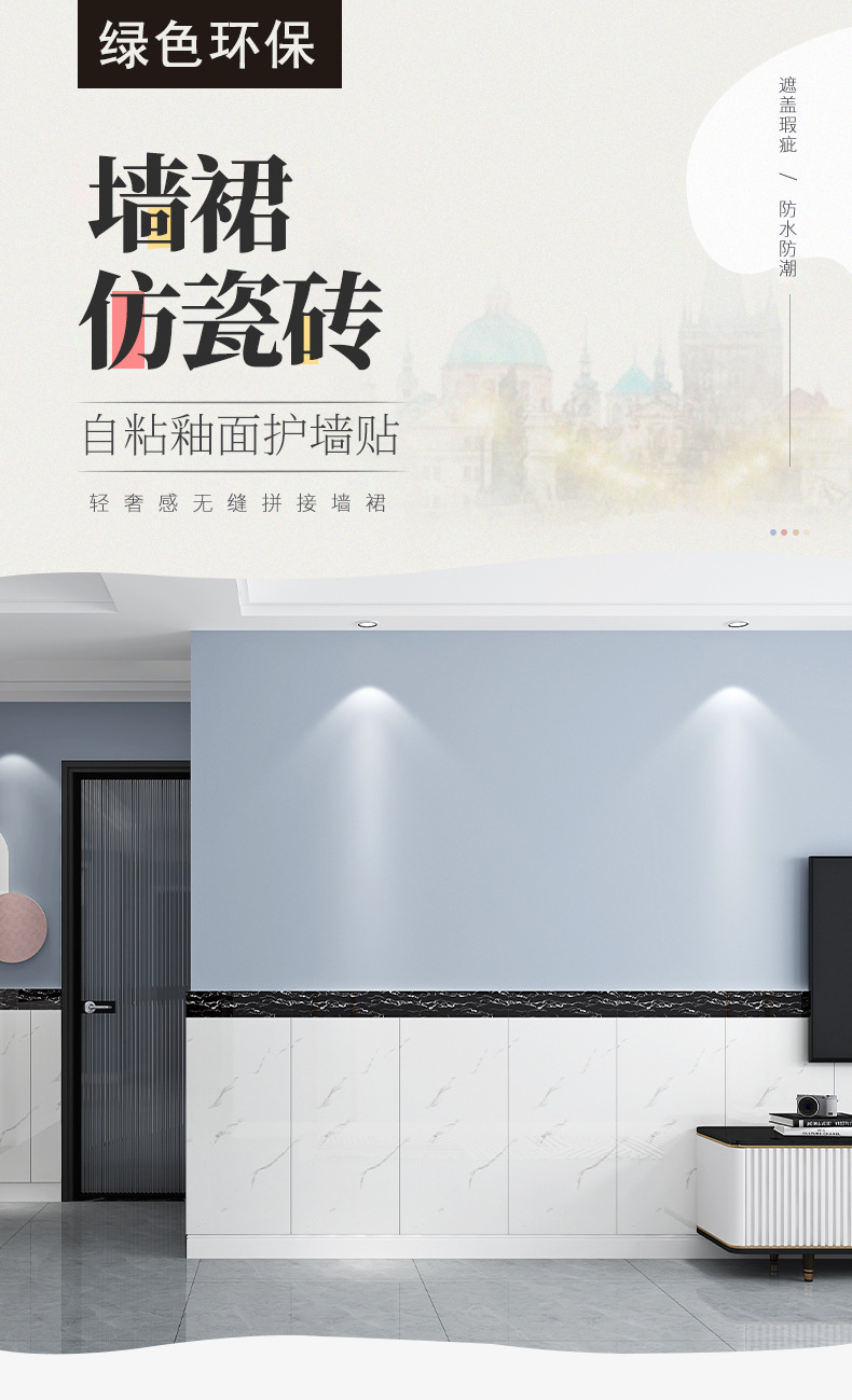 벽지 자체 접착식 타일 모양 보호벽판 방수 방습 거실 침실 벽 장식 리노베이션 미관보강 벽지