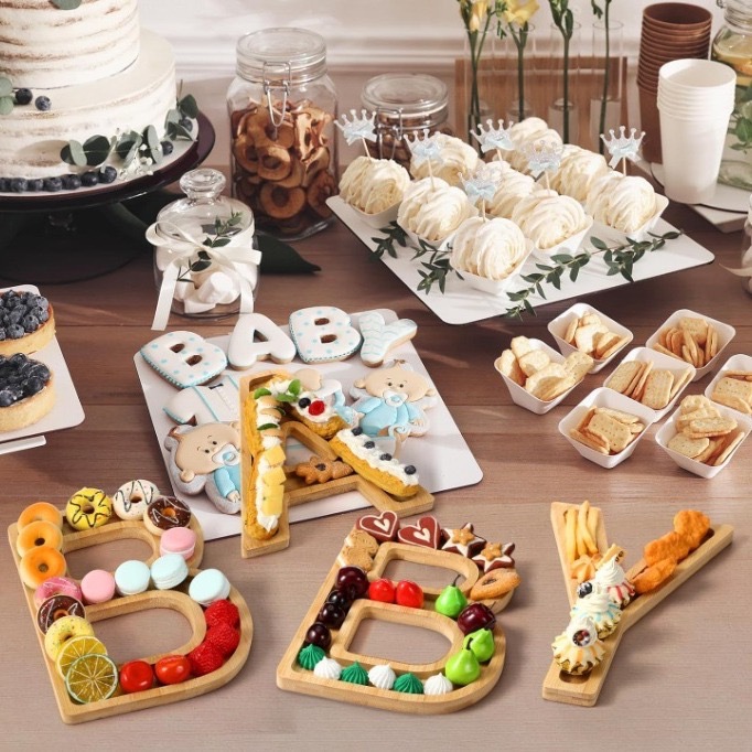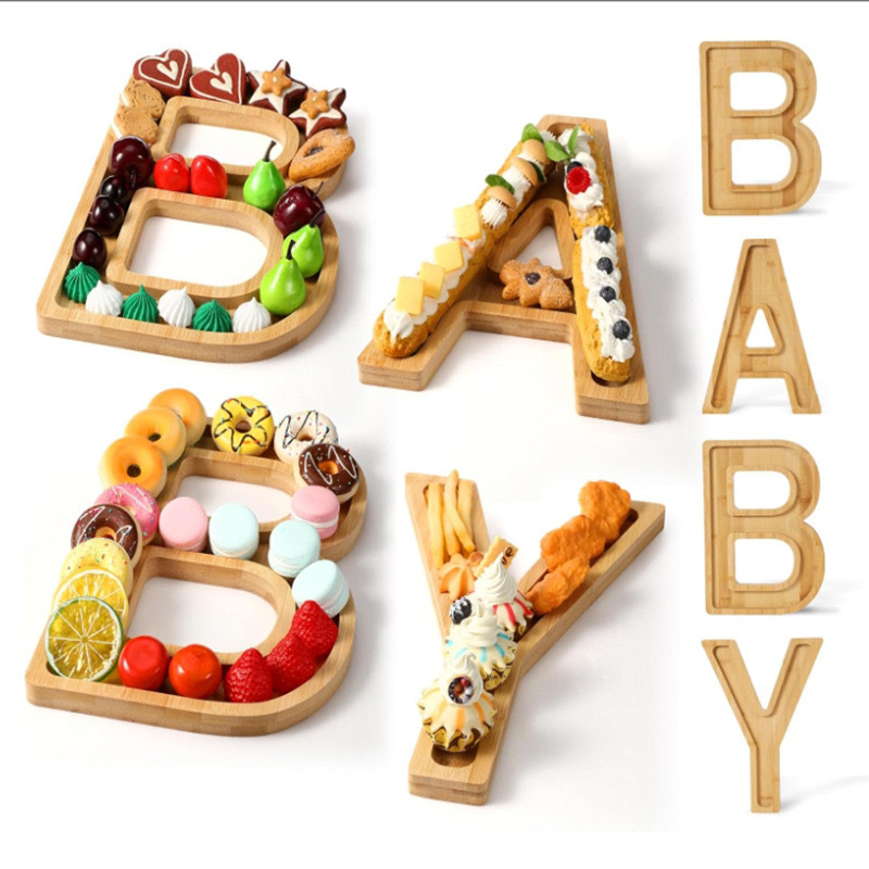 크로스 국경 대나무 영어 편지 트레이 아기 나무 요리 치즈 보드 스낵 케이크 쿠키 파티 음식 트레이