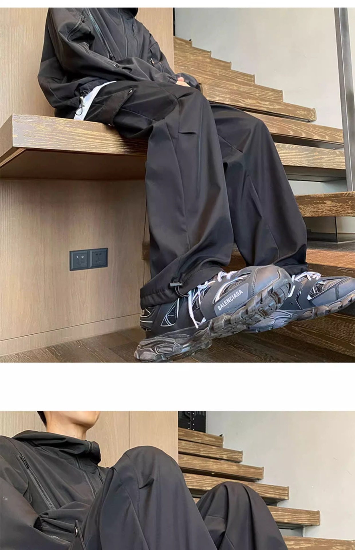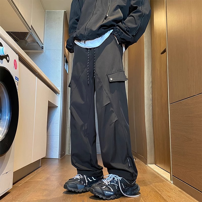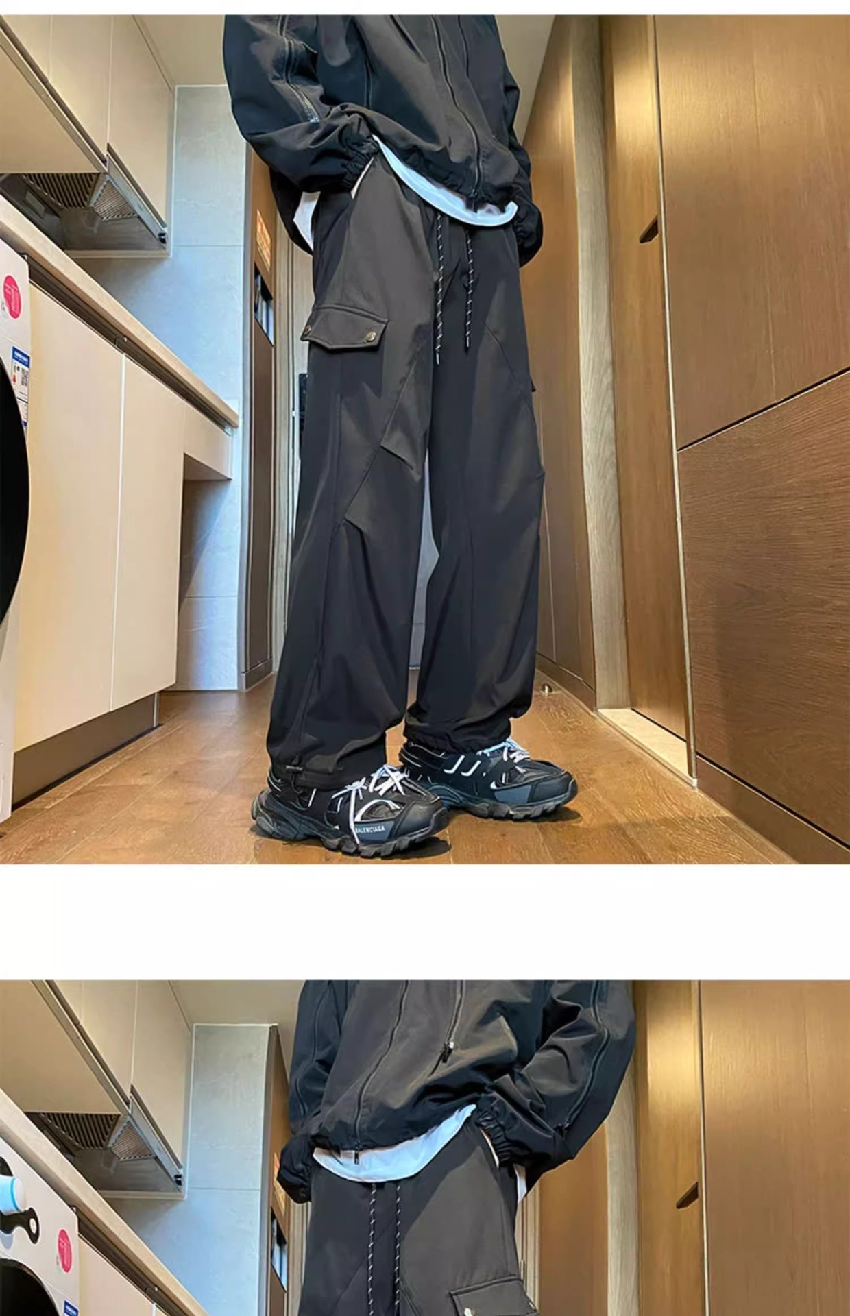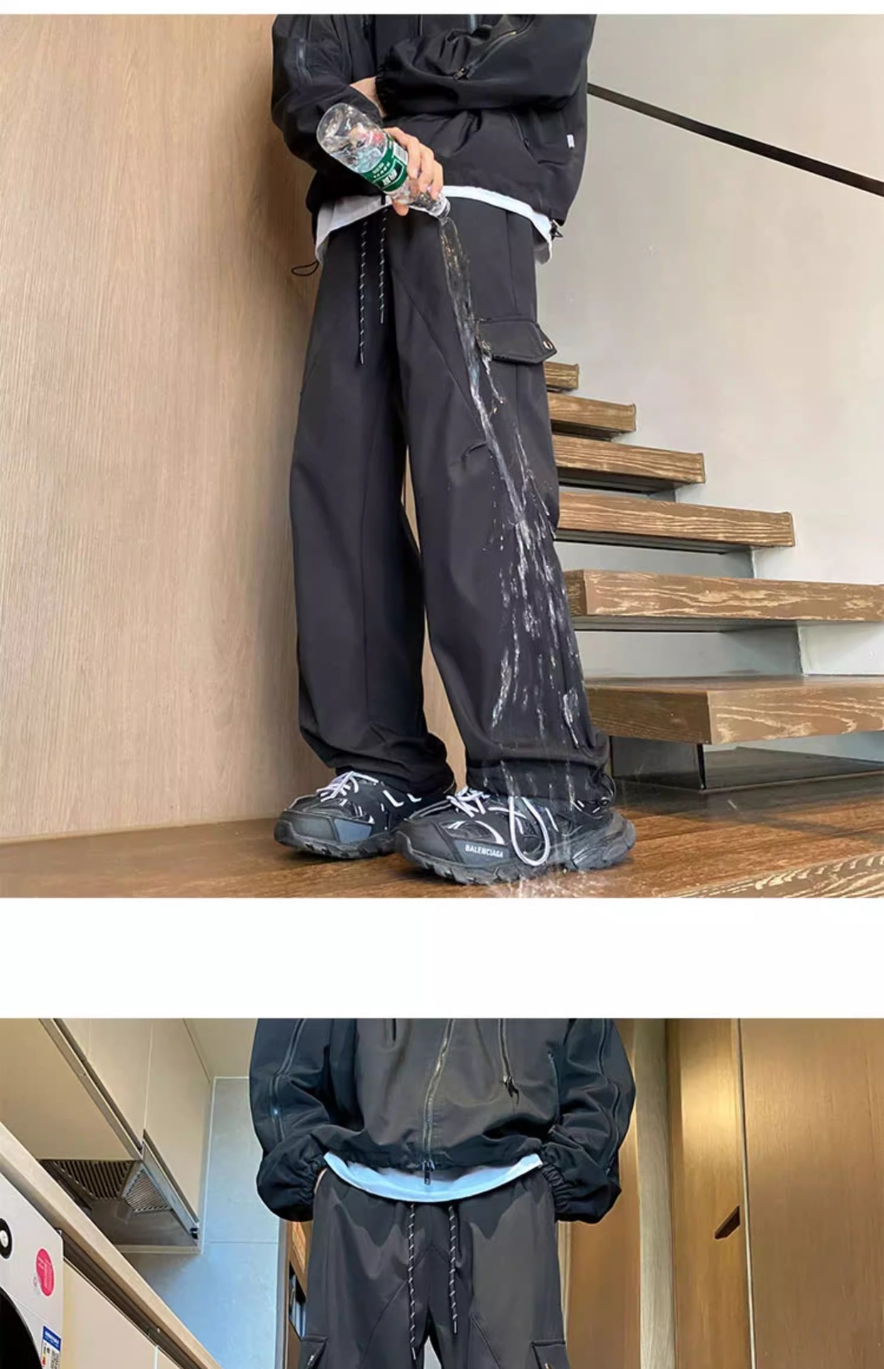 NASA 충전 바지 남자 가을 방수 방풍 야외 등산 바지 미국 하이 스트리트 디자인 센스 블랙 스트레이트 툴링