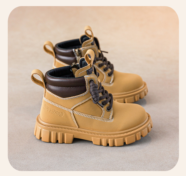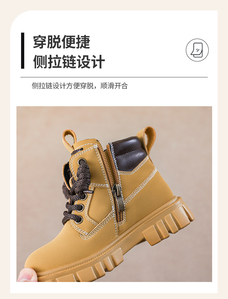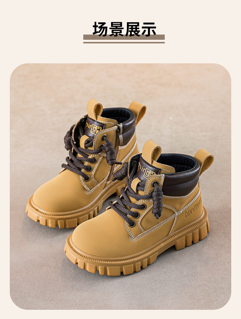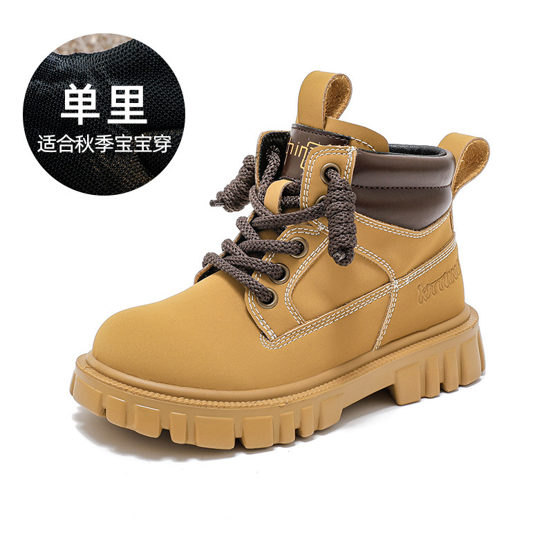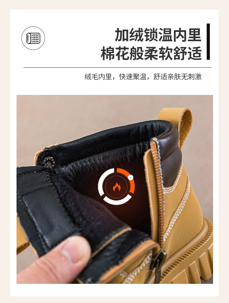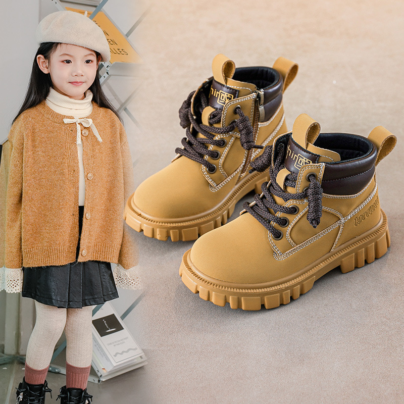 여아 마틴 부츠 2025 가을 겨울 신상 한국 스타일 부드러운 밑창 여아 싱글 부츠 미끄럼 방지 아동용 벨벳 작은 노란색 부츠 도매스토어 가기