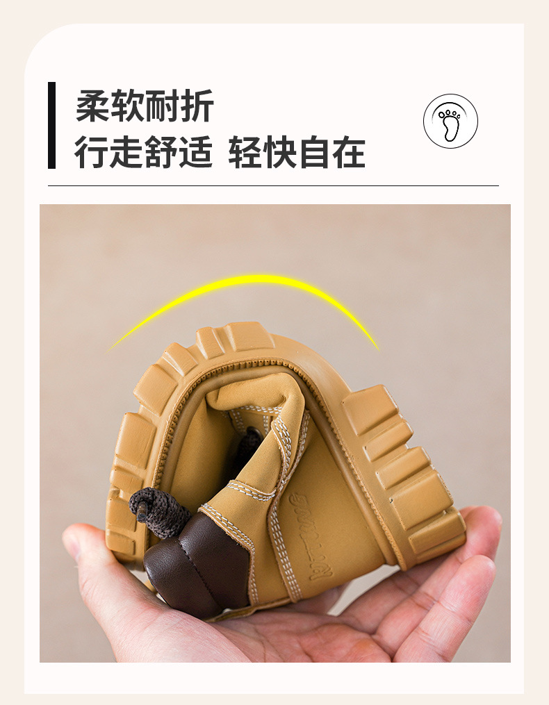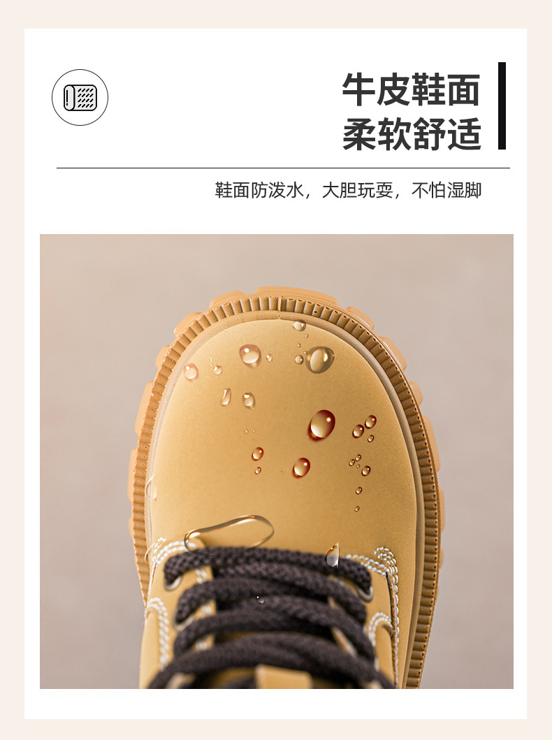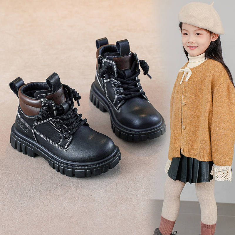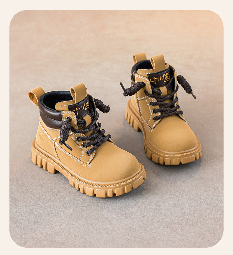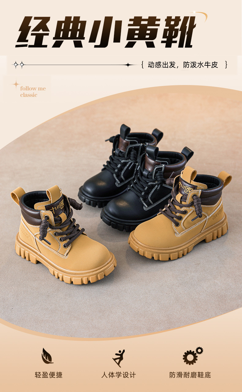 여아 마틴 부츠 2025 가을 겨울 신상 한국 스타일 부드러운 밑창 여아 싱글 부츠 미끄럼 방지 아동용 벨벳 작은 노란색 부츠 도매스토어 가기